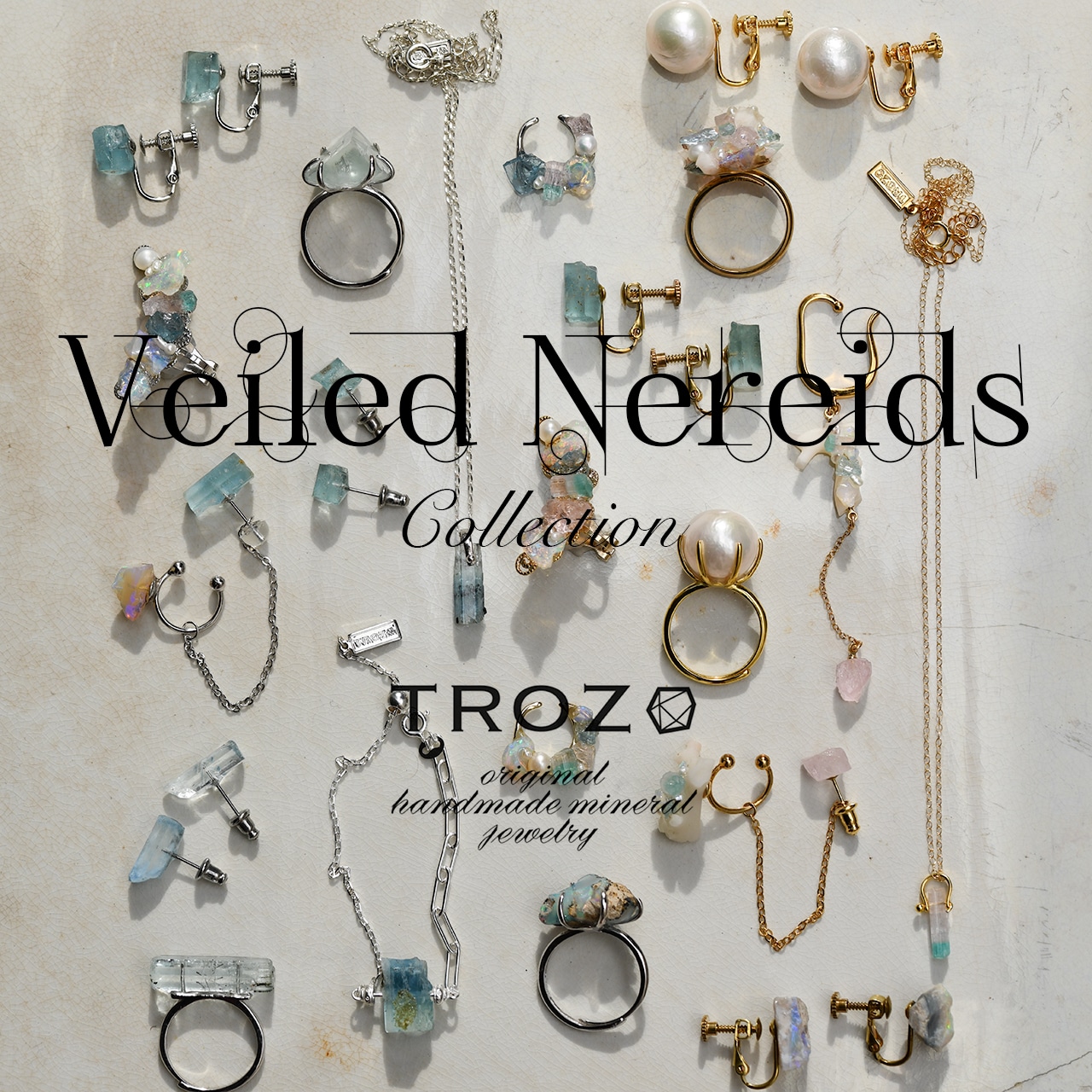 それぞれの石が持つ表情や色合いを生かしながら、海にいる精霊たちの気配を感じられるようなやわらかく幻想的なジュエリーに仕上げました✨