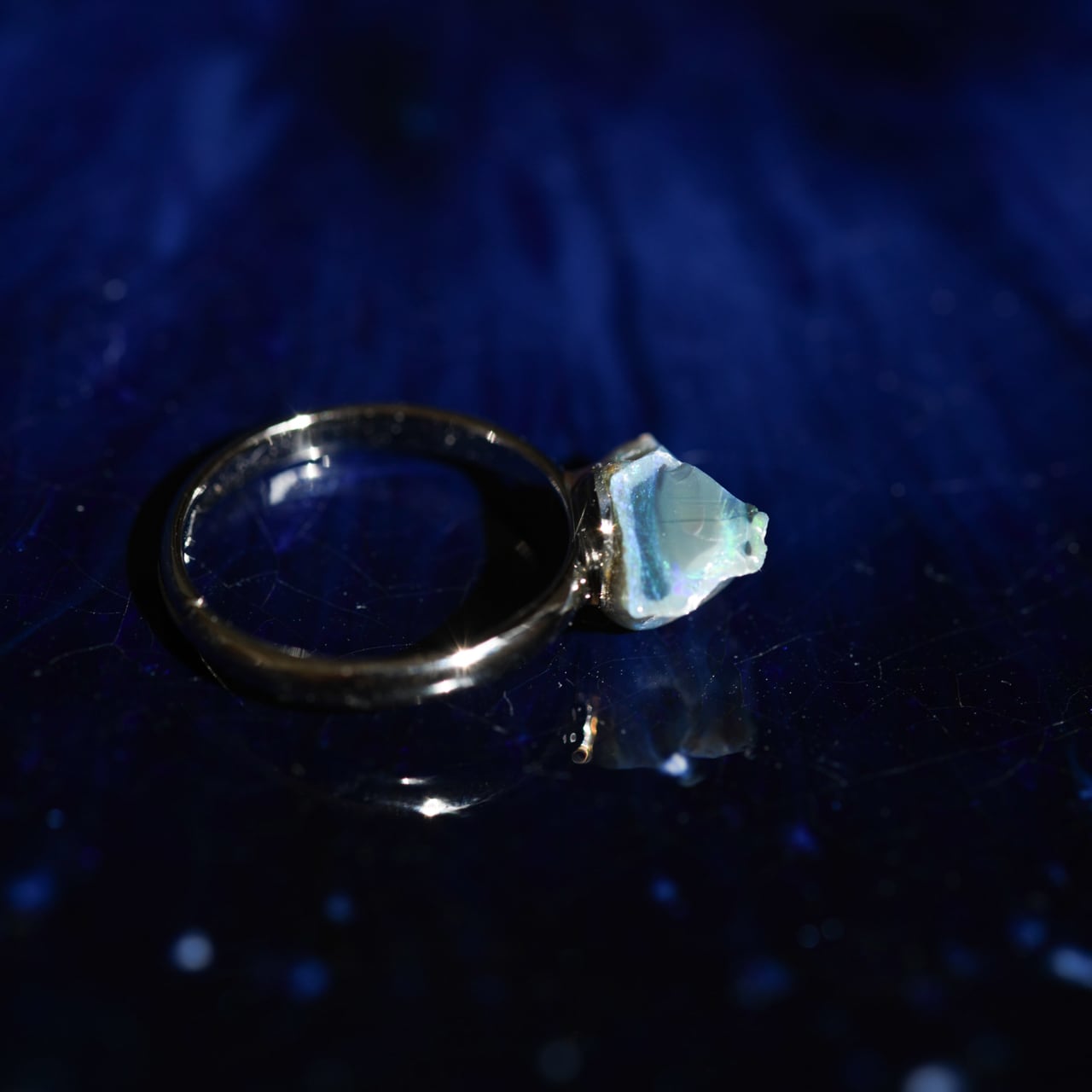 ブラックオパールの原石を使用したピンキーリングです。