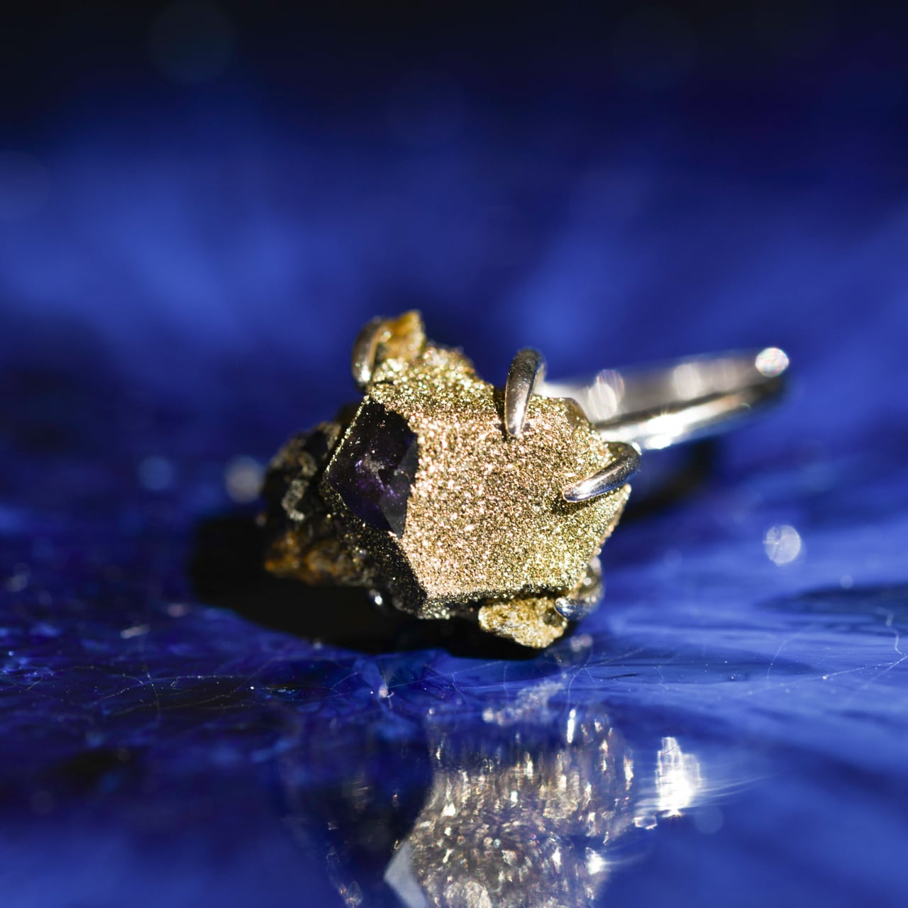 【006 0 Collection】 パイライト共生フローライト 鉱物原石 フリーサイズ シルバー925 リング 指輪 天然石 アクセサリー (No.3663)