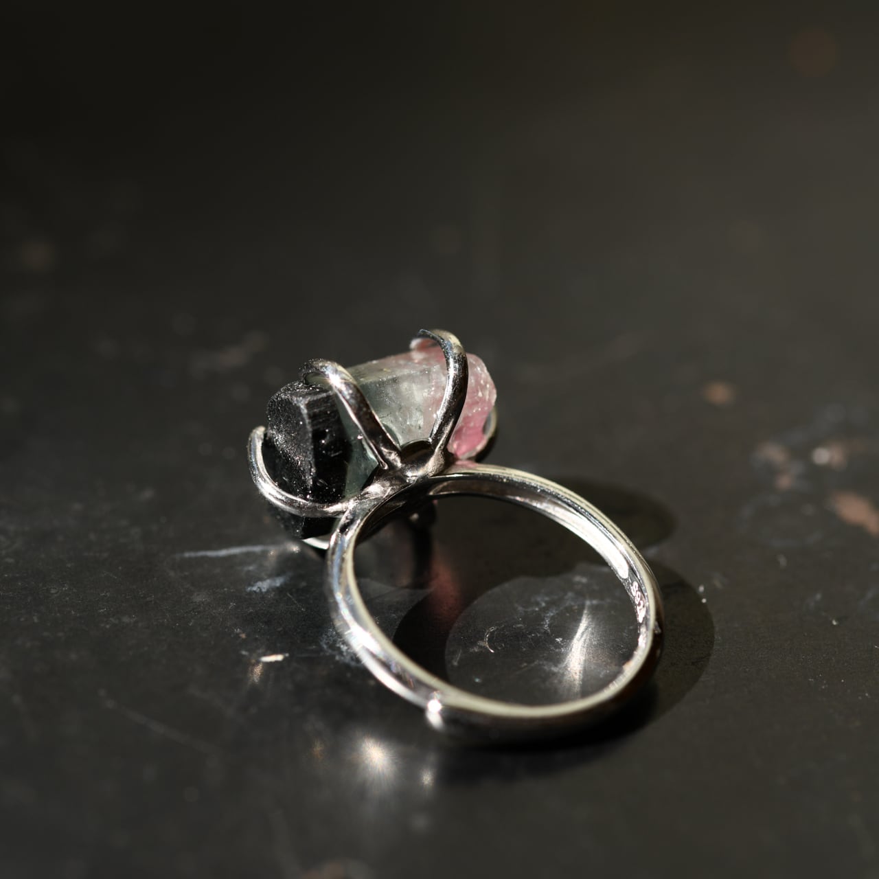 トリカラートルマリン 鉱物原石 フリーサイズ シルバー925 リング 指輪 天然石 アクセサリー (No.3679)