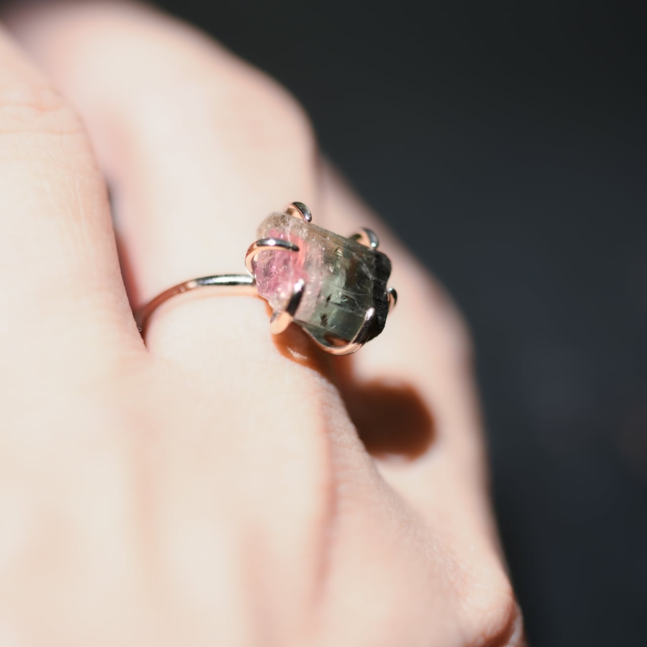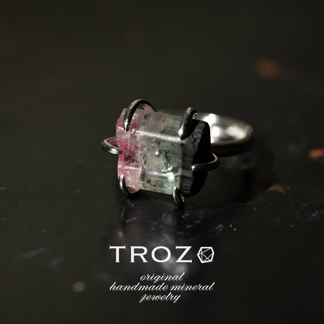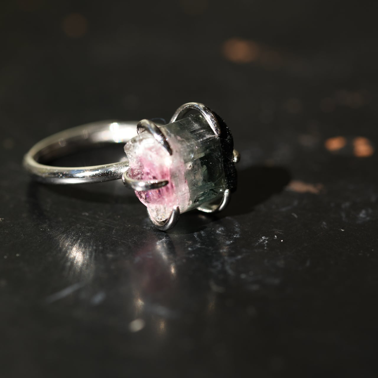 トルマリンの原石を使用したシルバー925(ロジウムメッキ)のフリーサイズのリングです。