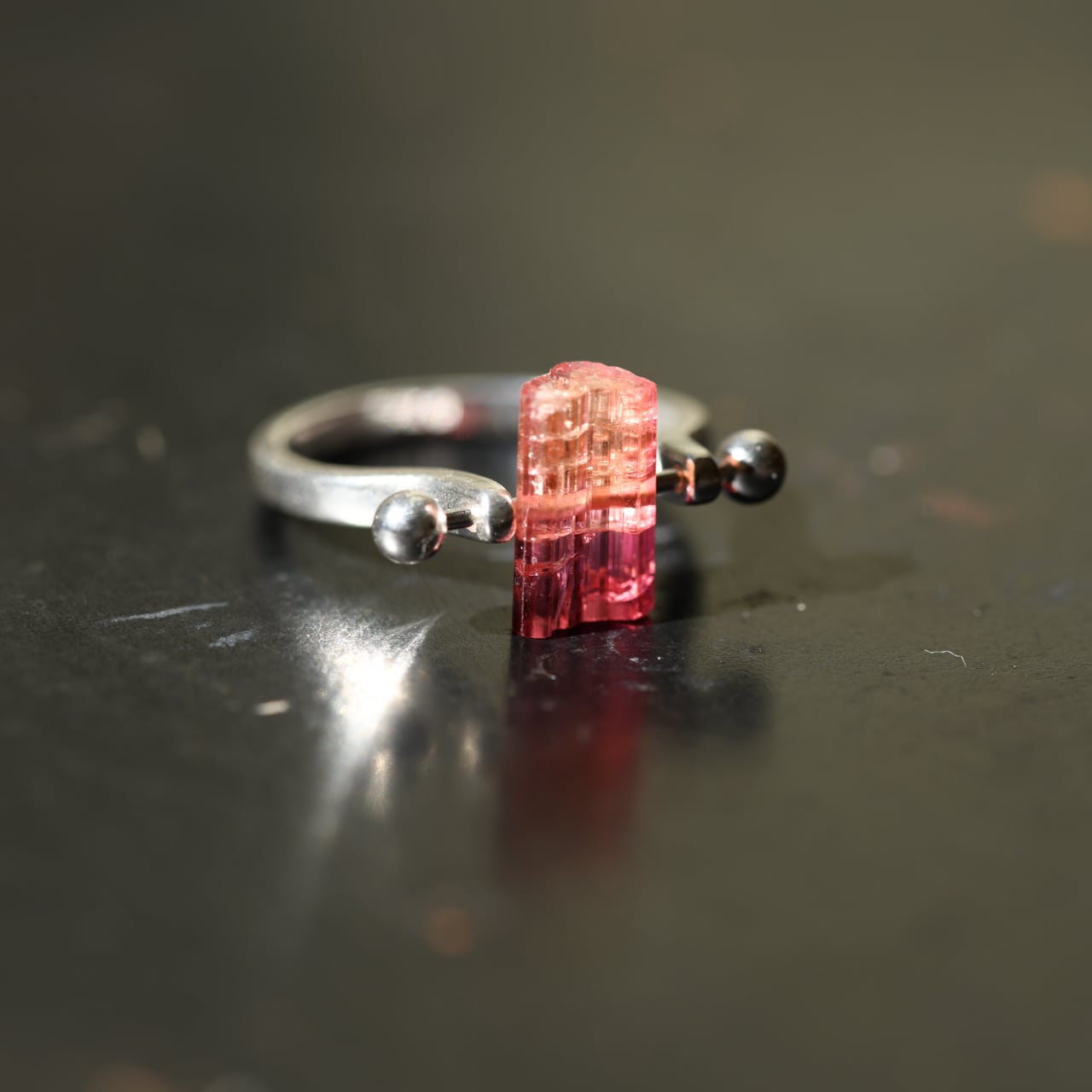 トルマリンの原石を使用したシルバー925のリングです。