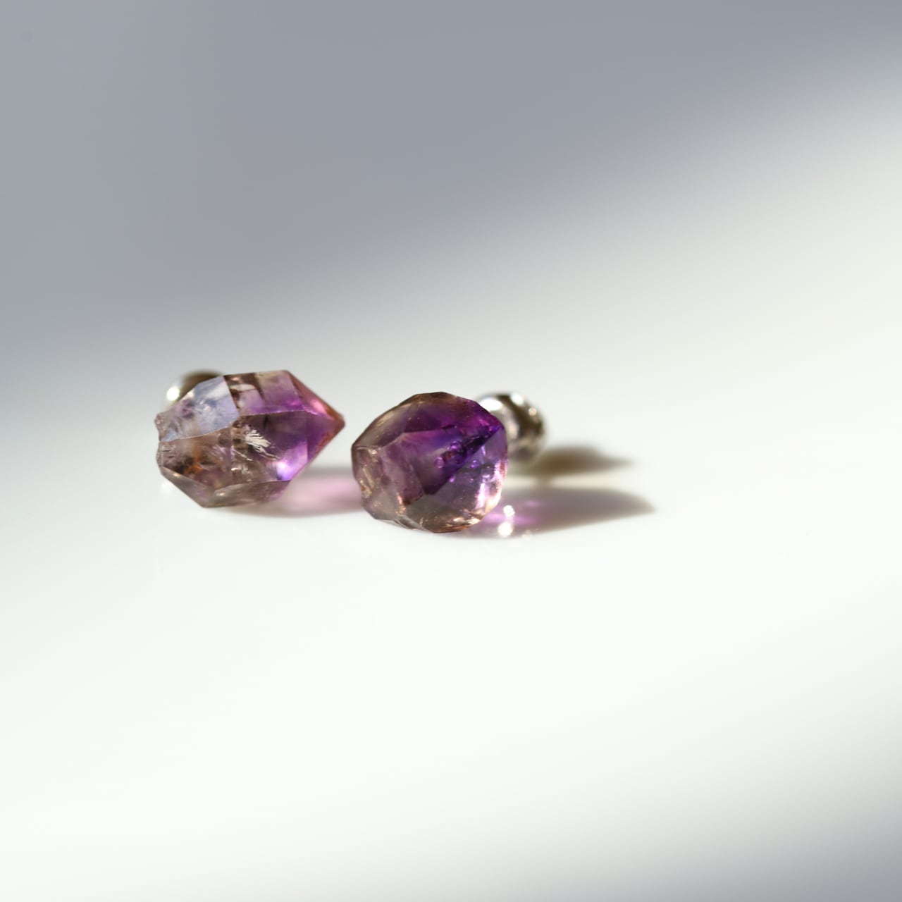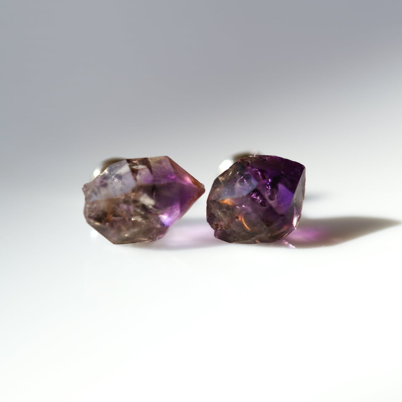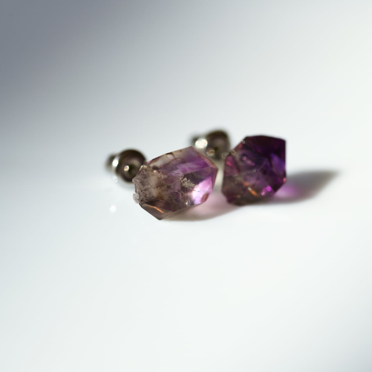 アメシスト (アメジスト)の原石を使用したサージカルステンレスのスタッドピアスです。