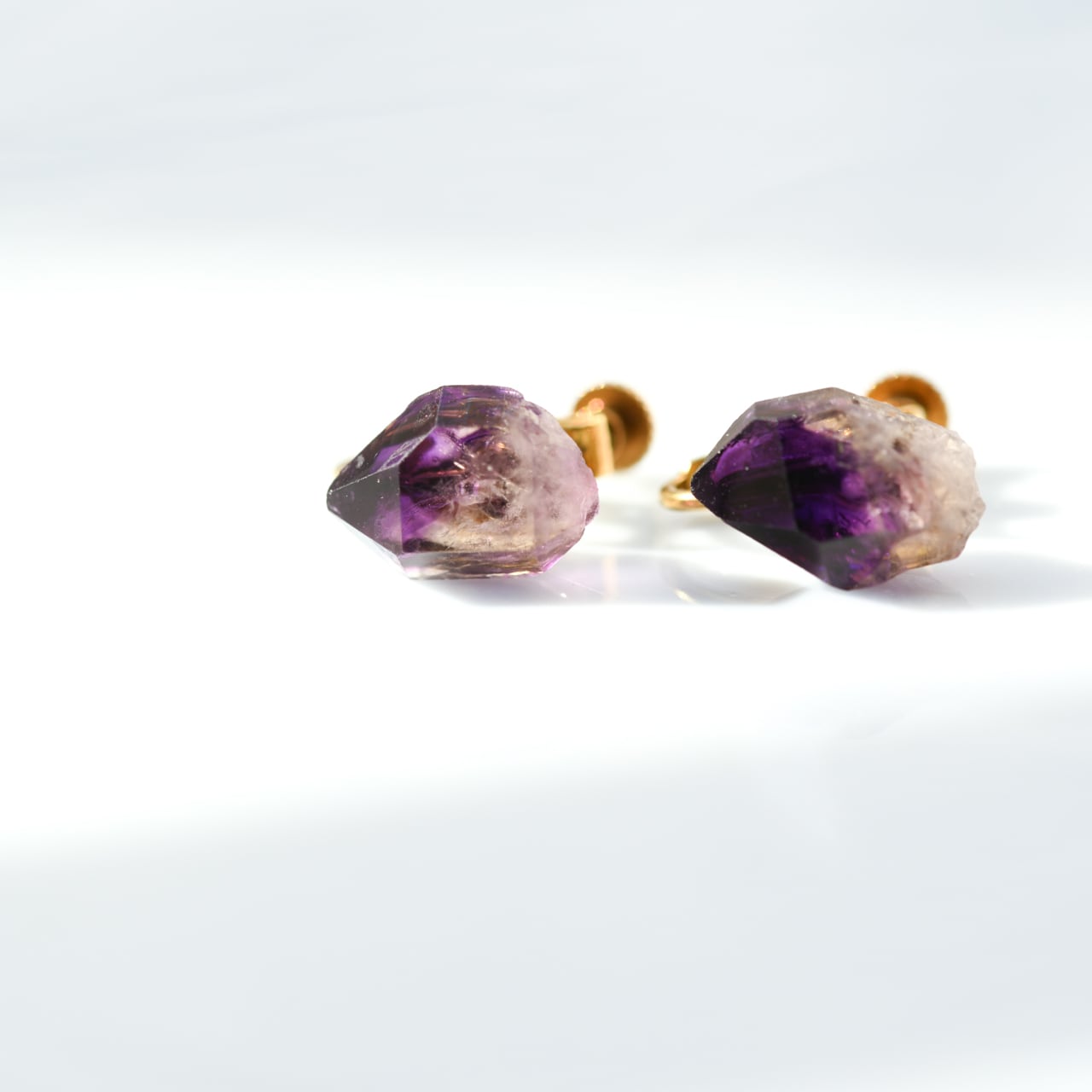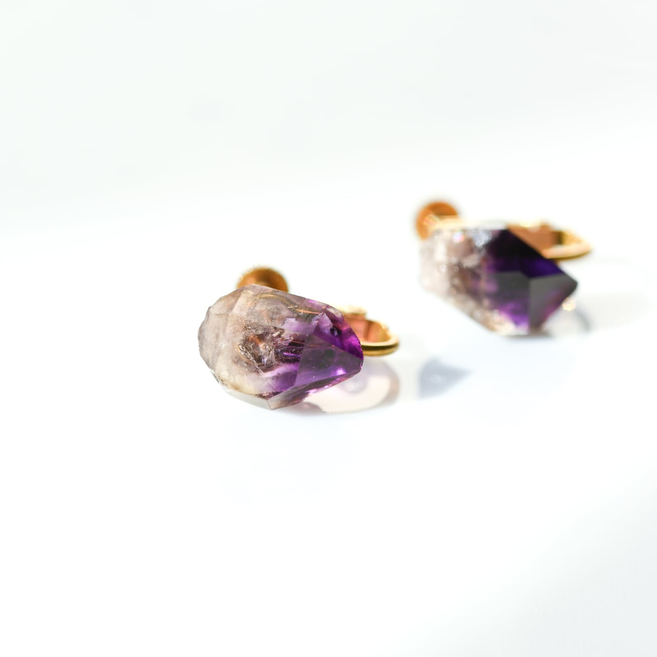 アメシスト (アメジスト)の原石を使用したネジバネタイプのイヤリングです。