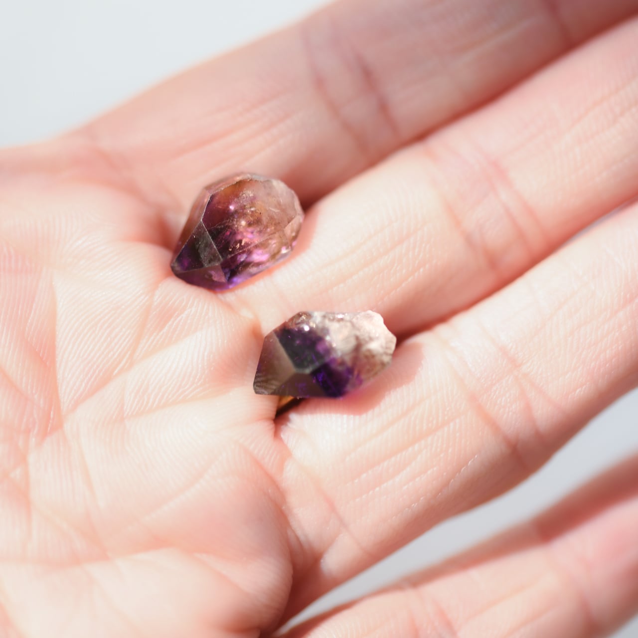 色つき水晶は不純物を含んで発色しており、アメジストはケイ素の一部が鉄イオンに置き換わったものです。