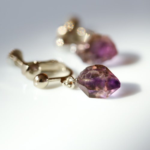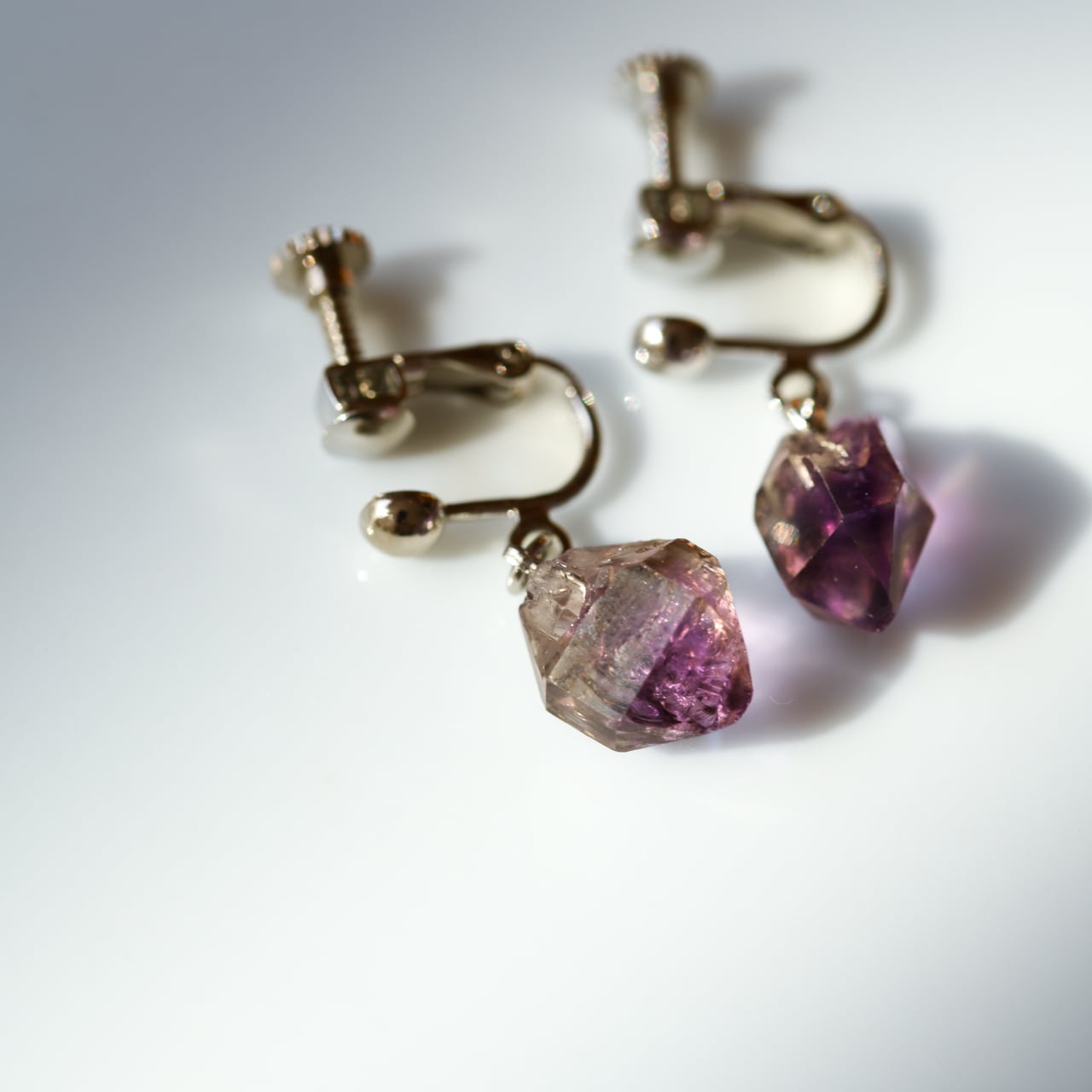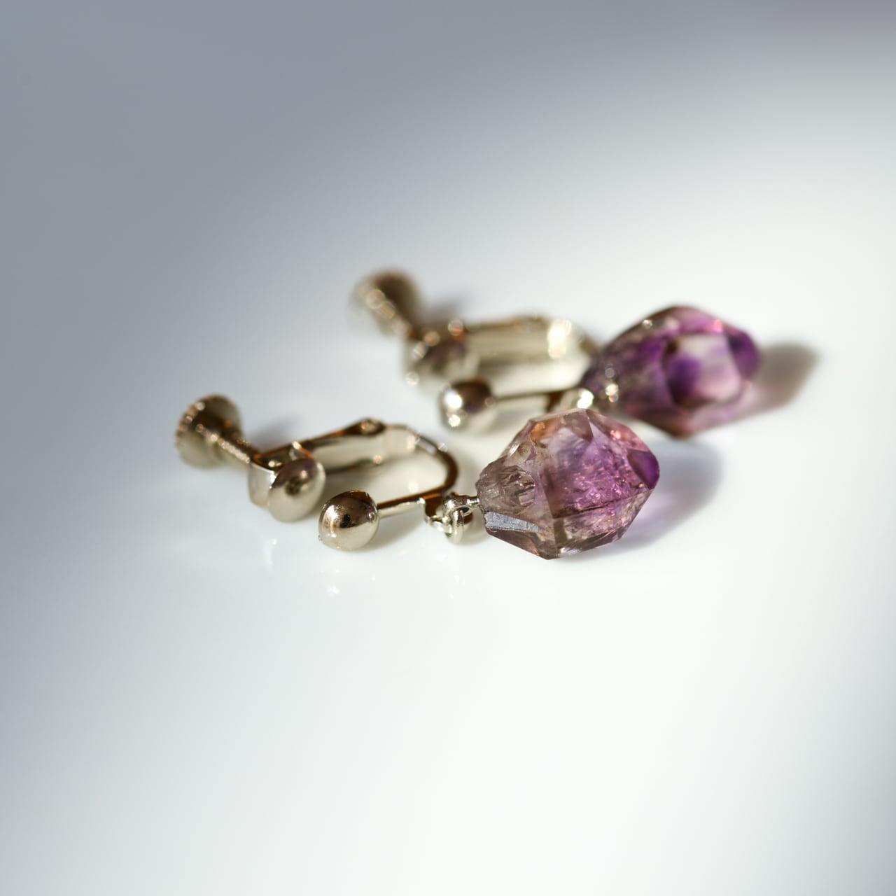 アメシスト (アメジスト)の原石を使用した揺れるネジバネタイプのイヤリングです。