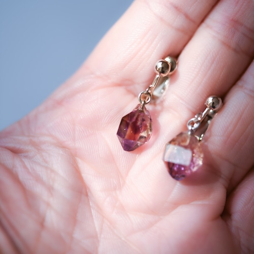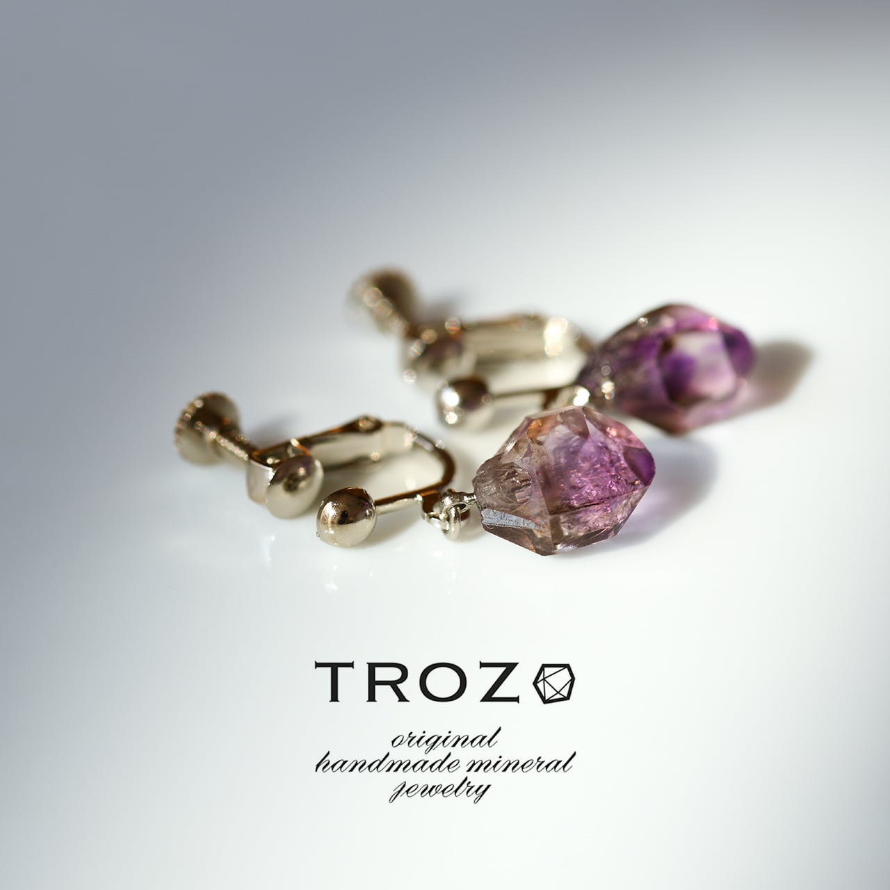 澄んだ透明感と深みのある紫色が美しい、ジンバブエ産アメジストの原石を使用したイヤリングです。