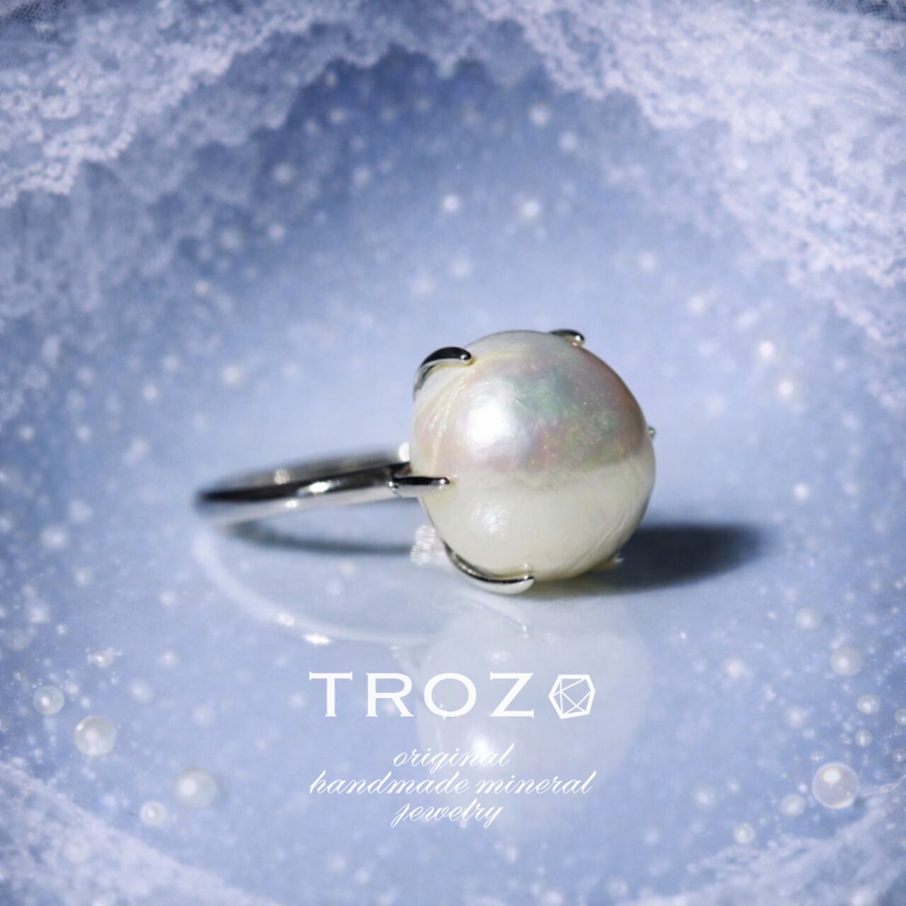 パール(淡水バロックパール)の原石を使用したシルバー925(ロジウムメッキ)のフリーサイズのリングです。