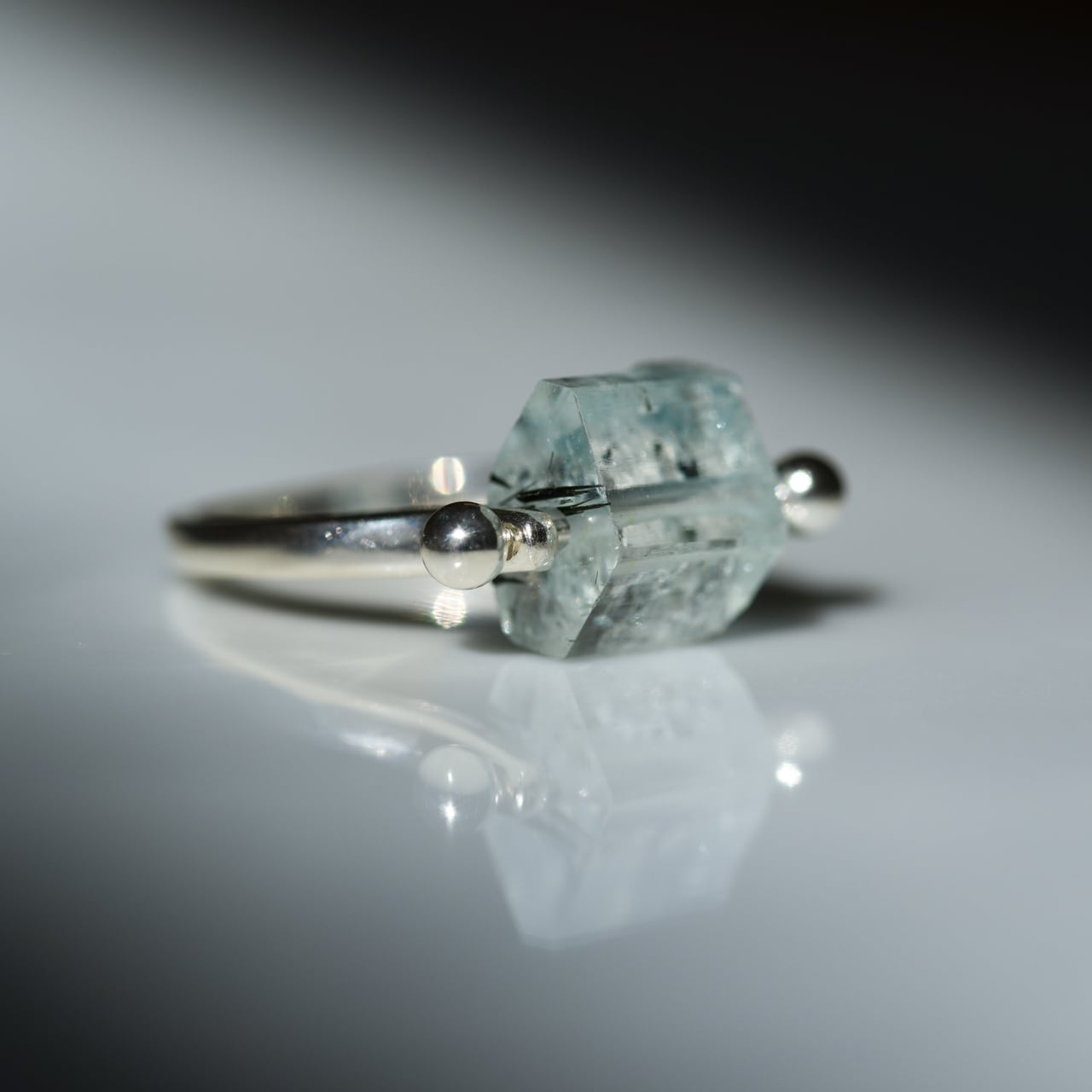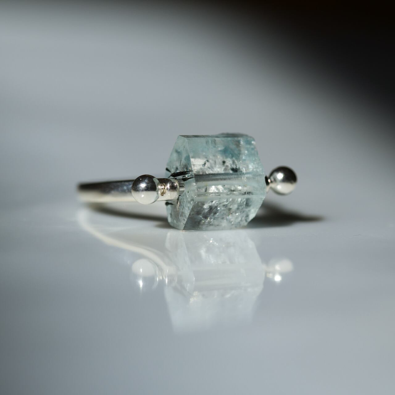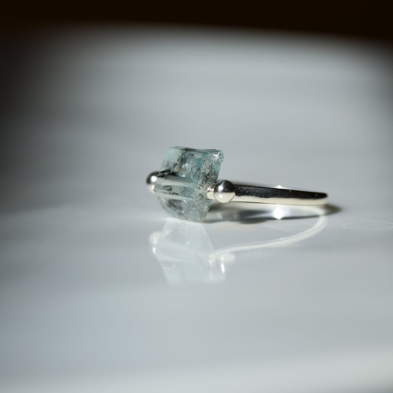 【008 Veiled Nereids Collection】 アクアマリン 鉱物原石 シルバー925 リング 指輪 天然石 アクセサリー (No.3711)