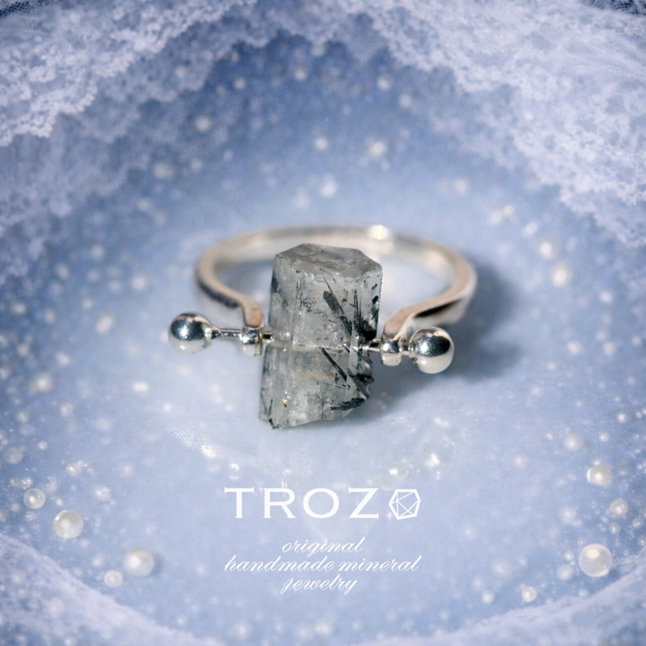 内包物が生み出す自然の模様と淡いブルーの輝きが、