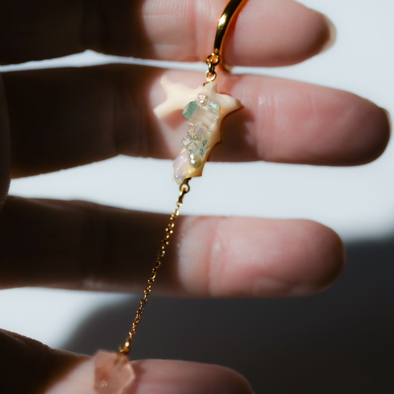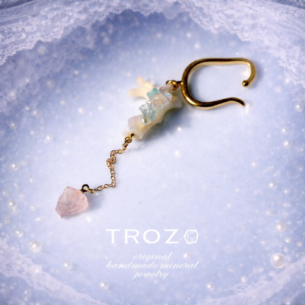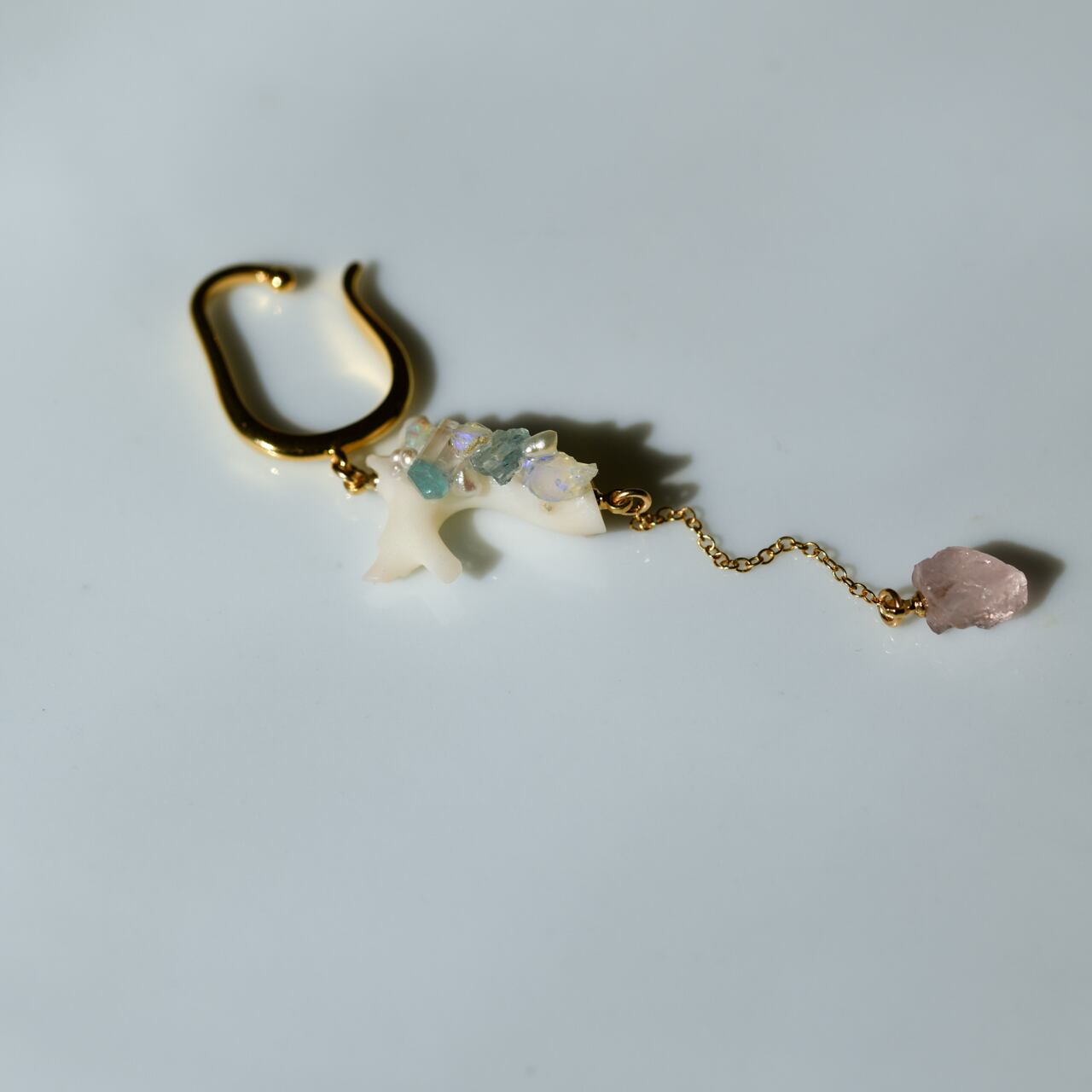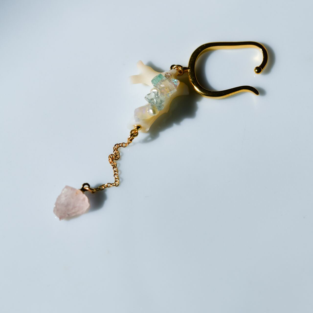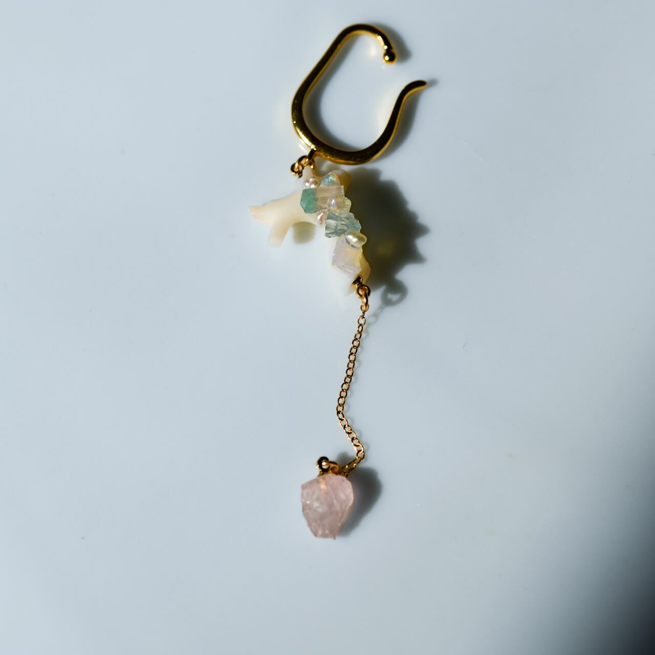 【018 Veiled Nereids Collection】 Integration Ear Cuff 白珊瑚 × アクアマリン × トルマリン × モルガナイト × オパール × ケシパール 鉱物原石 イヤーカフ 天然石 アクセサリー (No.3704)