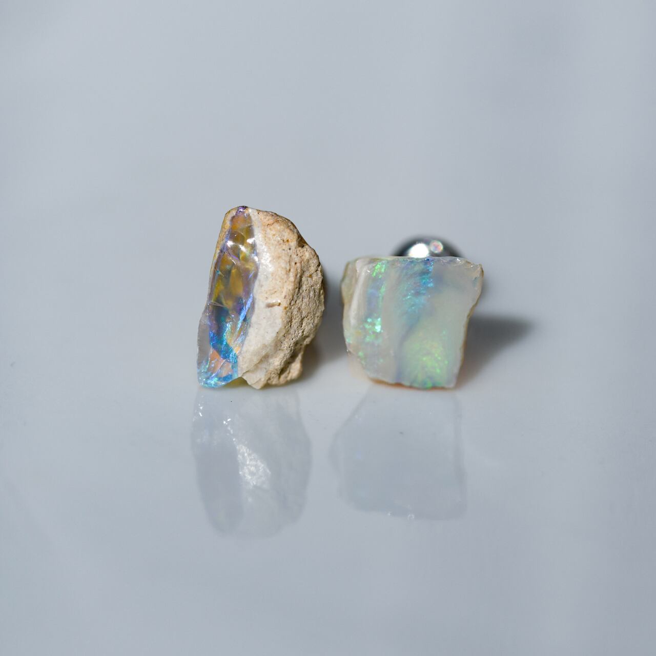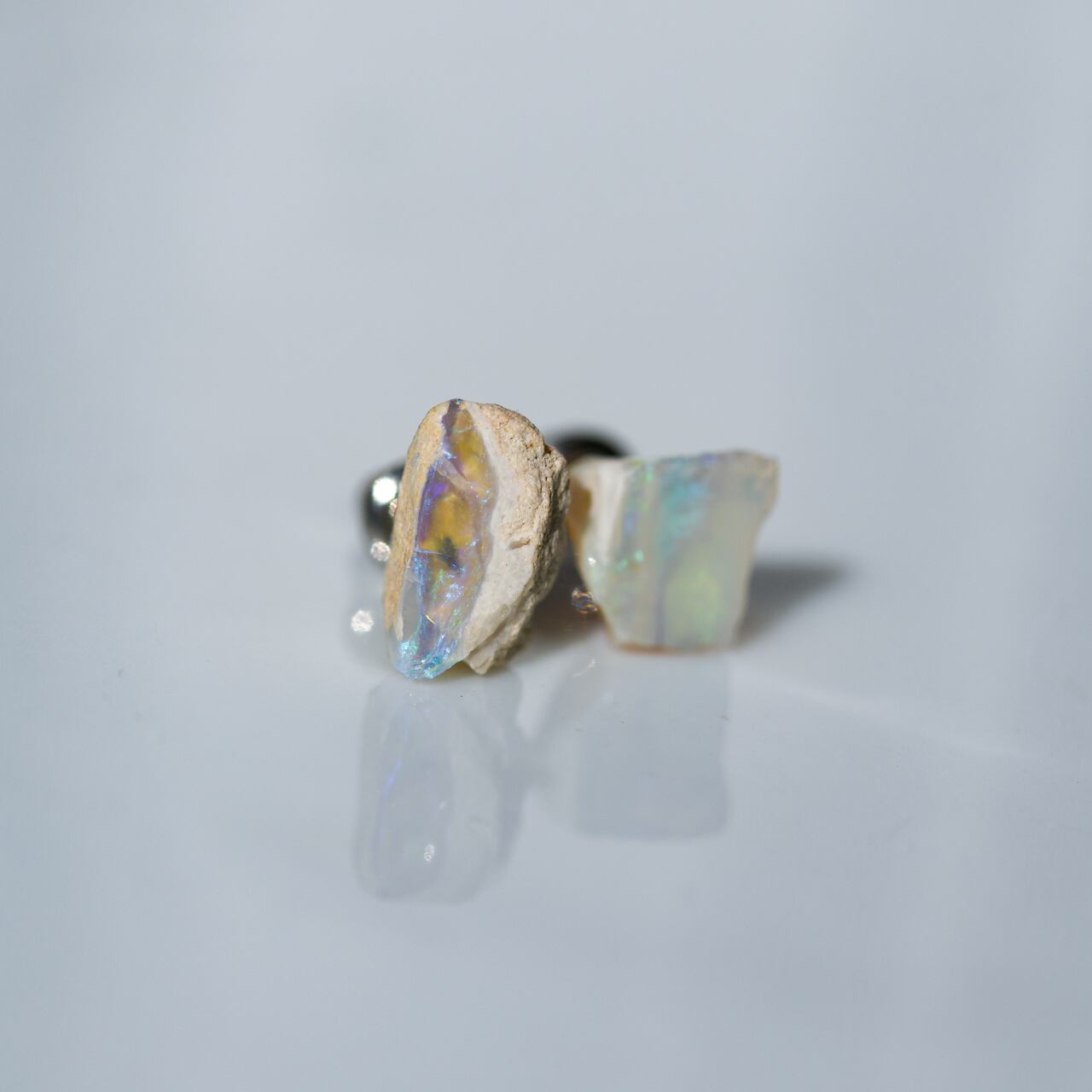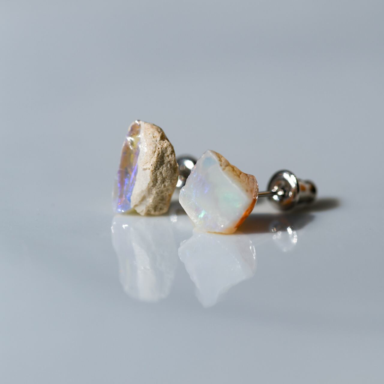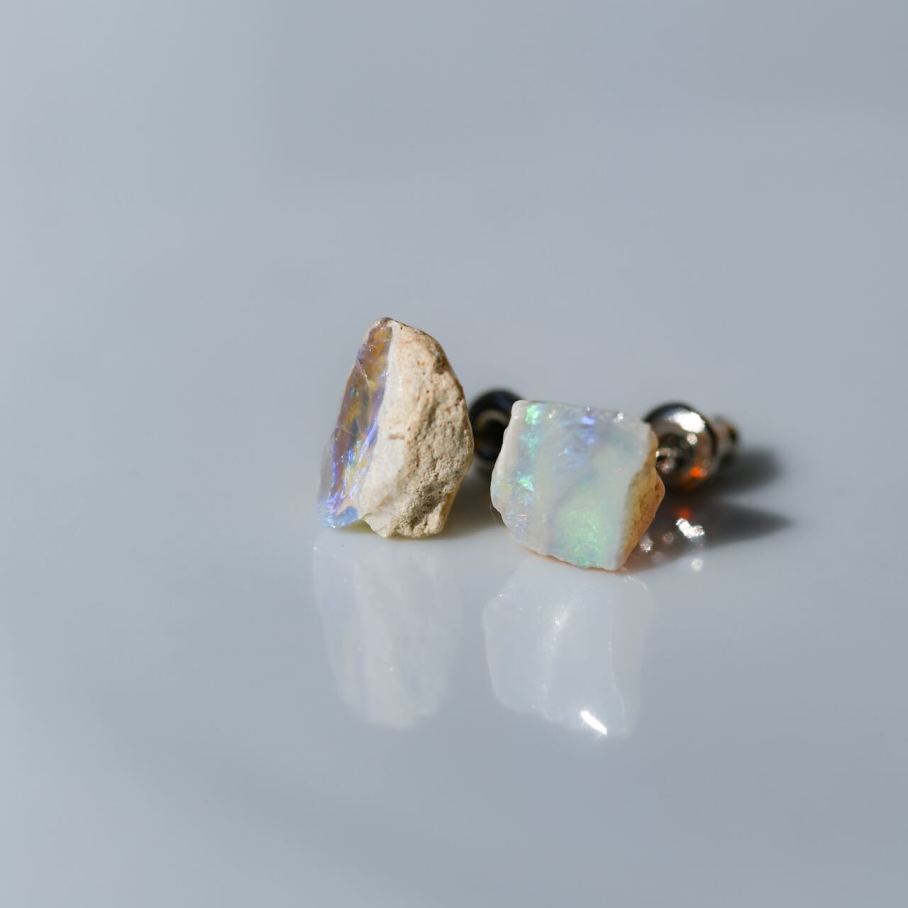 【024 Veiled Nereids Collection】 ライトニングリッジ産 ブラックオパール 鉱物原石 サージカルステンレス ピアス 天然石 アクセサリー (No.3717)