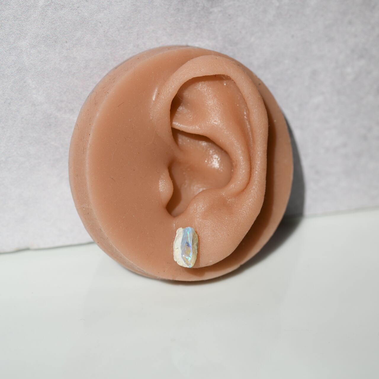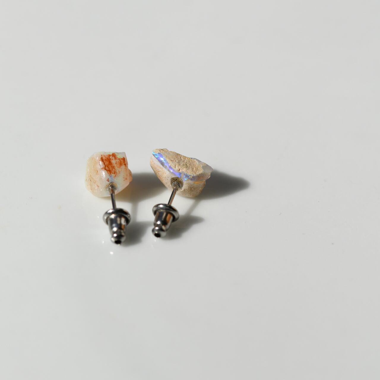 ブラックオパールの原石を使用したサージカルステンレスのスタッドピアスです。