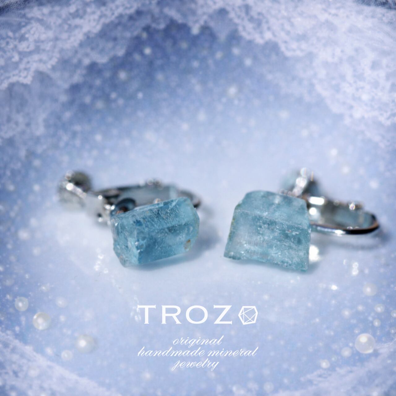 【026 Veiled Nereids Collection】 アクアマリン 鉱物原石 イヤリング 天然石 アクセサリー (No.3719)
