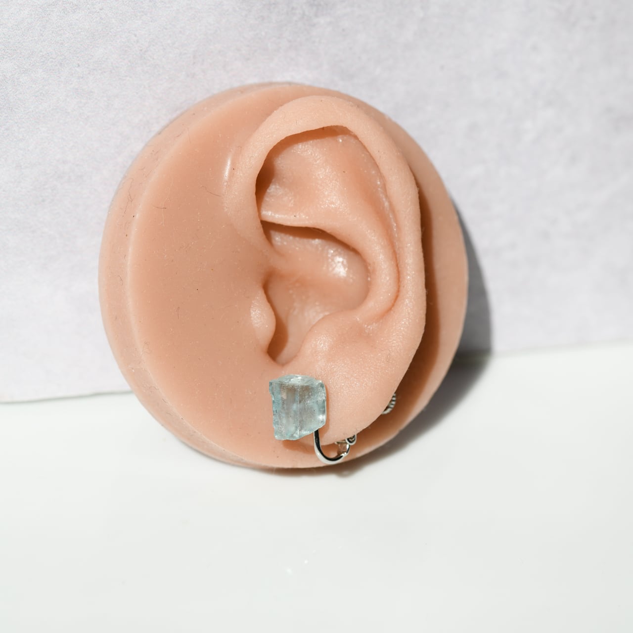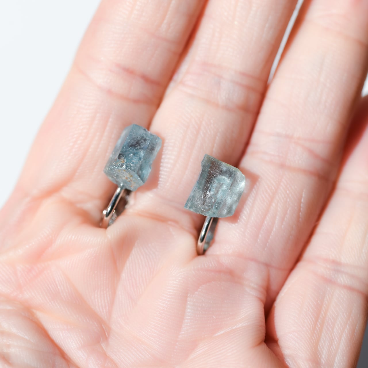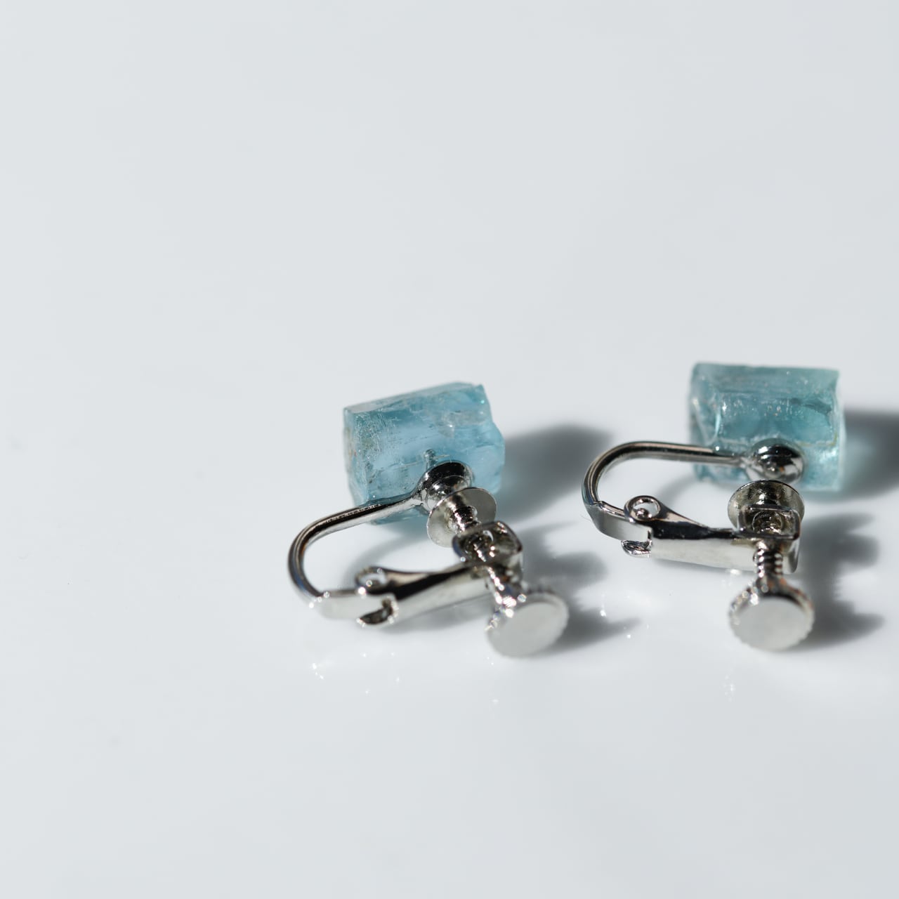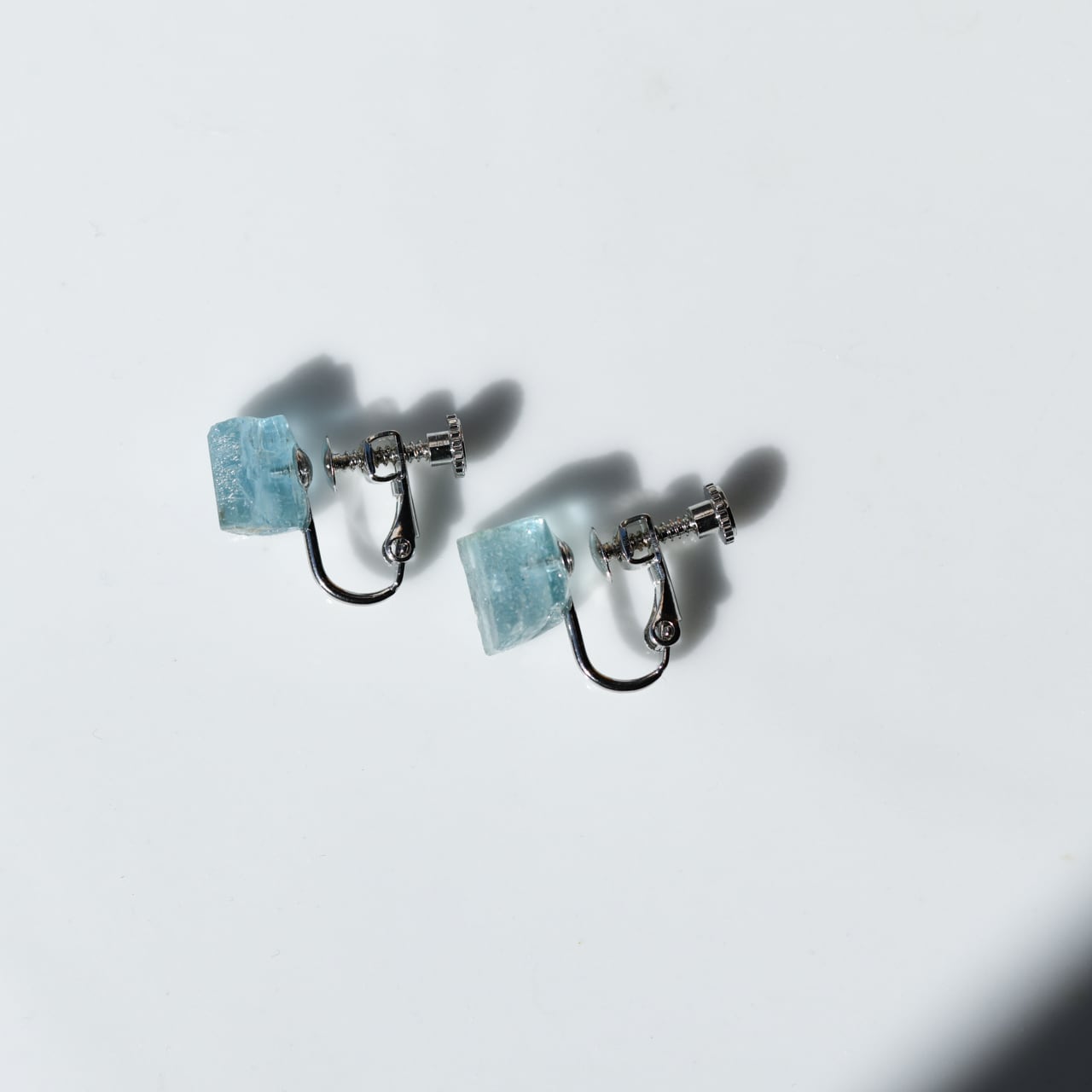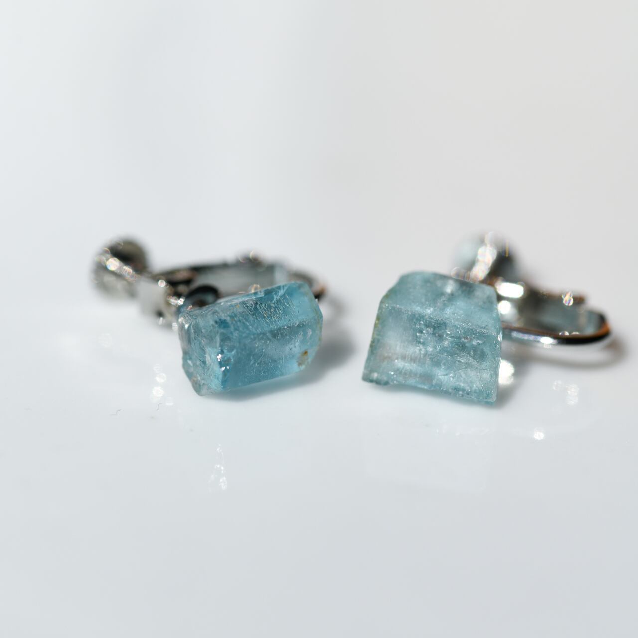 アクアマリンの原石を使用したネジバネタイプのイヤリングです。