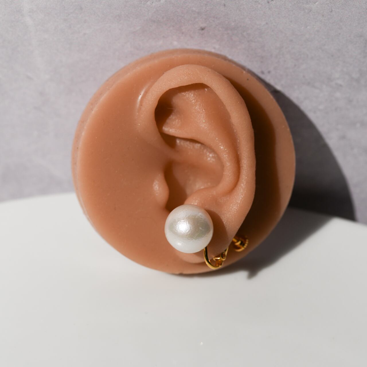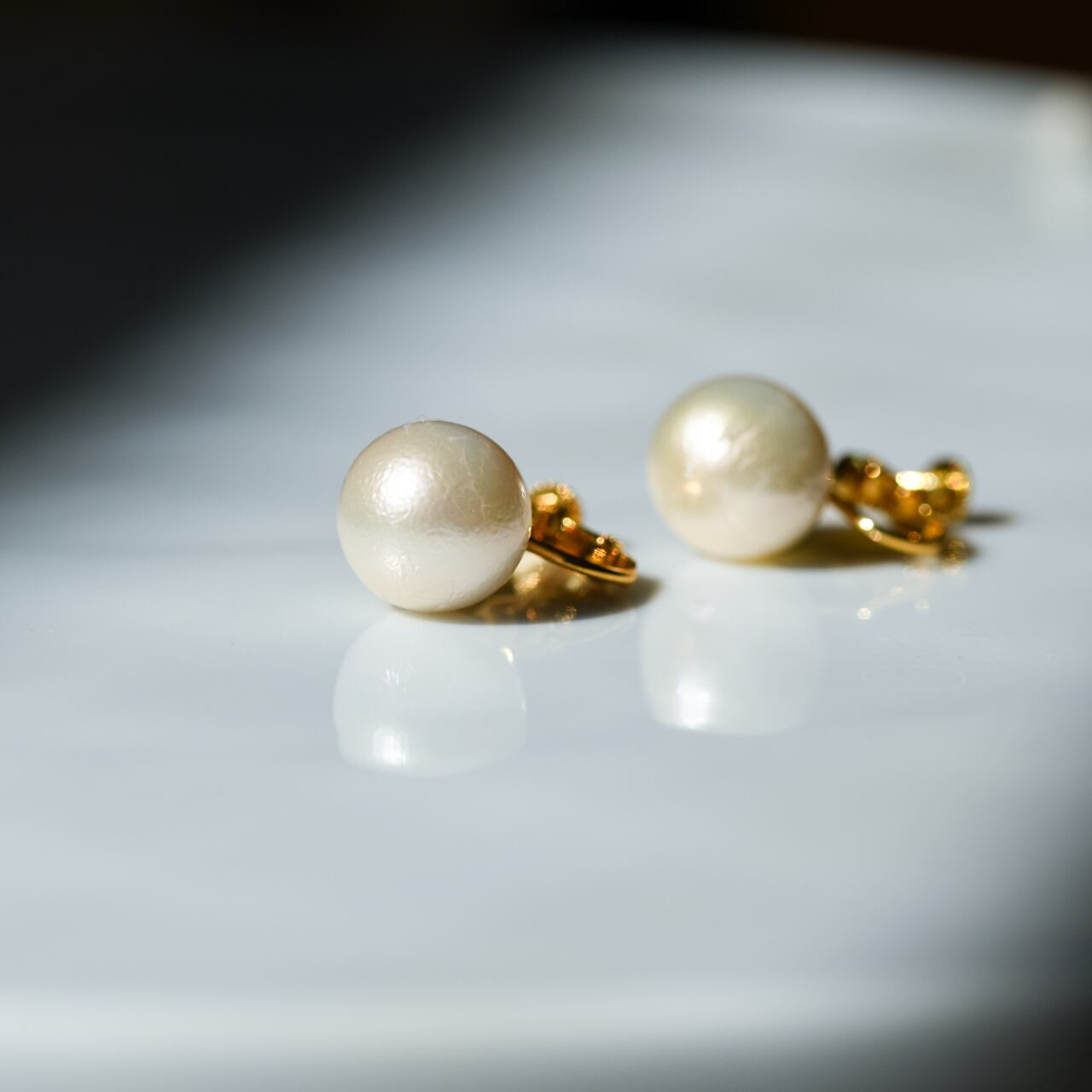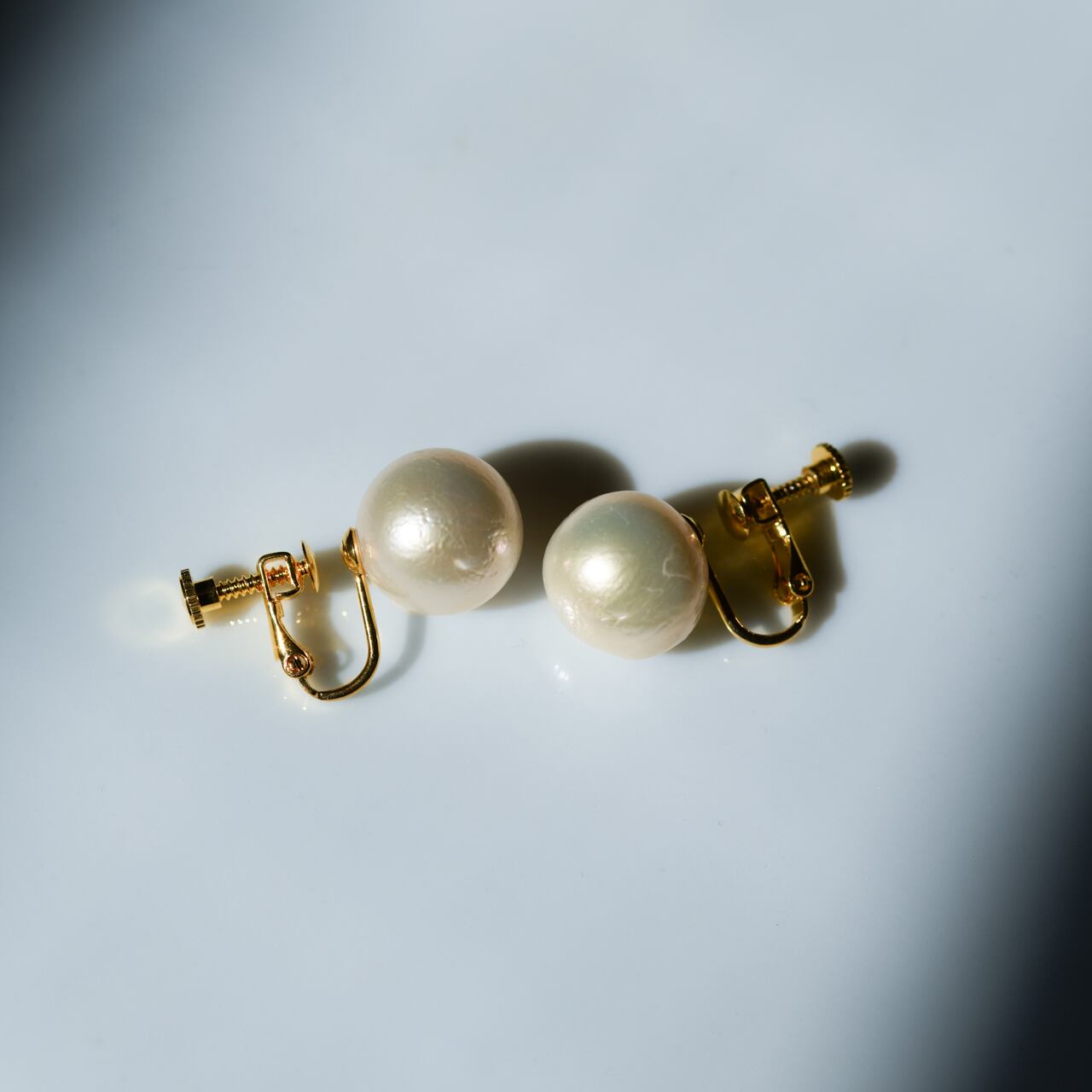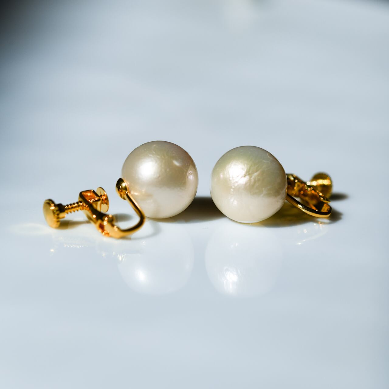 パール(淡水バロックパール 真珠)の原石を使用したネジバネタイプのイヤリングです。
