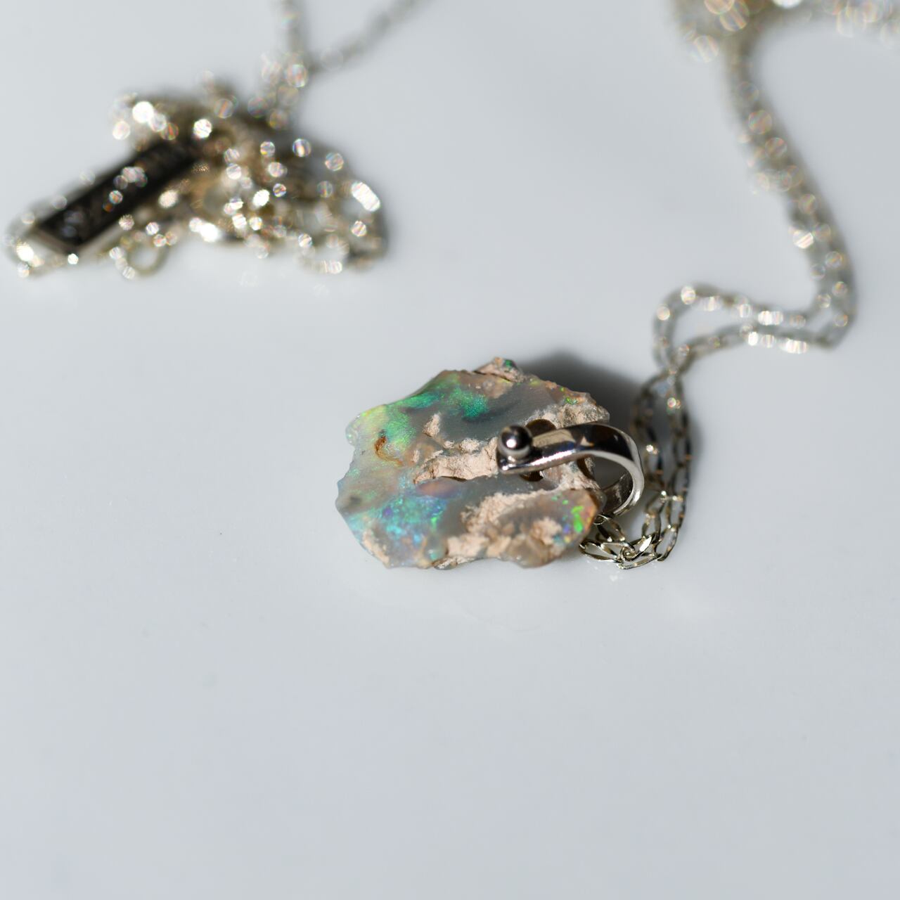【032 Veiled Nereids Collection】 ライトニングリッジ産 ブラックオパール 鉱物原石 シルバー925 チェーンネックレス 天然石 アクセサリー (No.3726)