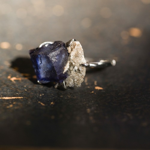 【002 The Starry Night Collection】 フローライト 鉱物原石 フリーサイズ シルバー925 リング 指輪 天然石 アクセサリー (No.3742)