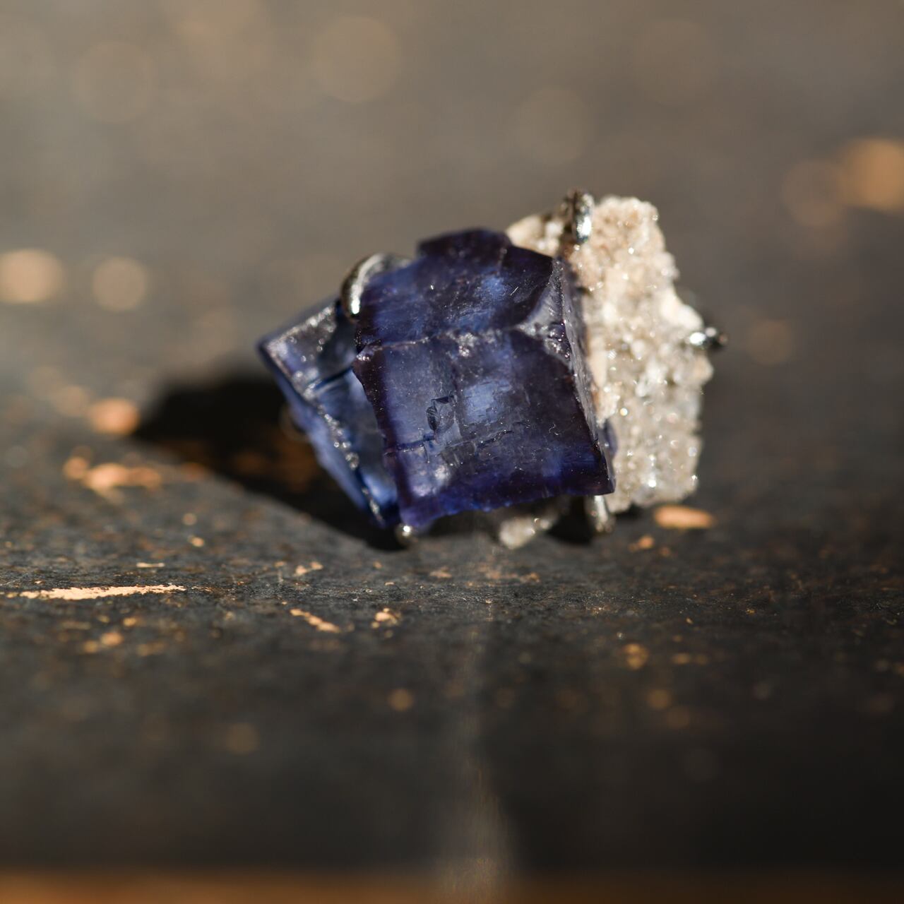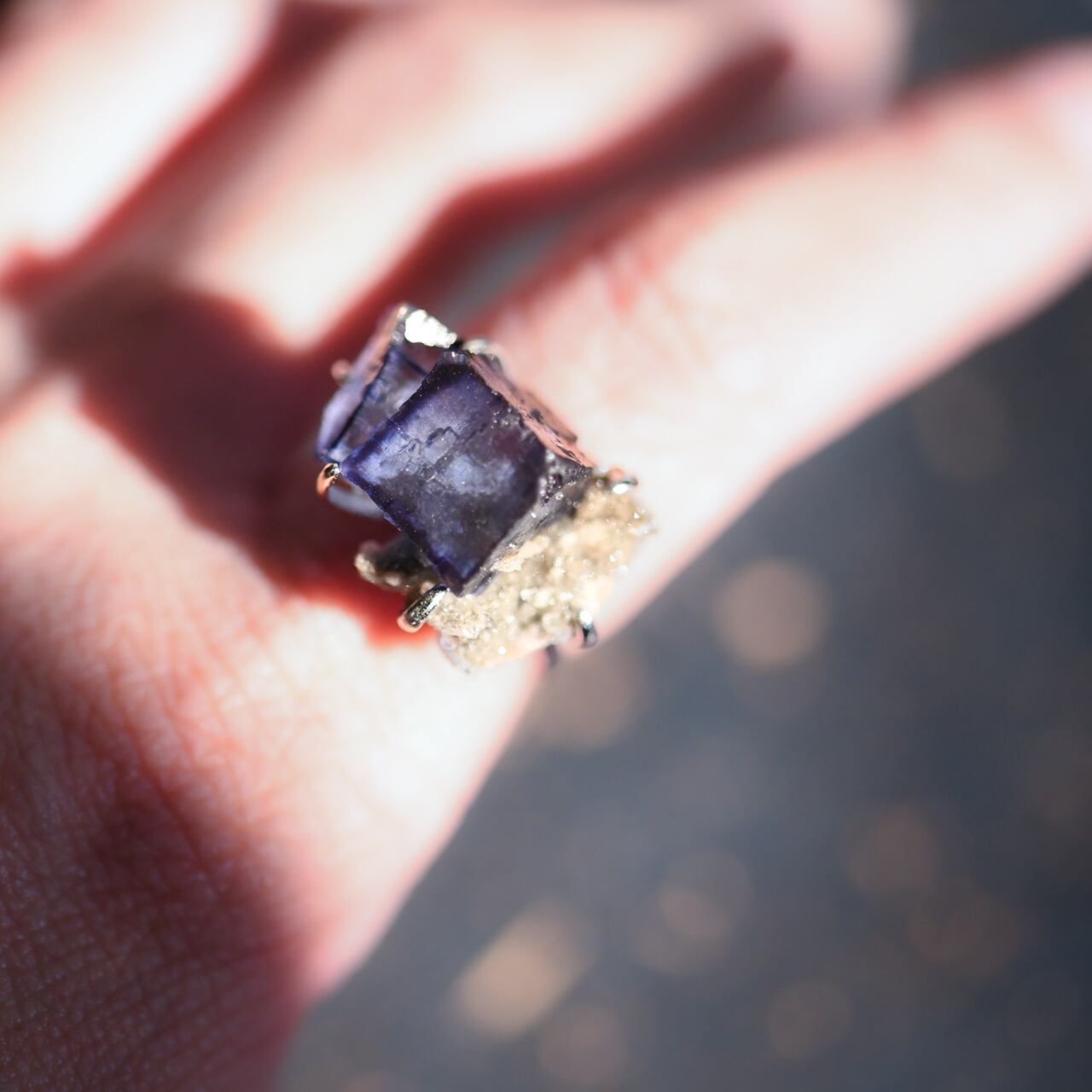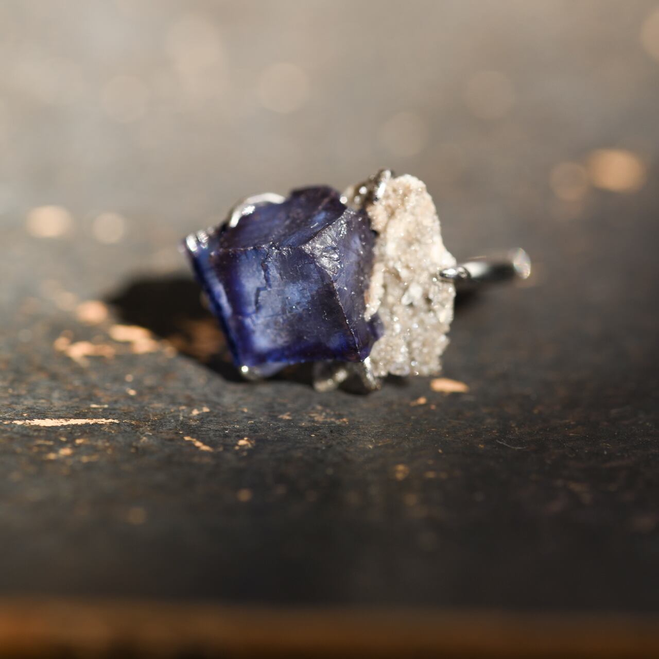 フローライトは劈開(へきかい)性が高く正八面体に割れやすいため衝撃には注意が必要です。