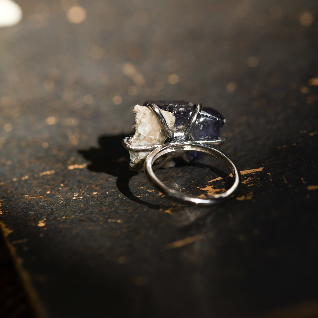 夜空のようなダークネイビーでやや紫がかったカラーです。母岩付きで原石らしさをお楽しみ頂けます。
