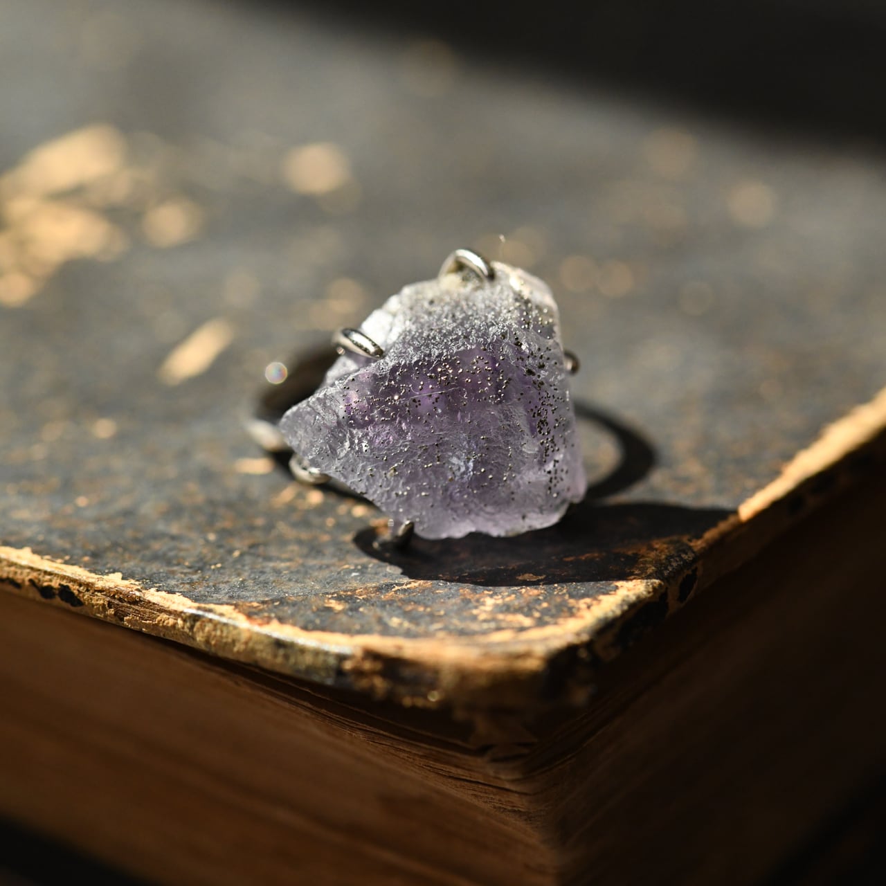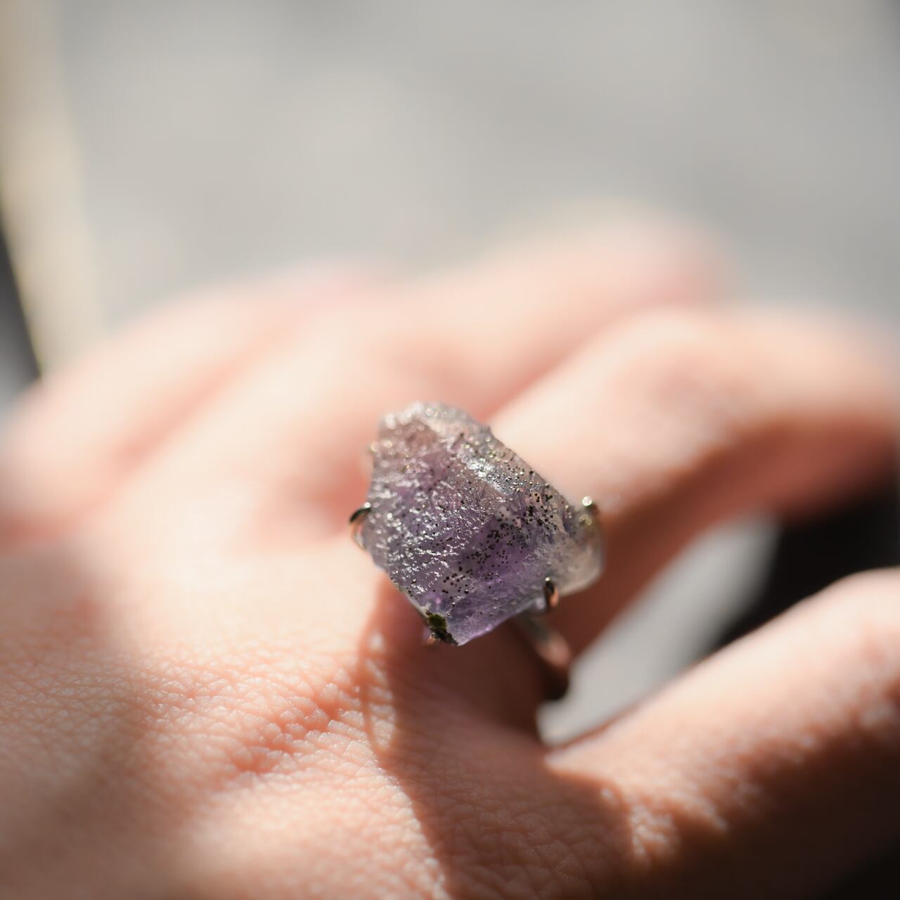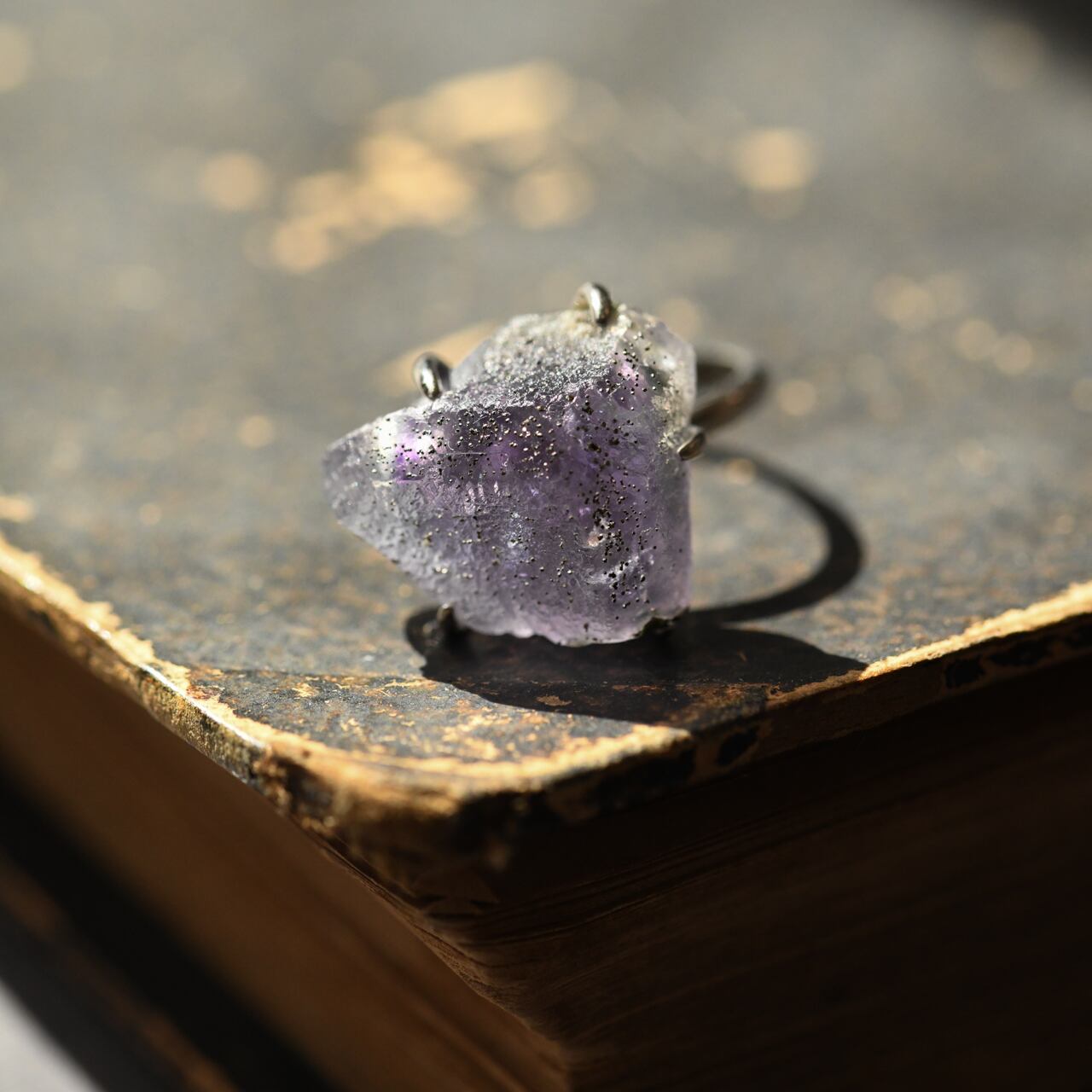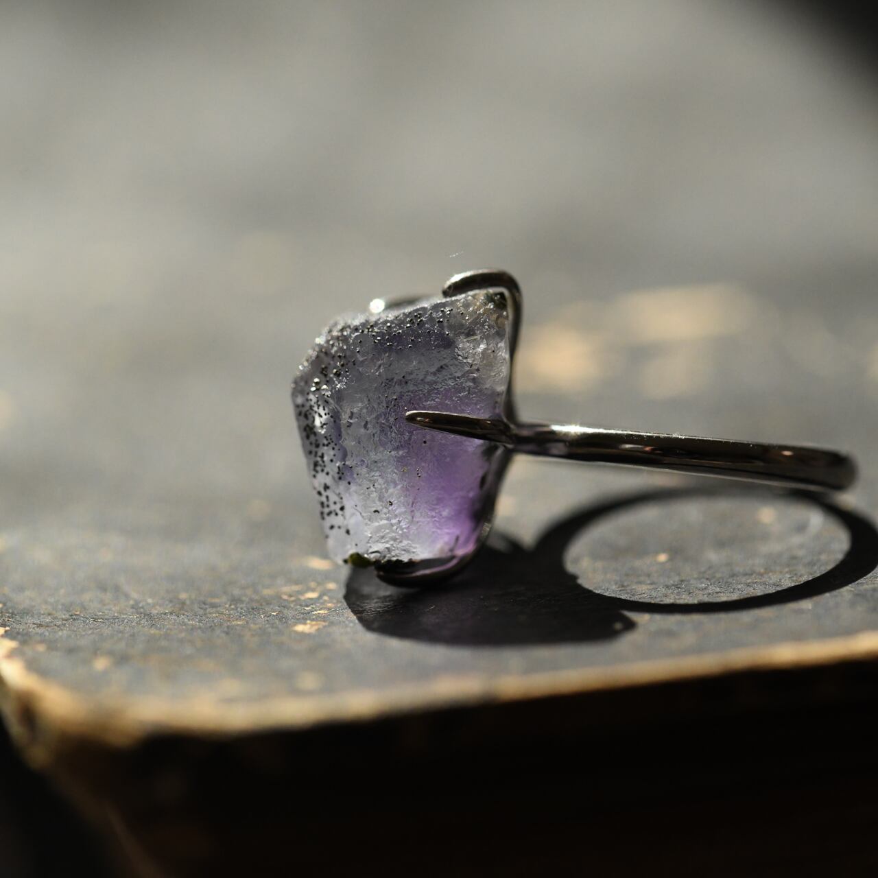 フローライトの原石を使用したシルバー925(ロジウムメッキ)のフリーサイズのリングです。