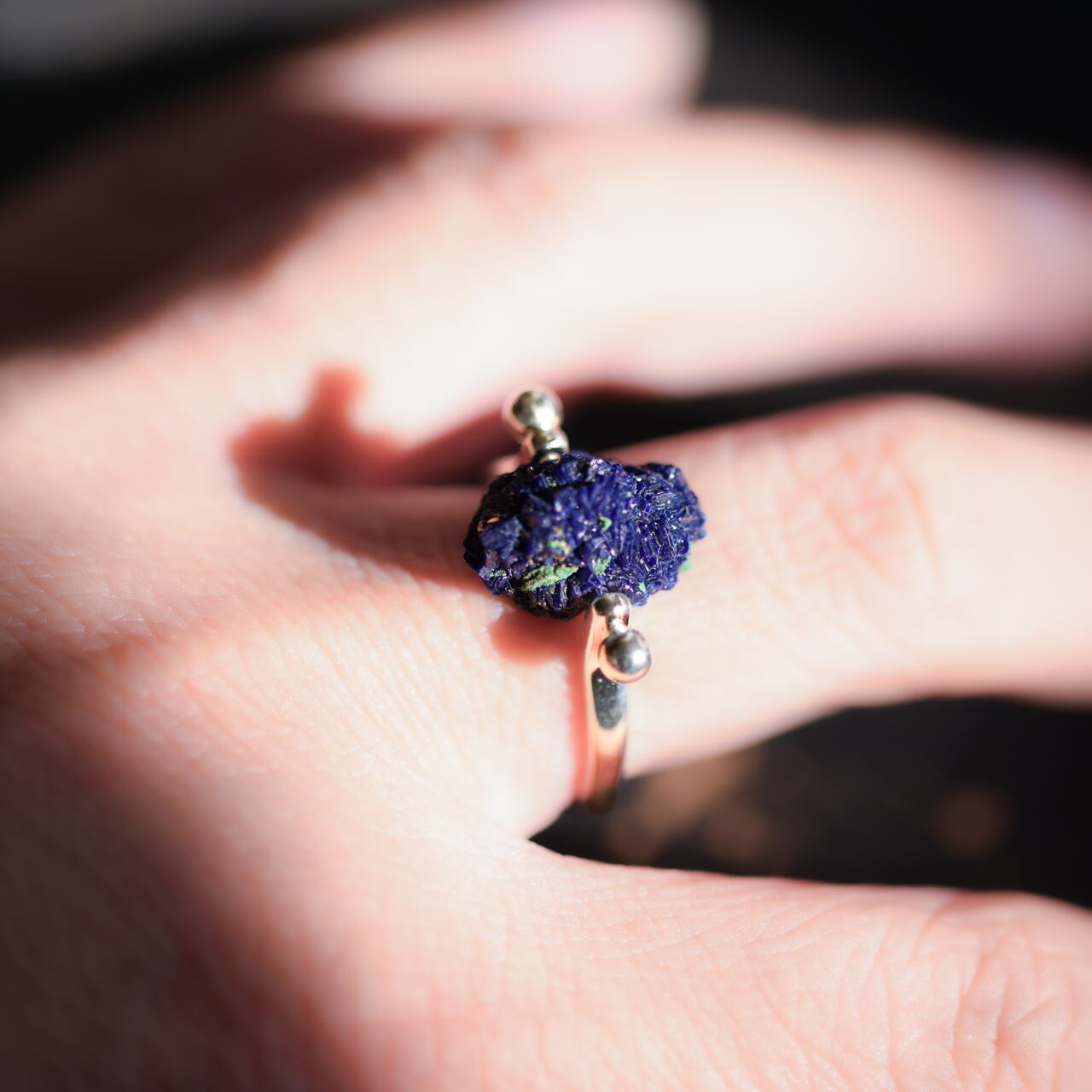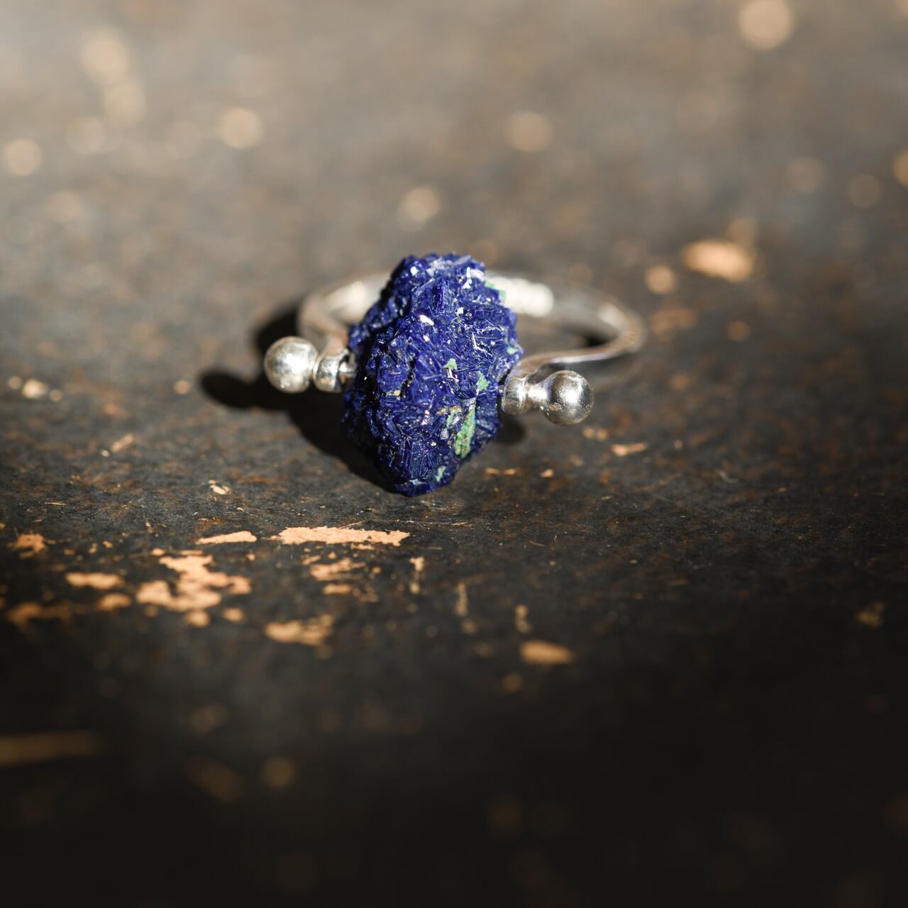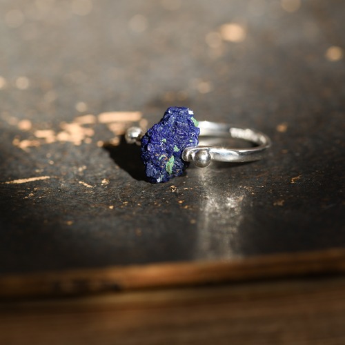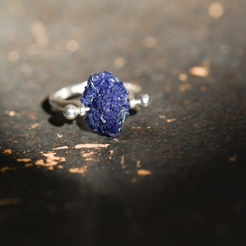 【004 The Starry Night Collection】 アズライト 鉱物原石 シルバー925 リング 指輪 天然石 アクセサリー (No.3741)