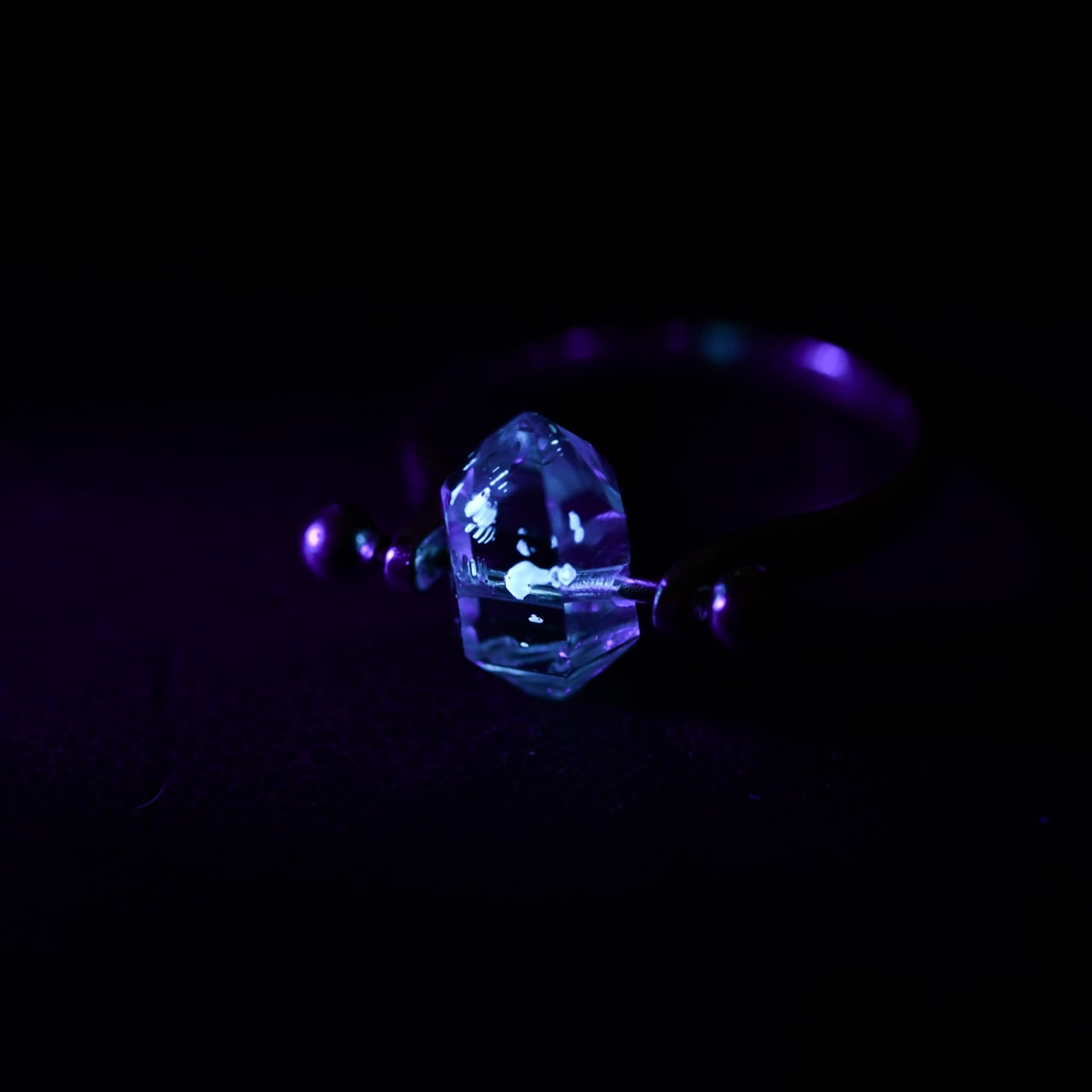 透明感抜群の水晶の中に美しい蛍光イエローのオイルが内包されております。