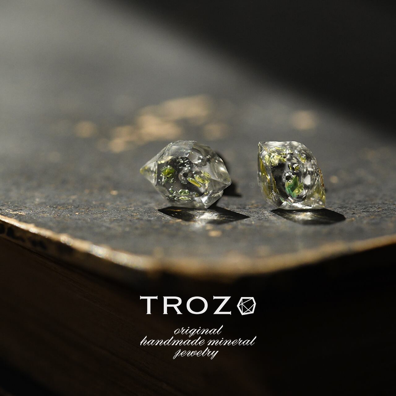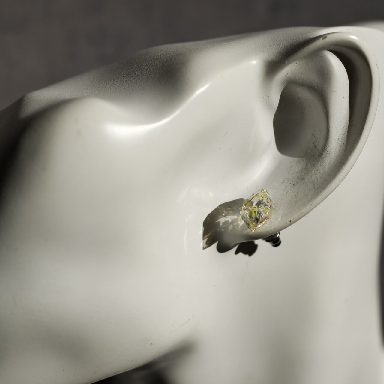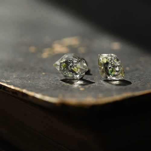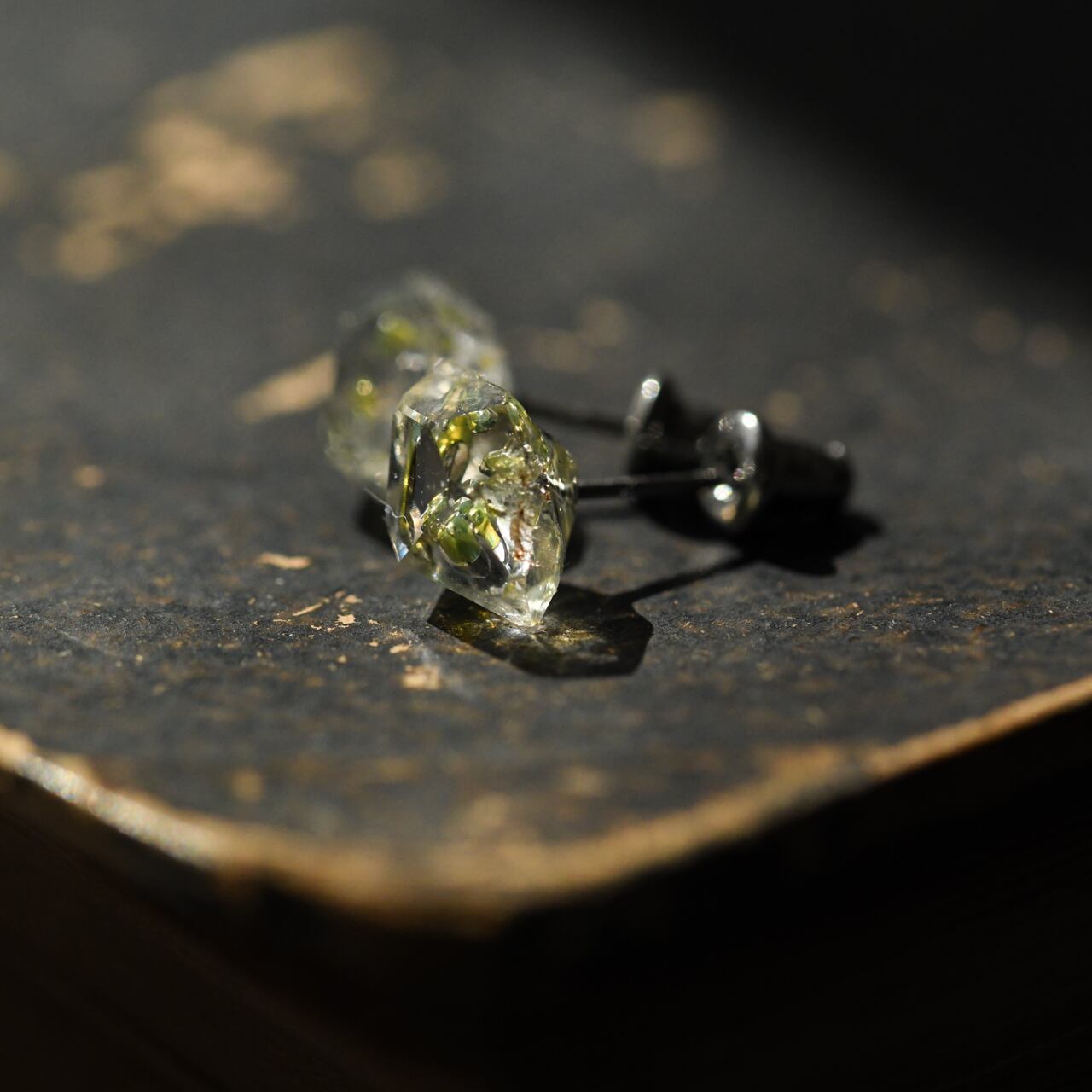 オイルインクォーツの原石を使用したサージカルステンレスのスタッドピアスです。