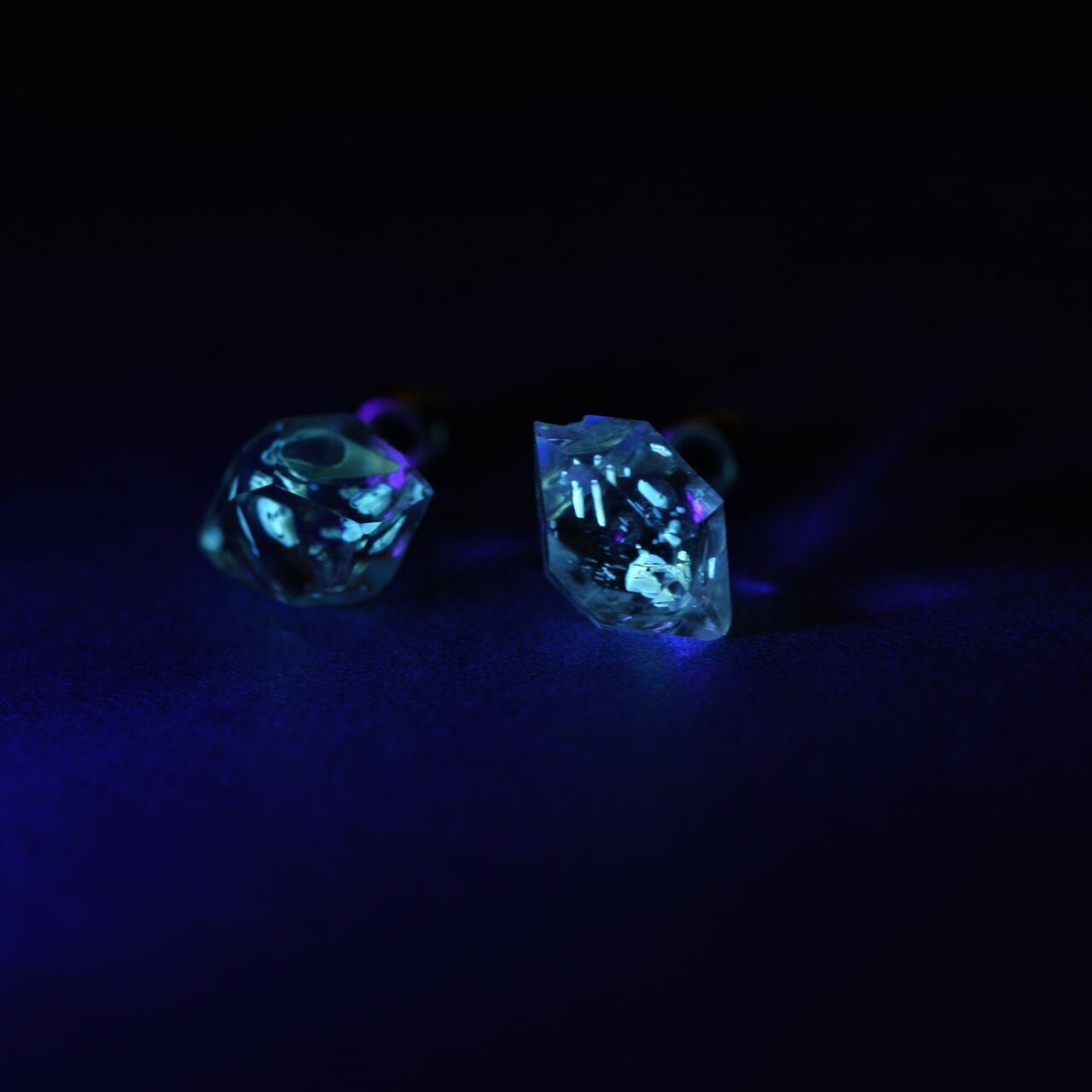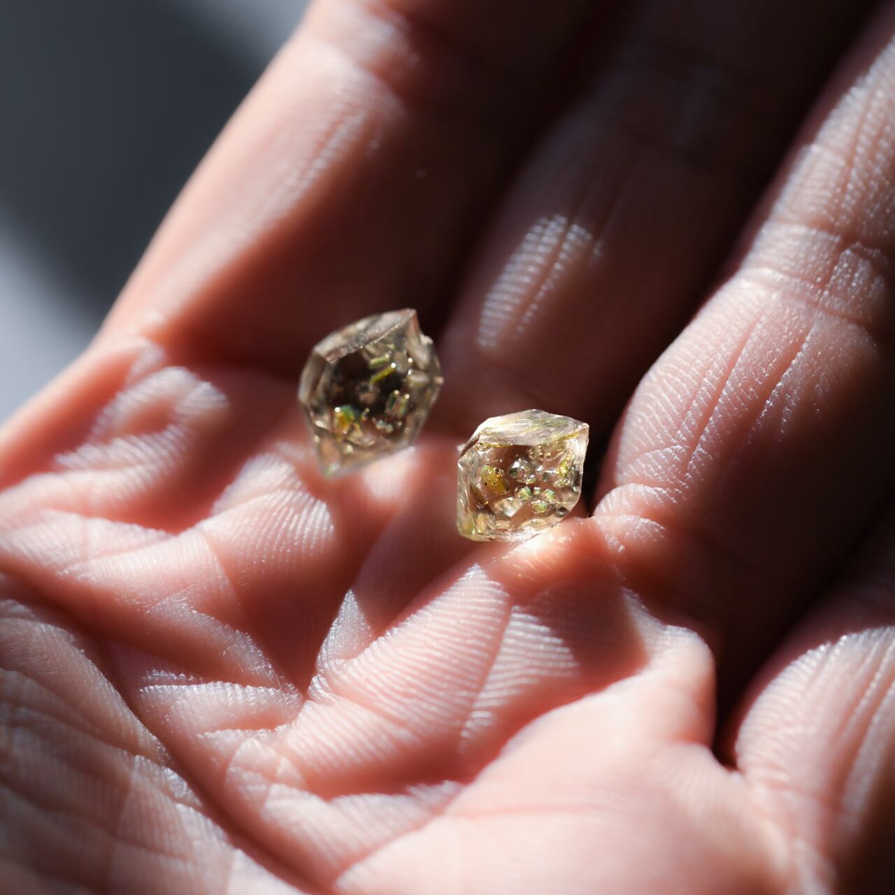 2石とも両剣で非常に美しい透明感と形状です。蛍光イエローのオイルが内包されております。