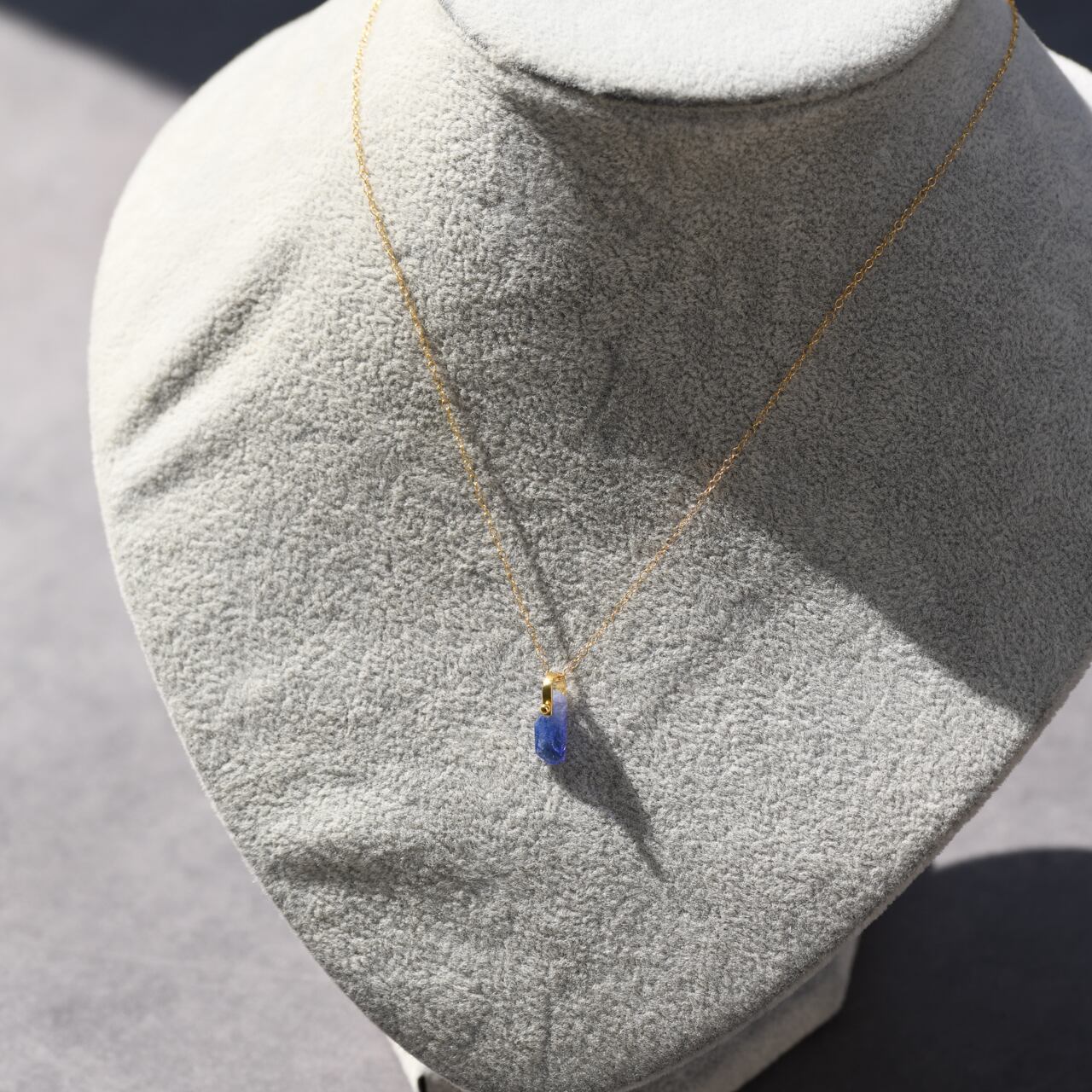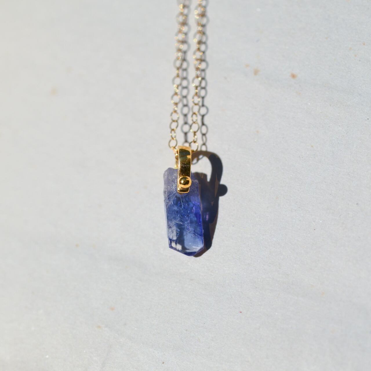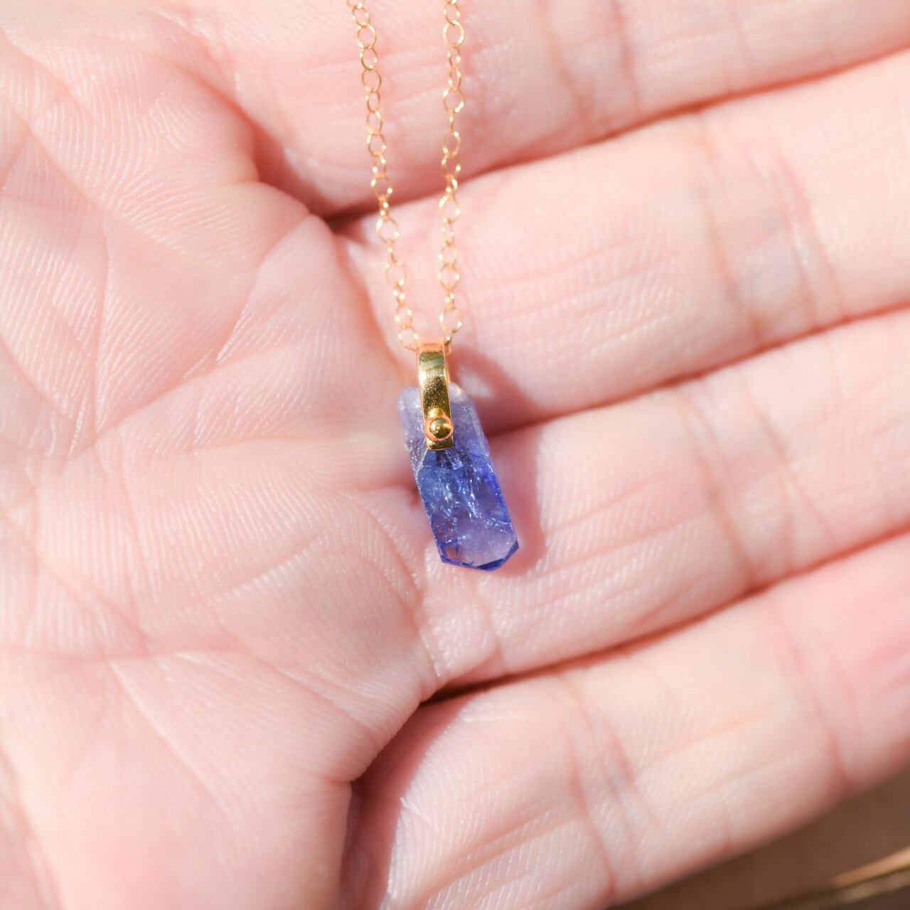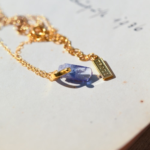 タンザナイトの原石を使用したアジャスター付きの14kgfのネックレスです。