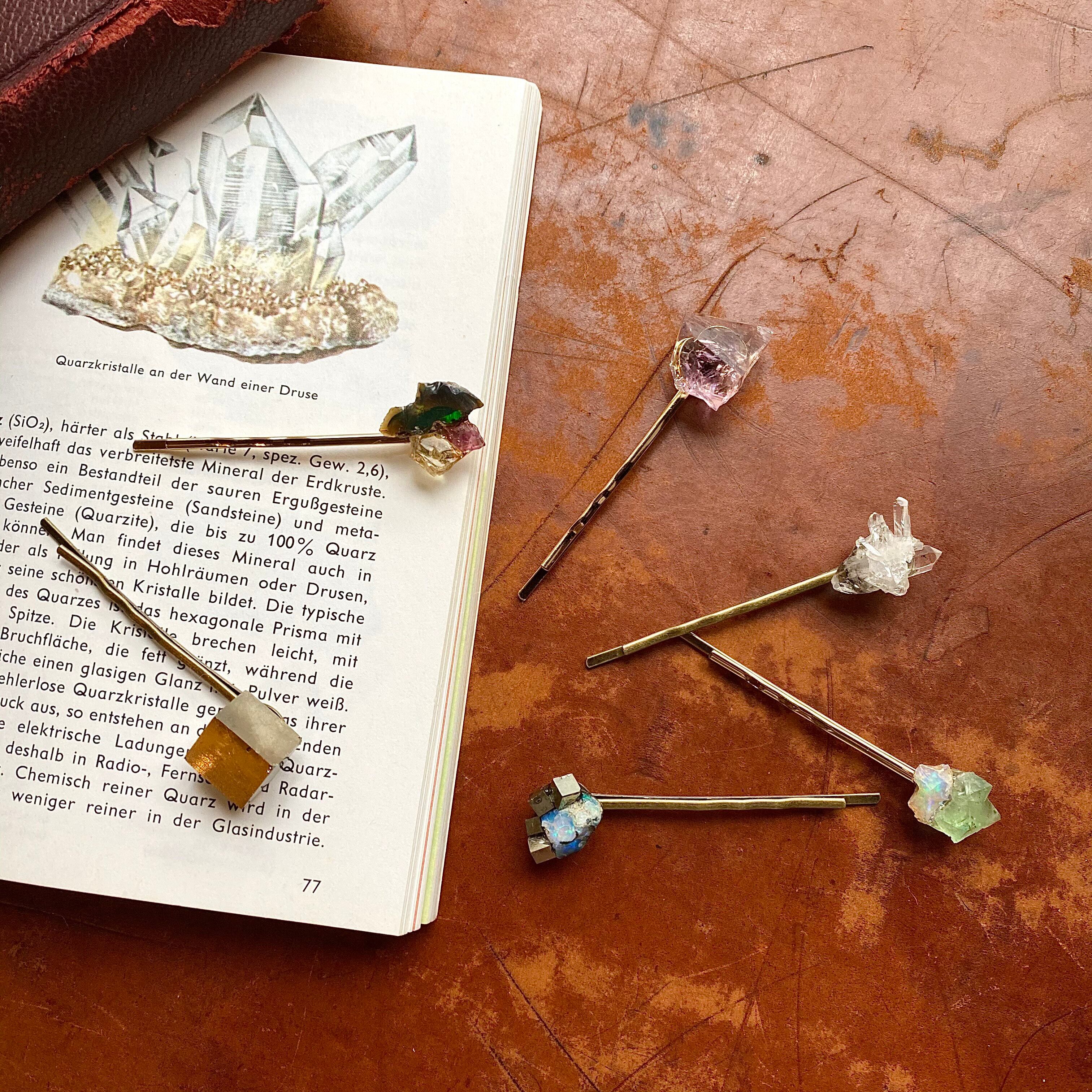 ブラックオパールとトルマリンの原石を使用したヘアピンです。