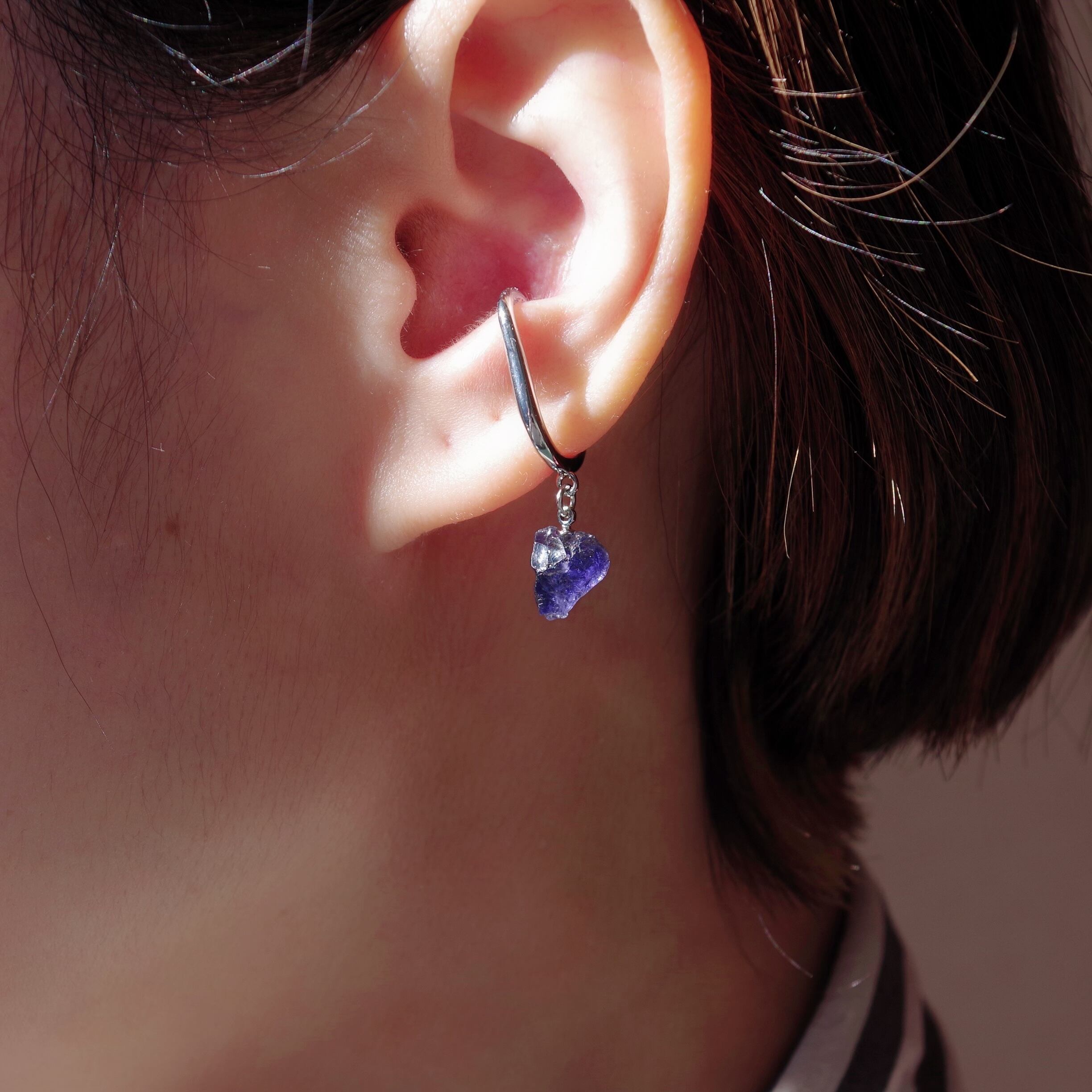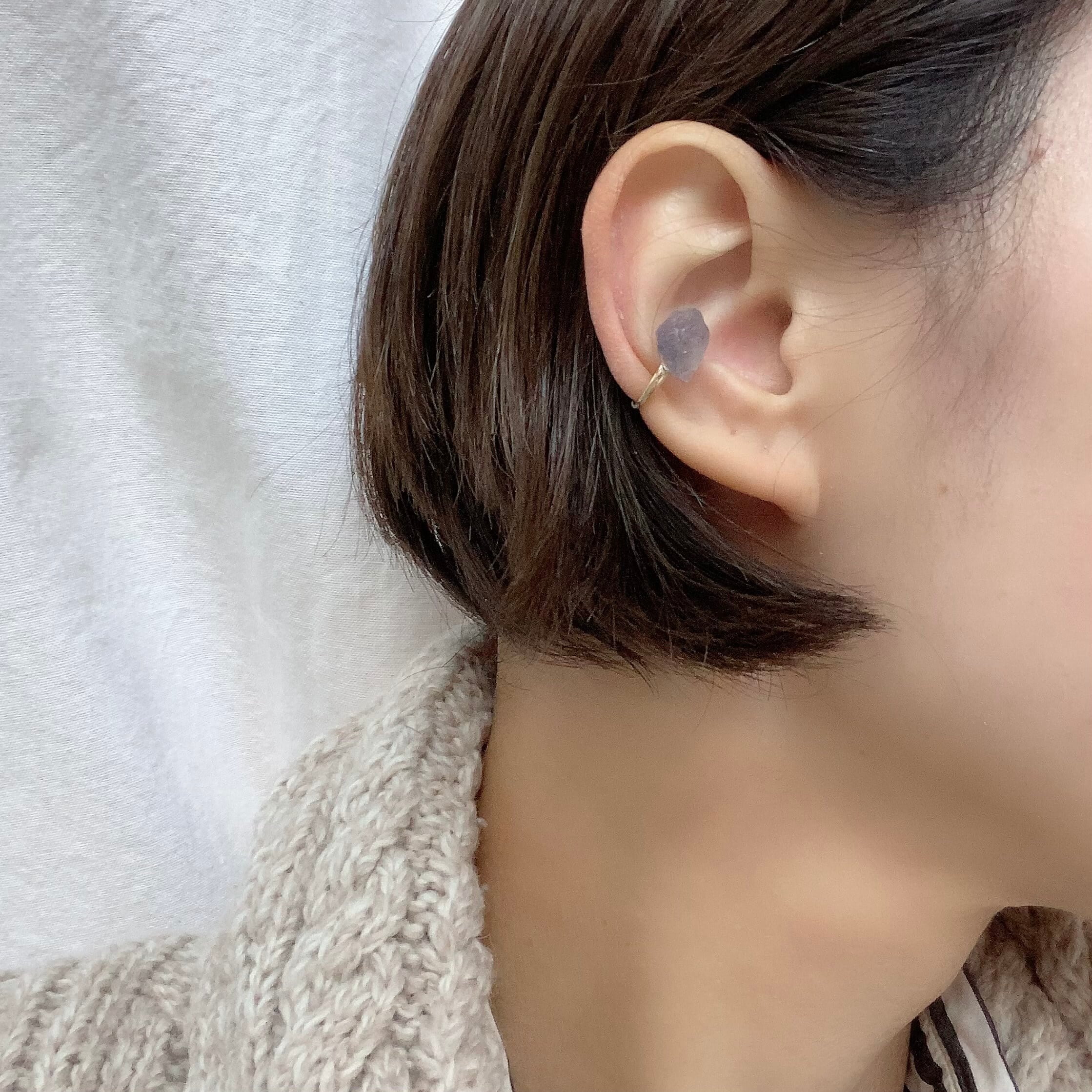 アイオライトの原石を使用した、金具を選択できるセミオーダーのイヤーカフです。