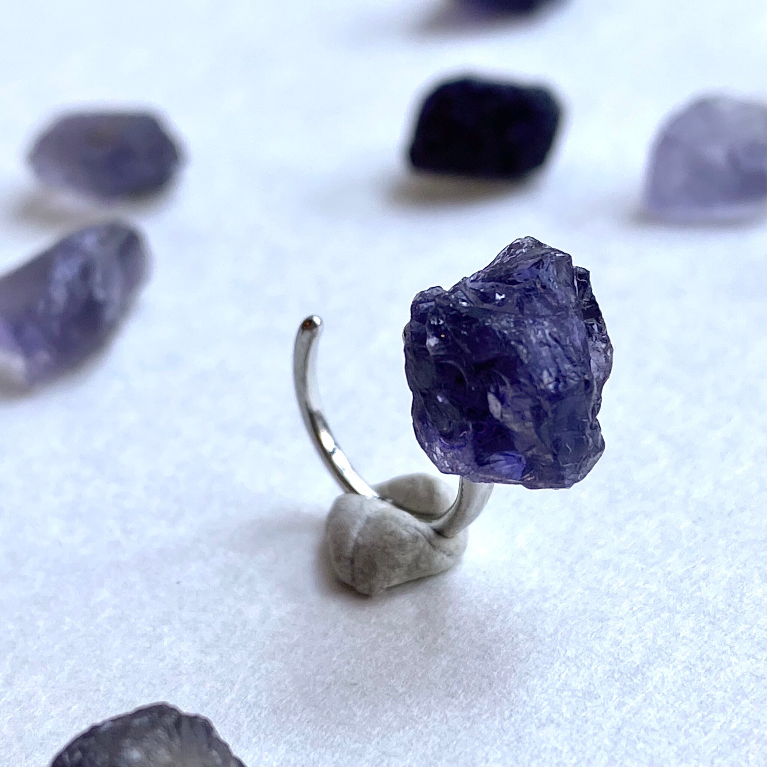 こちらのアイオライトは落ち着いた青みの強いバイオレットカラーをしております。多色性がある為、角度によって薄めのバイオレットに見えます。