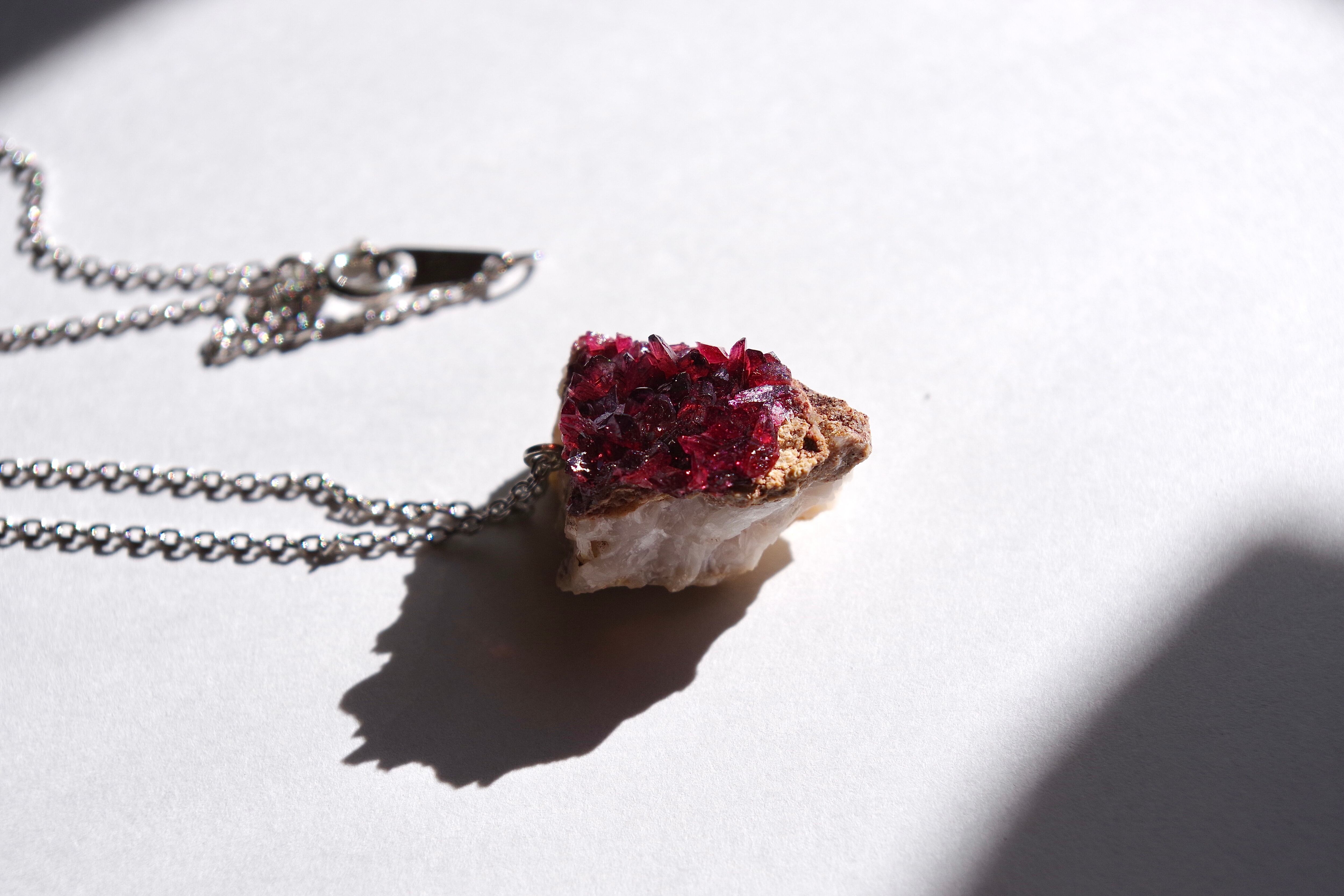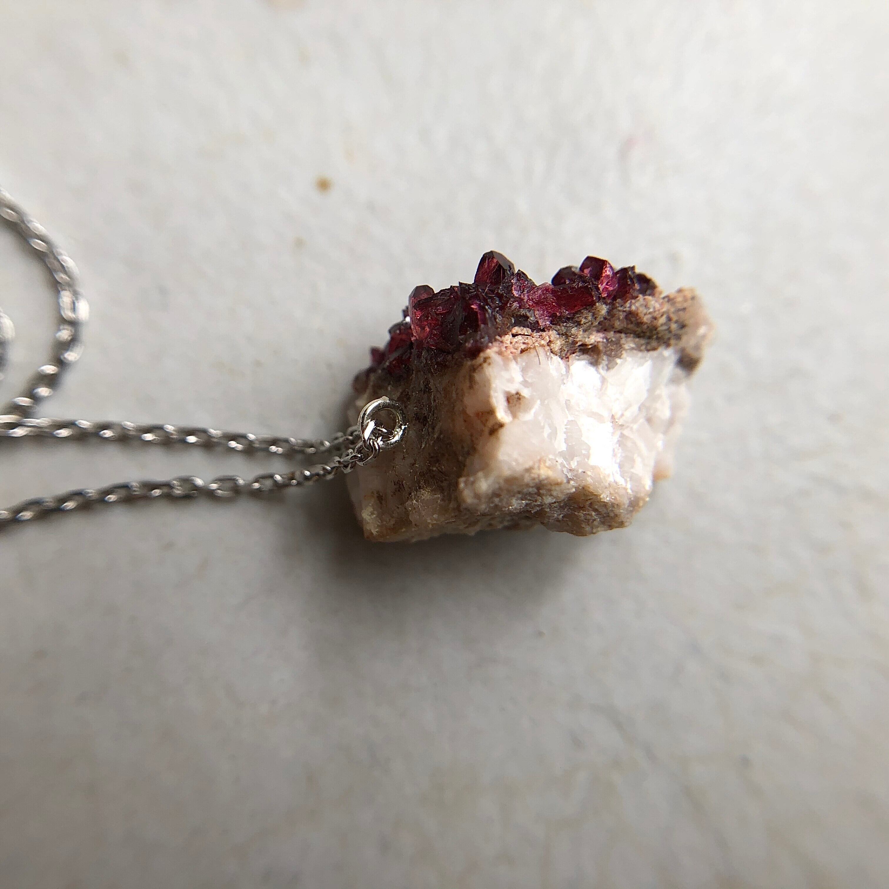 ロゼライト(ピンクガーネット)の原石を使用したシルバー925のネックレスです。