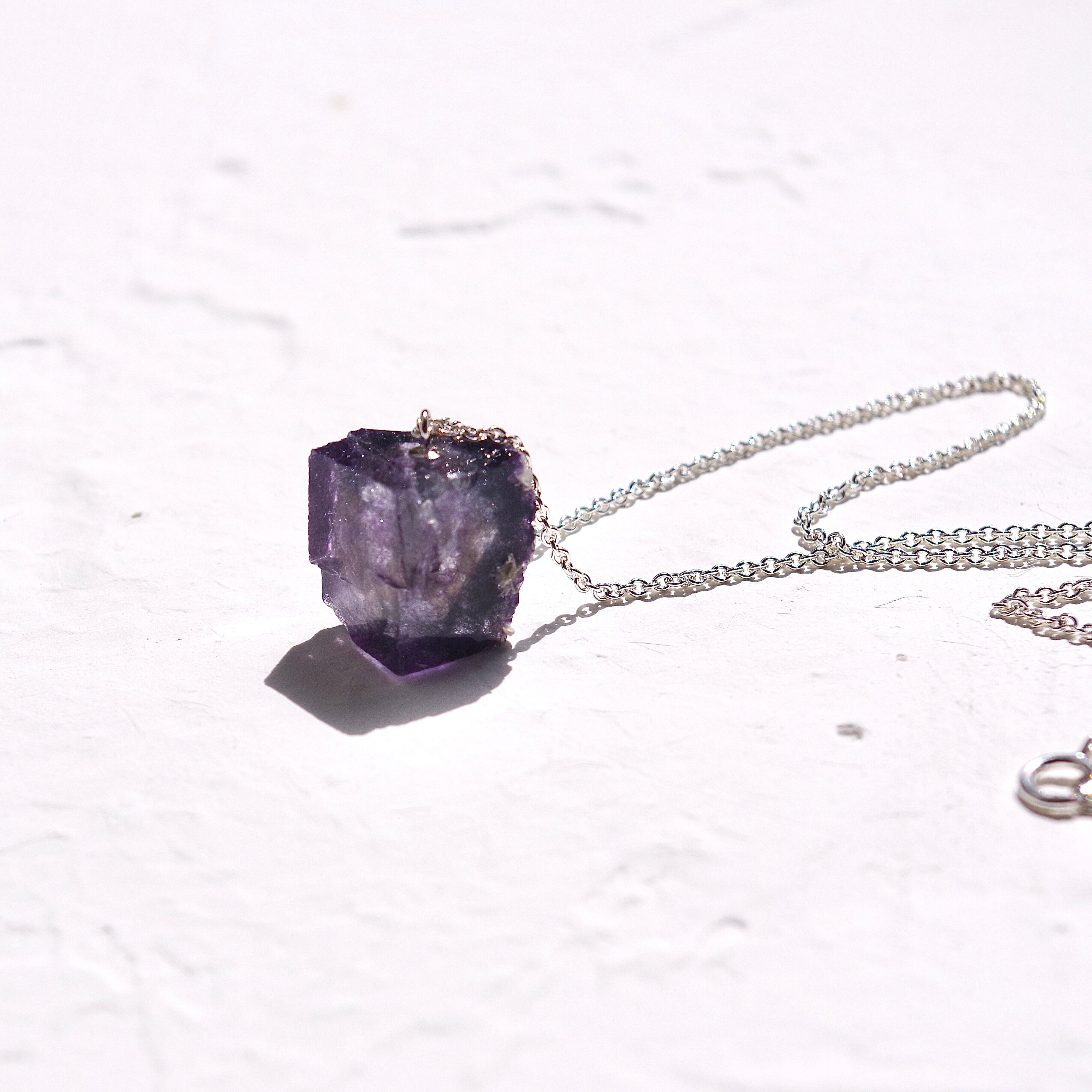 フローライト鉱物原石 SV925 ペンダント(ネックレス)【一点もの】ハンドメイド天然石アクセサリー