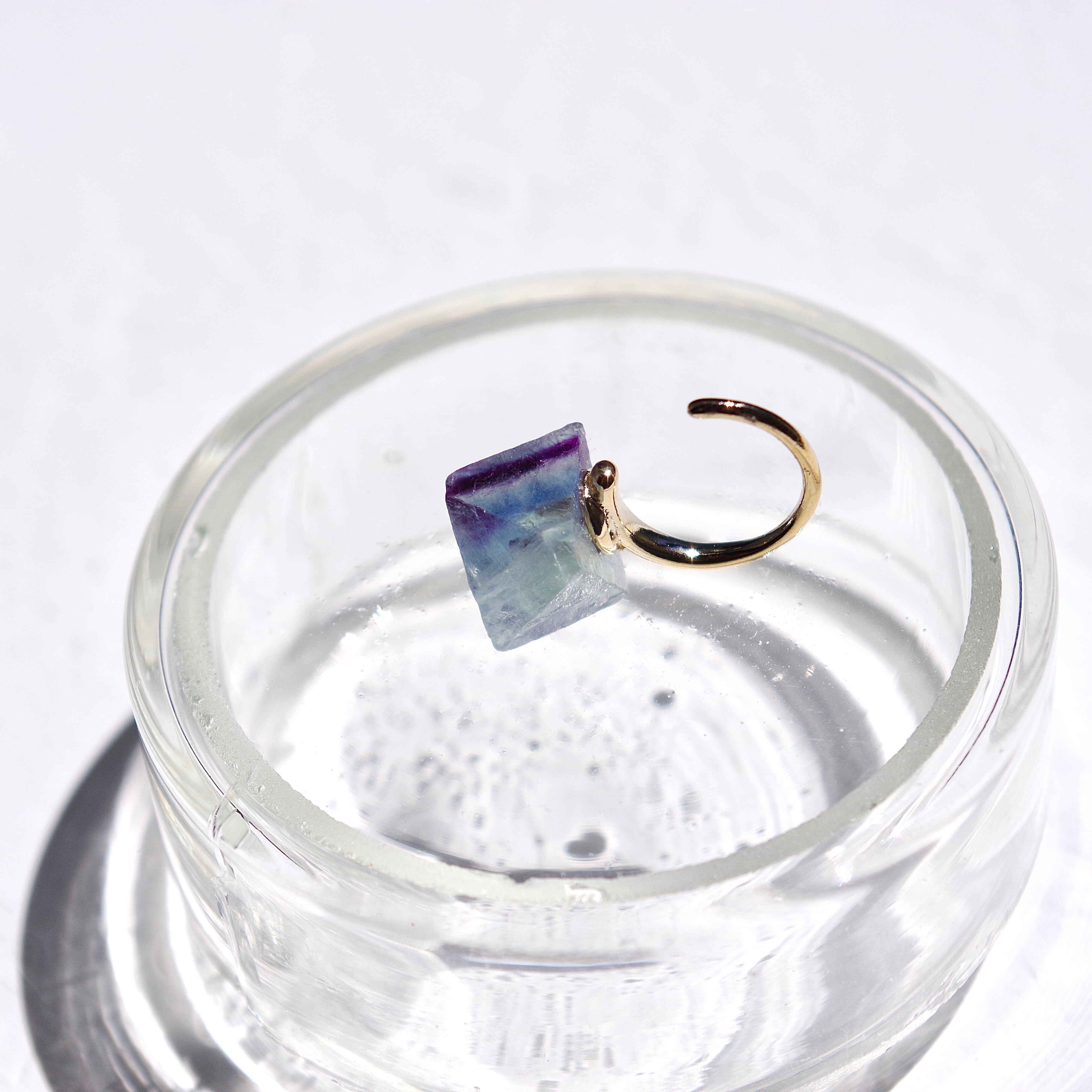 フローライトの原石を使用したイヤーカフです。グリーン・ブルーグリーン・パープルのグラデーションです。