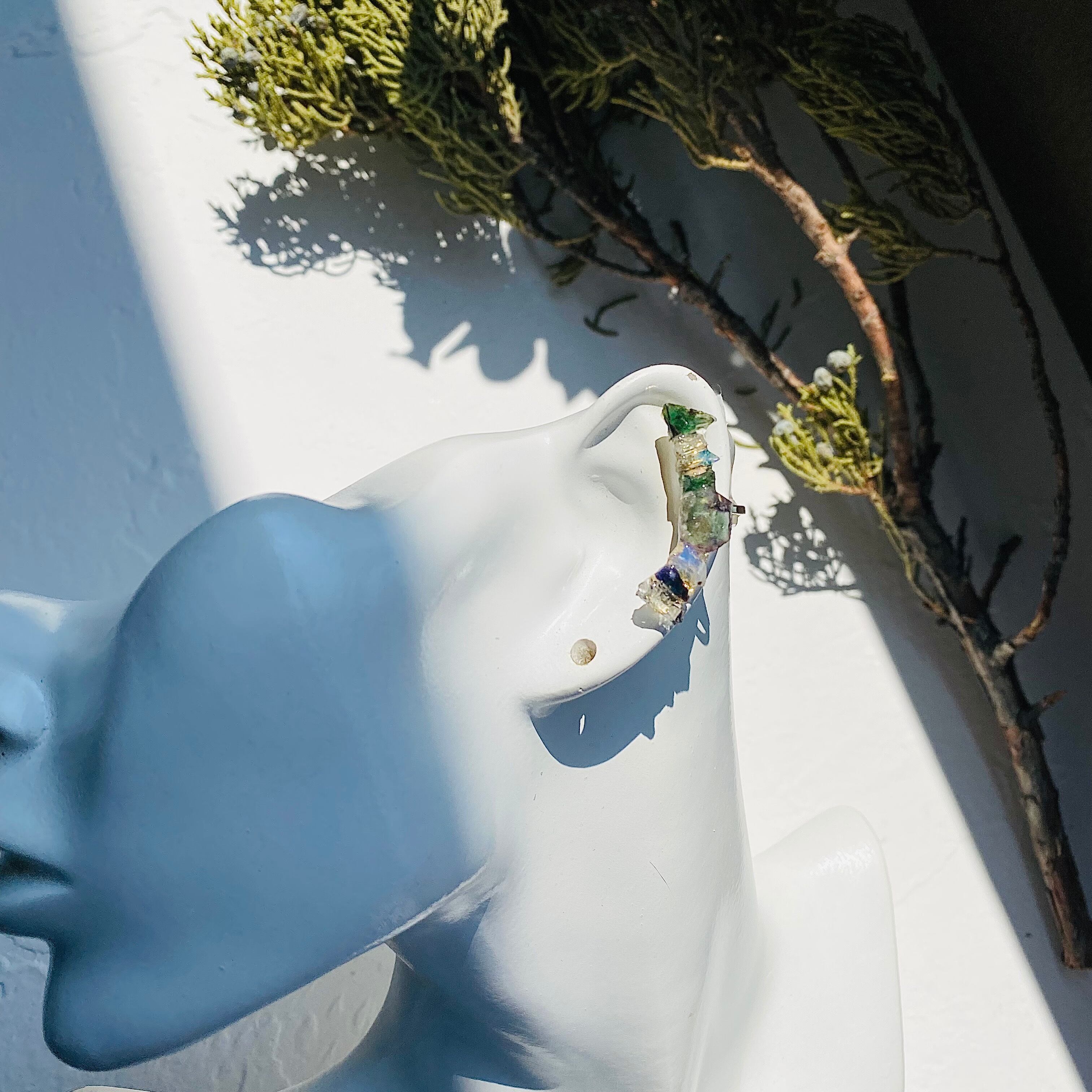 複数の原石を組み合わせた挟むタイプのイヤーカフです。