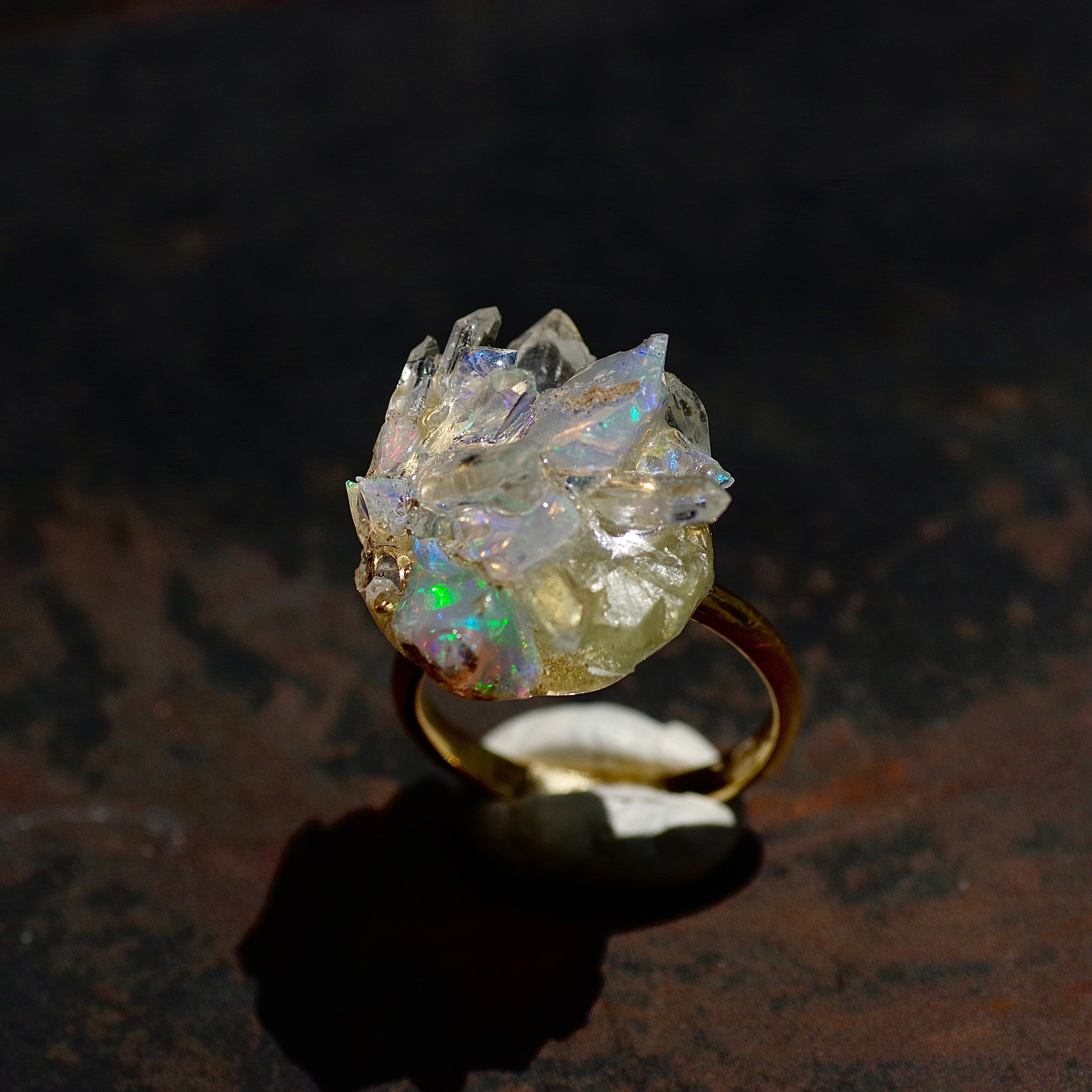 Integration Ring オパール × 水晶 鉱物原石 フリーサイズ リング 【一点もの Silent Crystal Collection】 天然石 アクセサリー