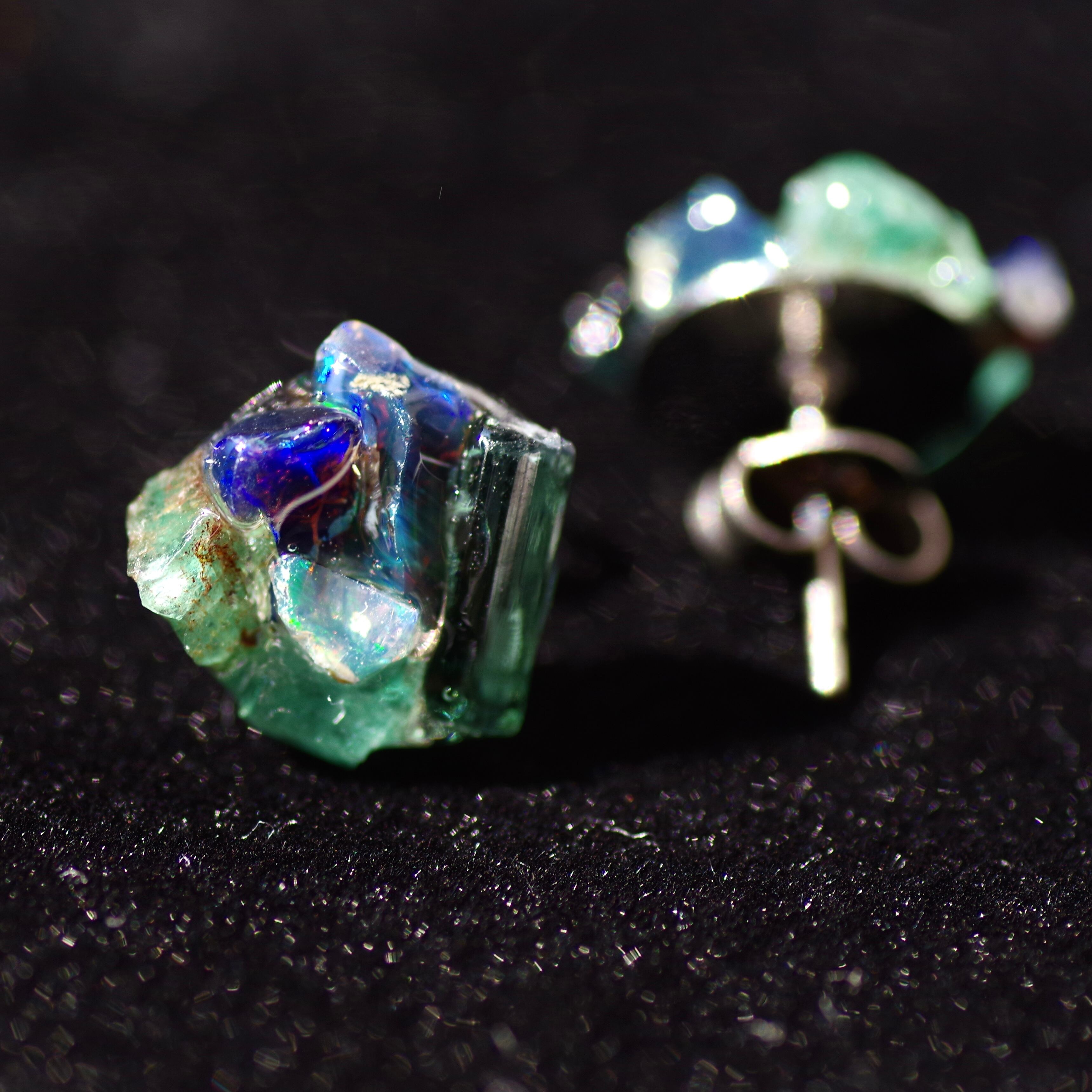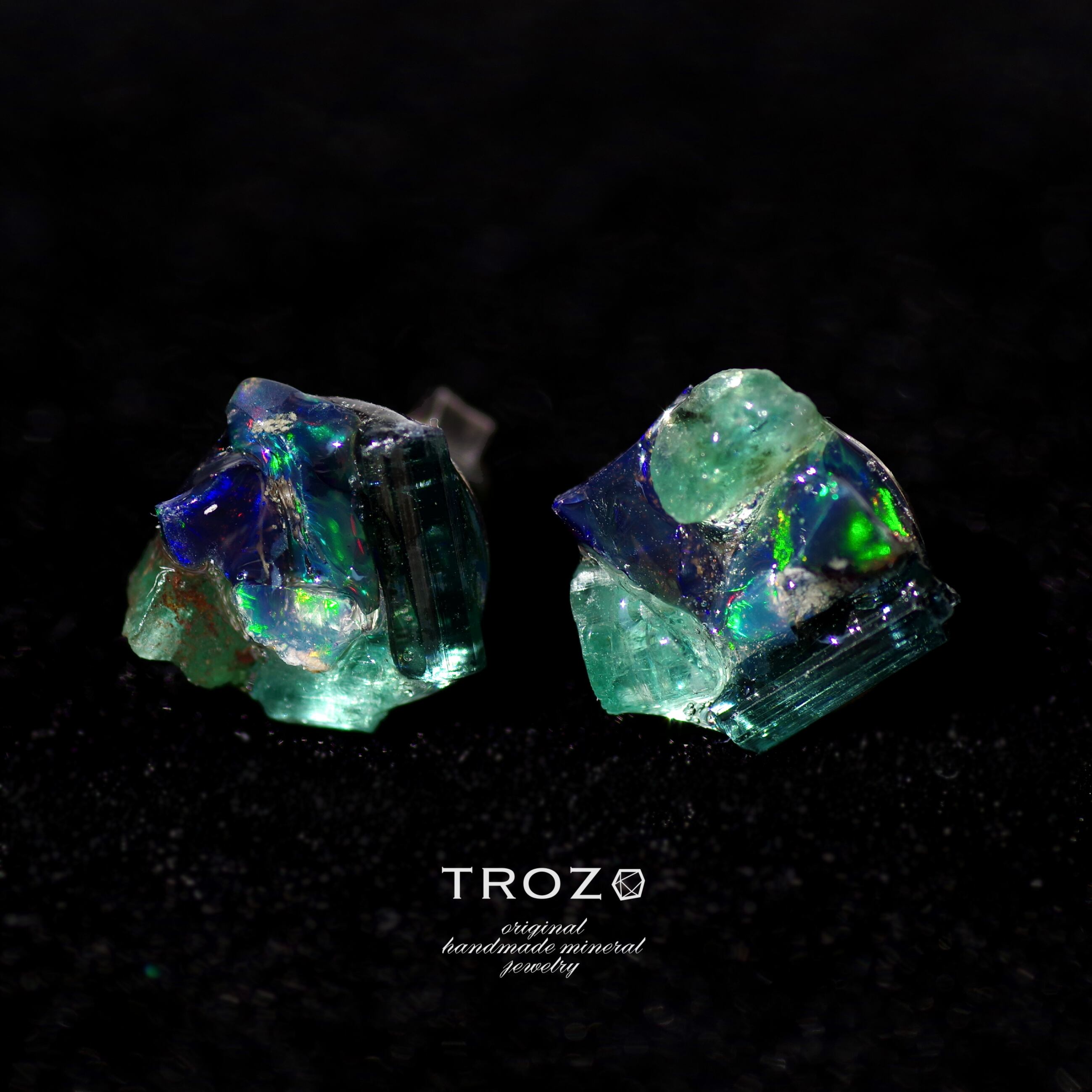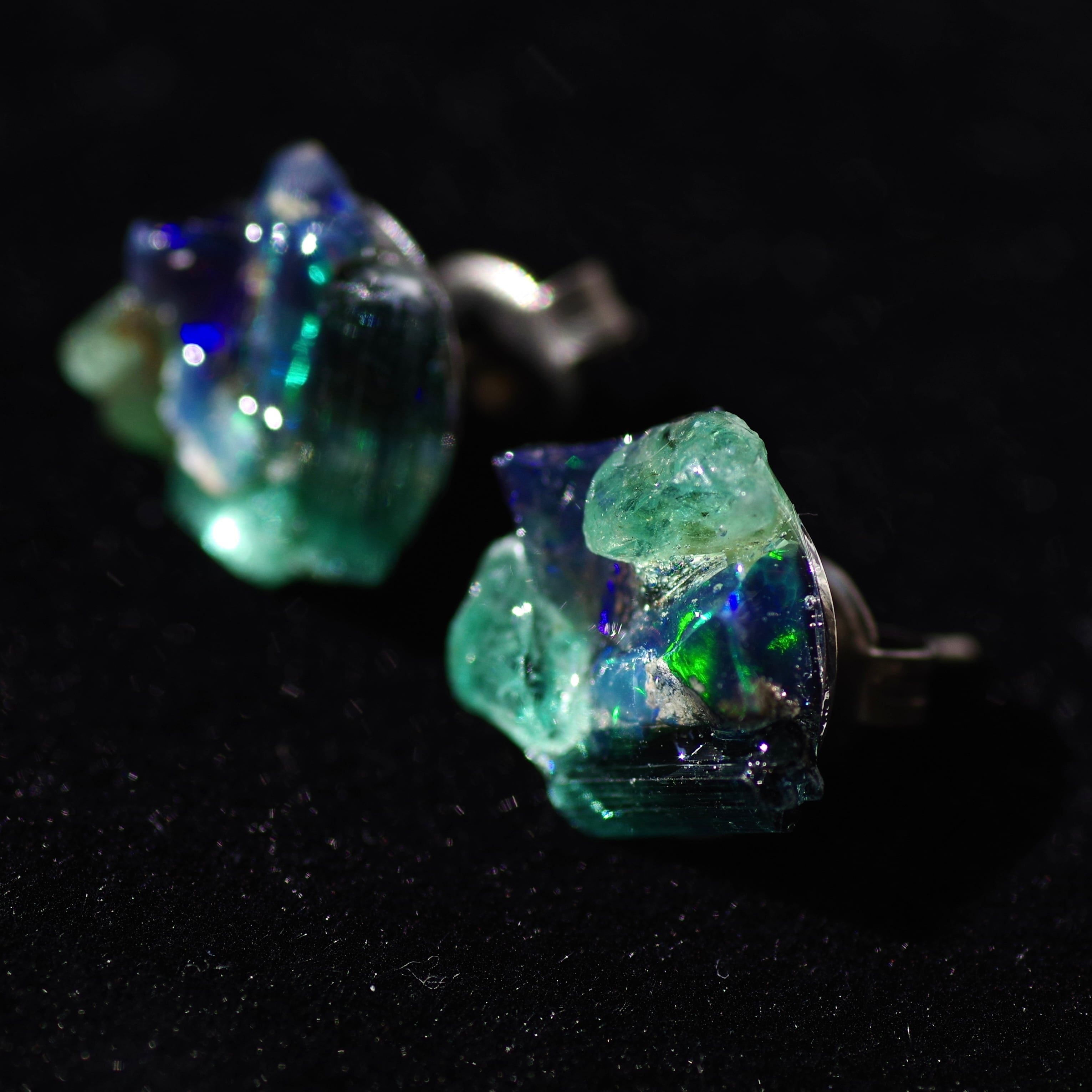 【Opal Fest No. 119】 Integration Pierce オパール × エメラルド × トルマリン 鉱物原石 ピアス [一点もの] 天然石 アクセサリー