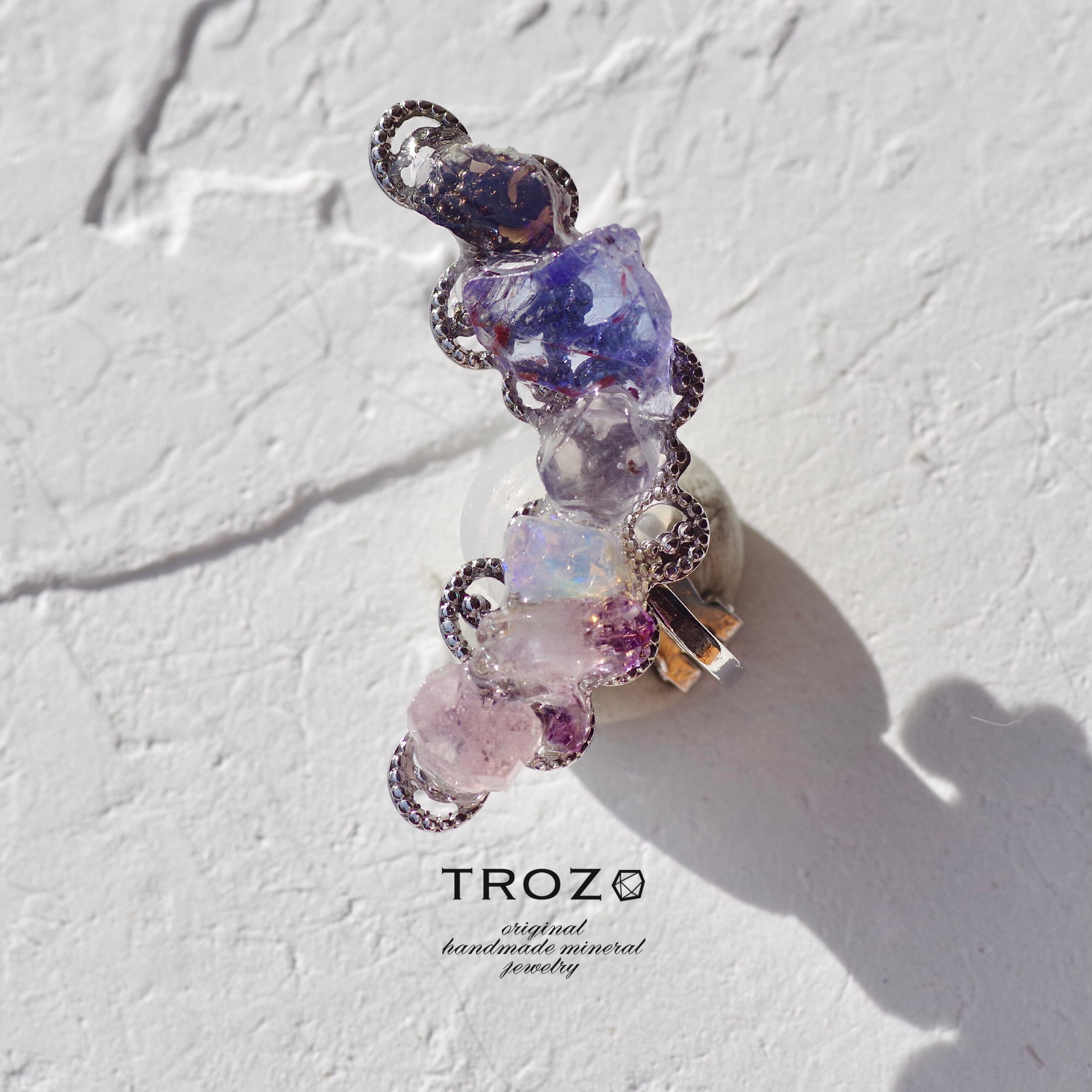 タンザナイト× フローライト× オパール × アメジスト ×トルマリンの原石を使用した挟むタイプのイヤーカフです。