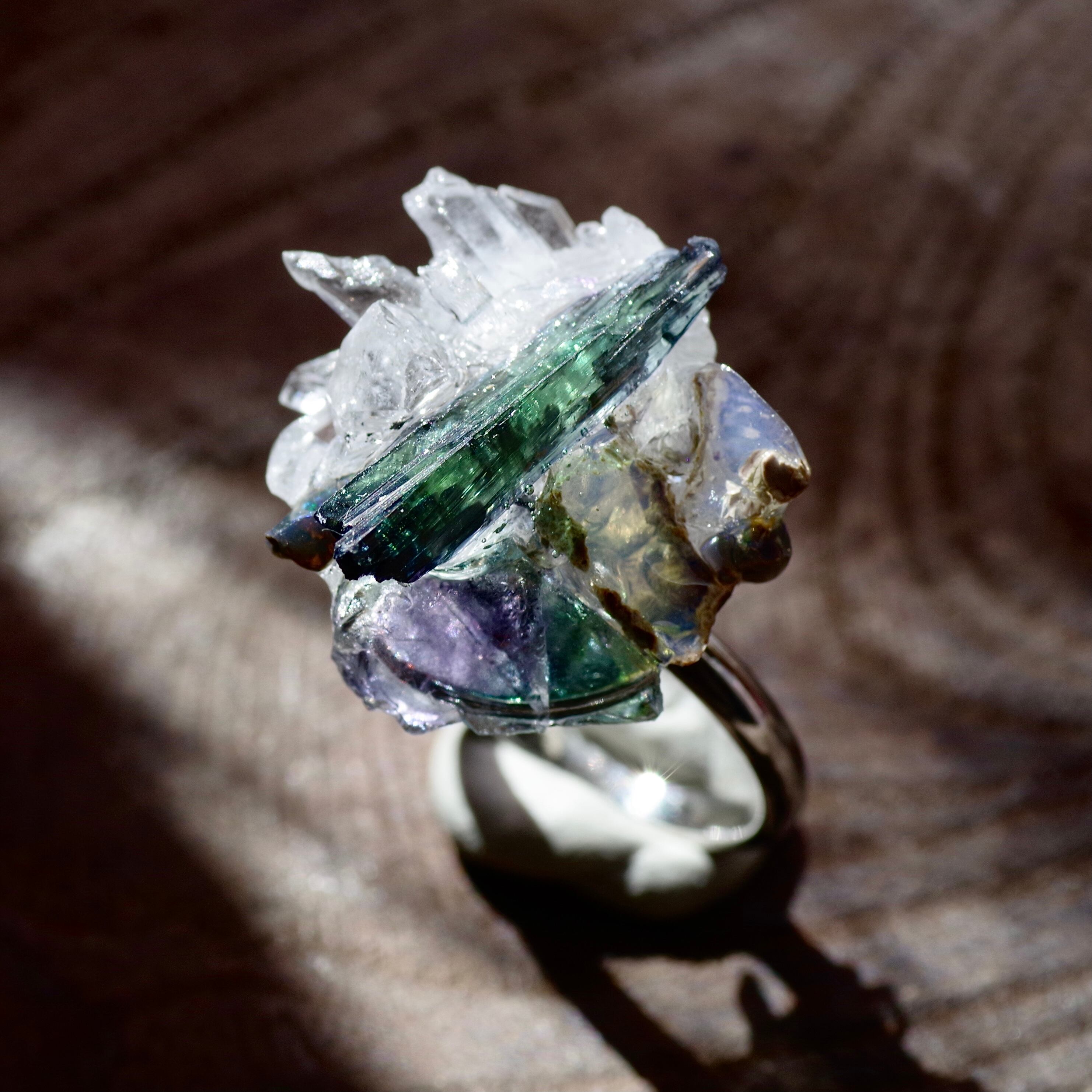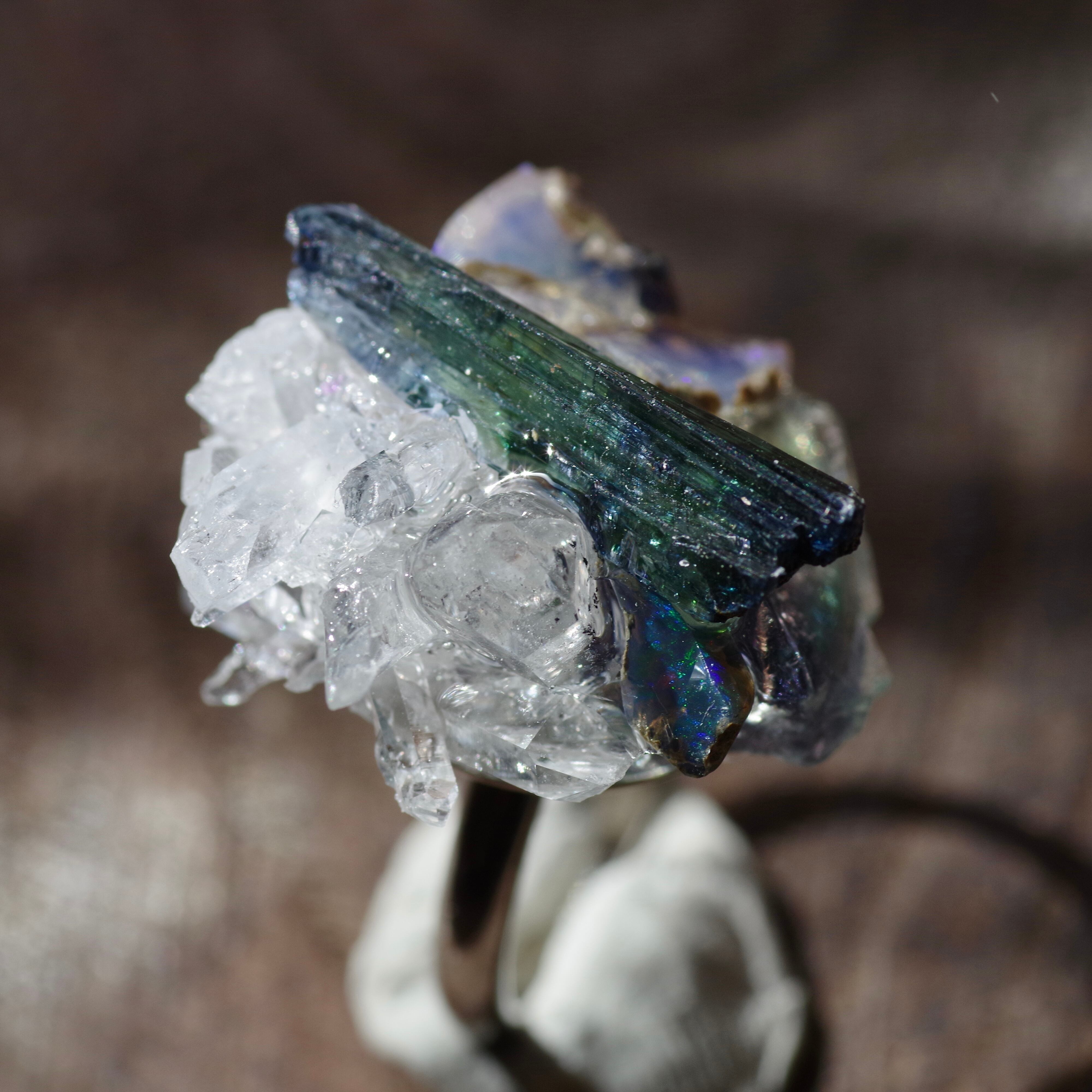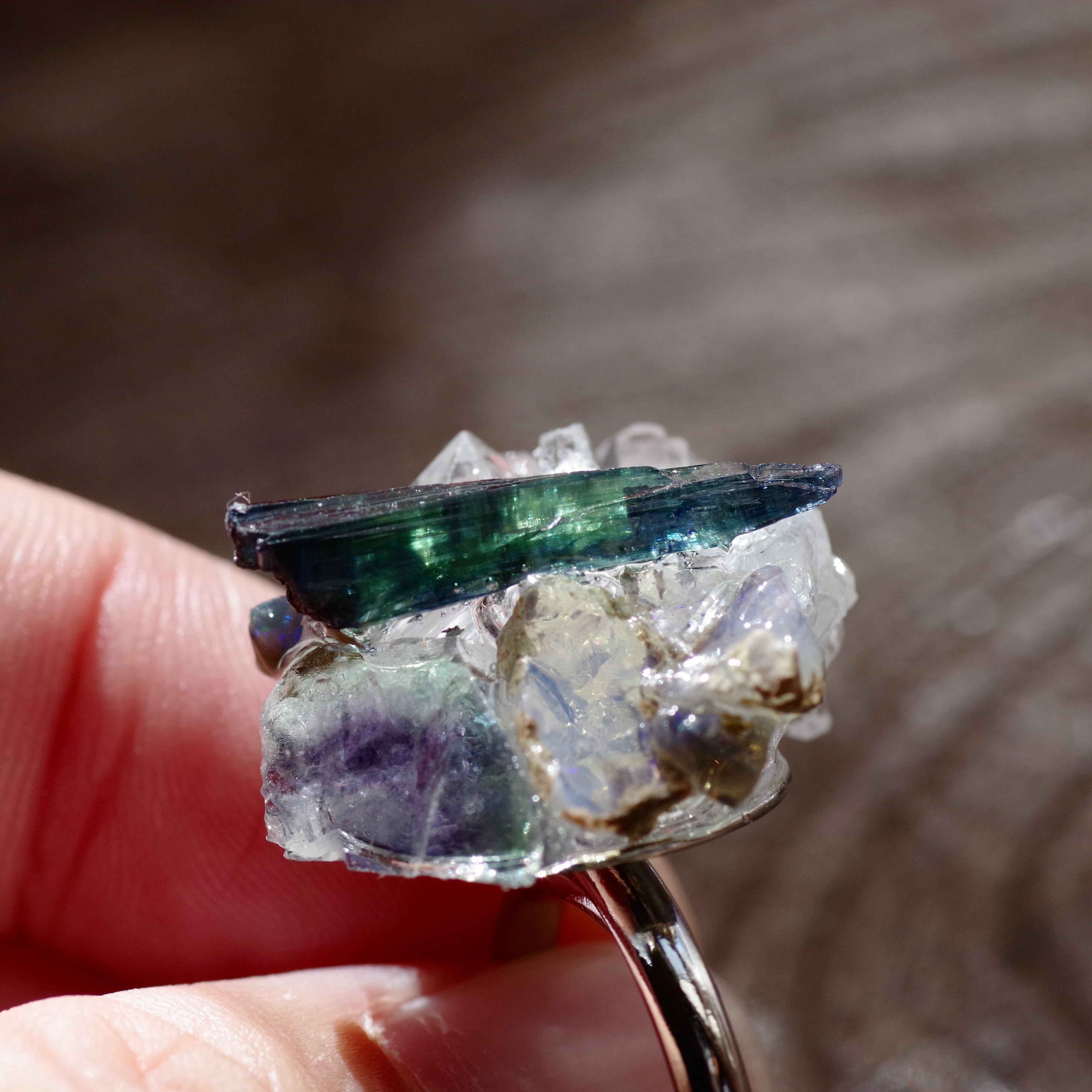 【001 Ghost House Collection】 Integration Ring ヴィヴィアナイト × オパール × フローライト × クォーツ 鉱物原石 フリーサイズ リング 天然石 アクセサリー
