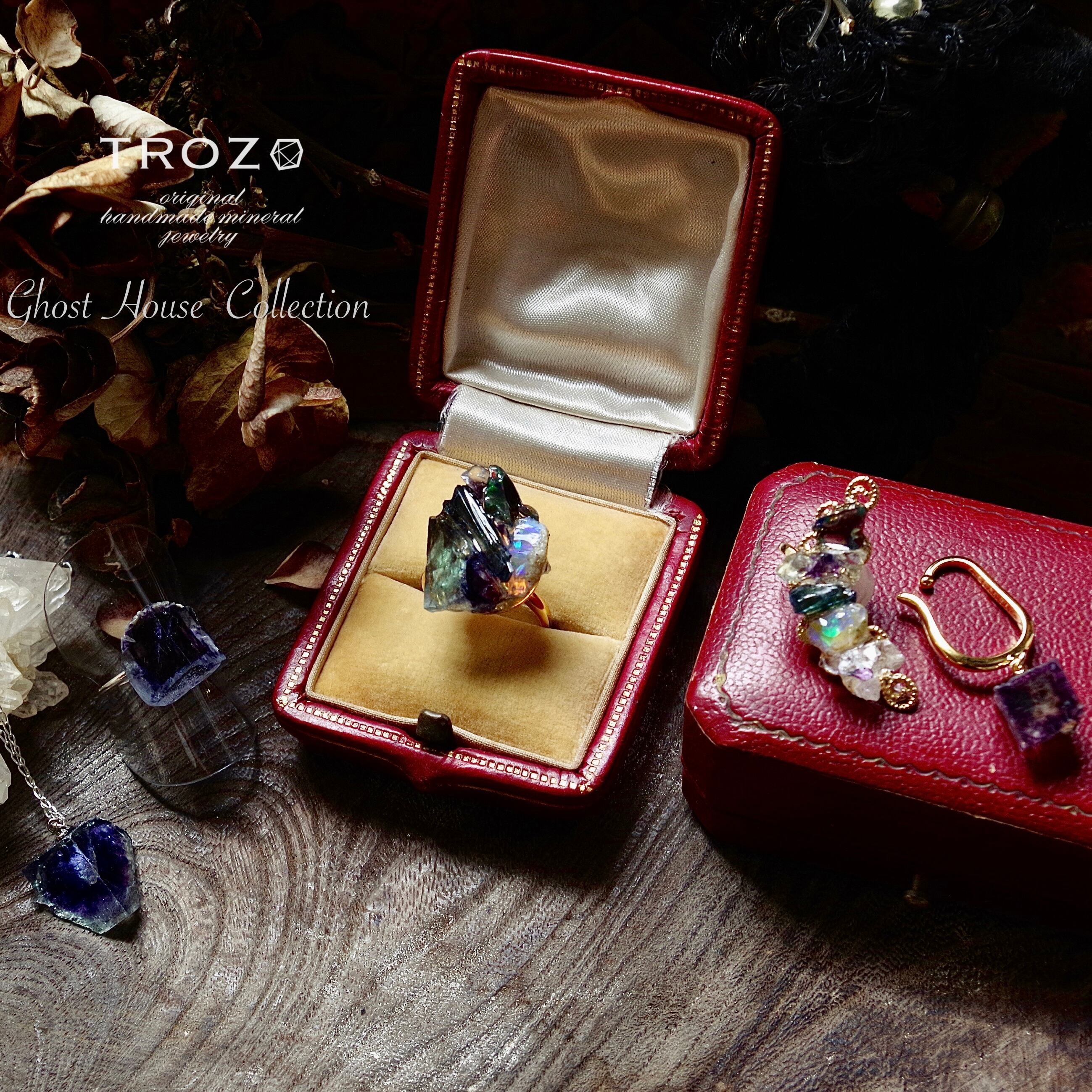 【019 Ghost House Collection】 フローライト × クォーツ 鉱物原石 イヤーカフ 天然石 アクセサリー