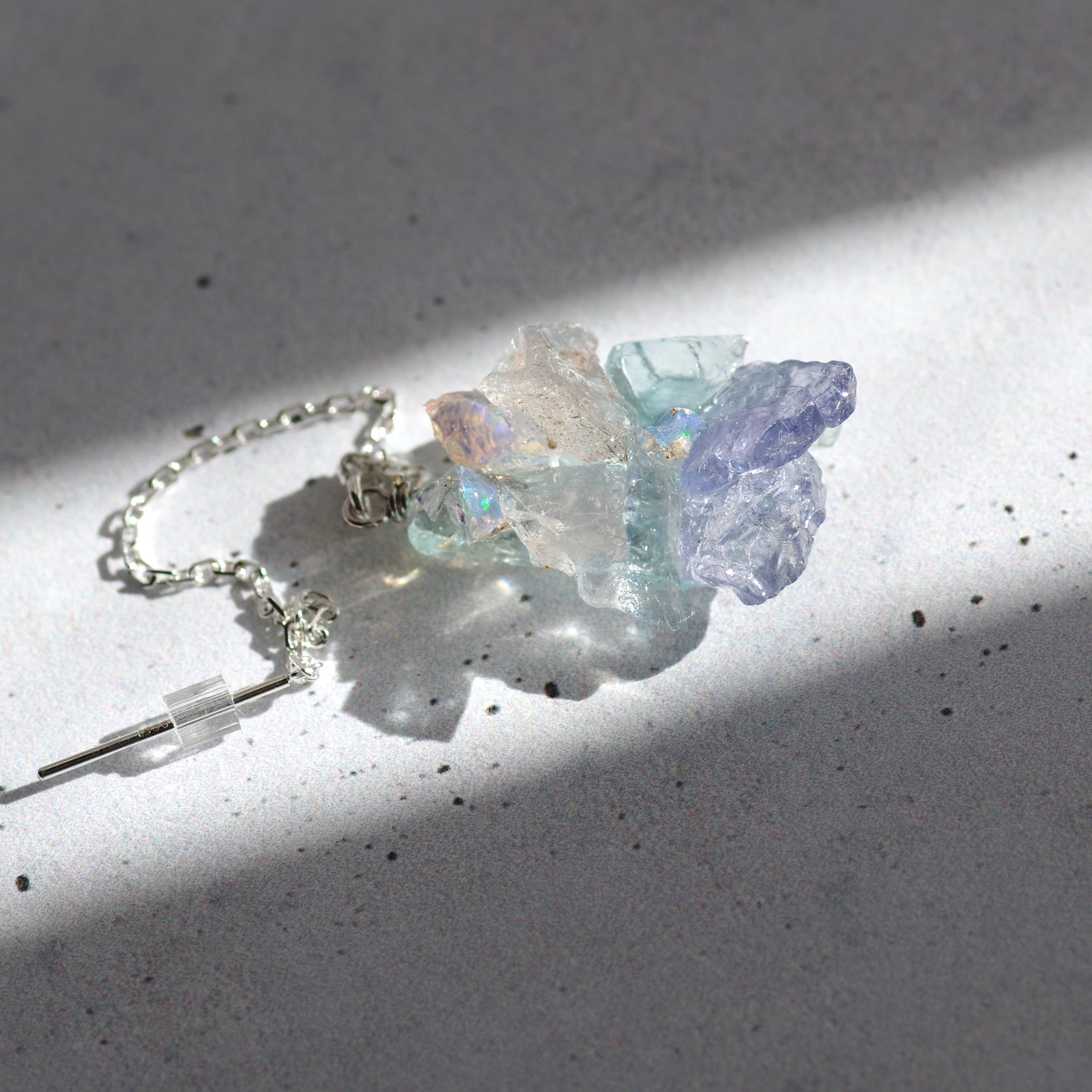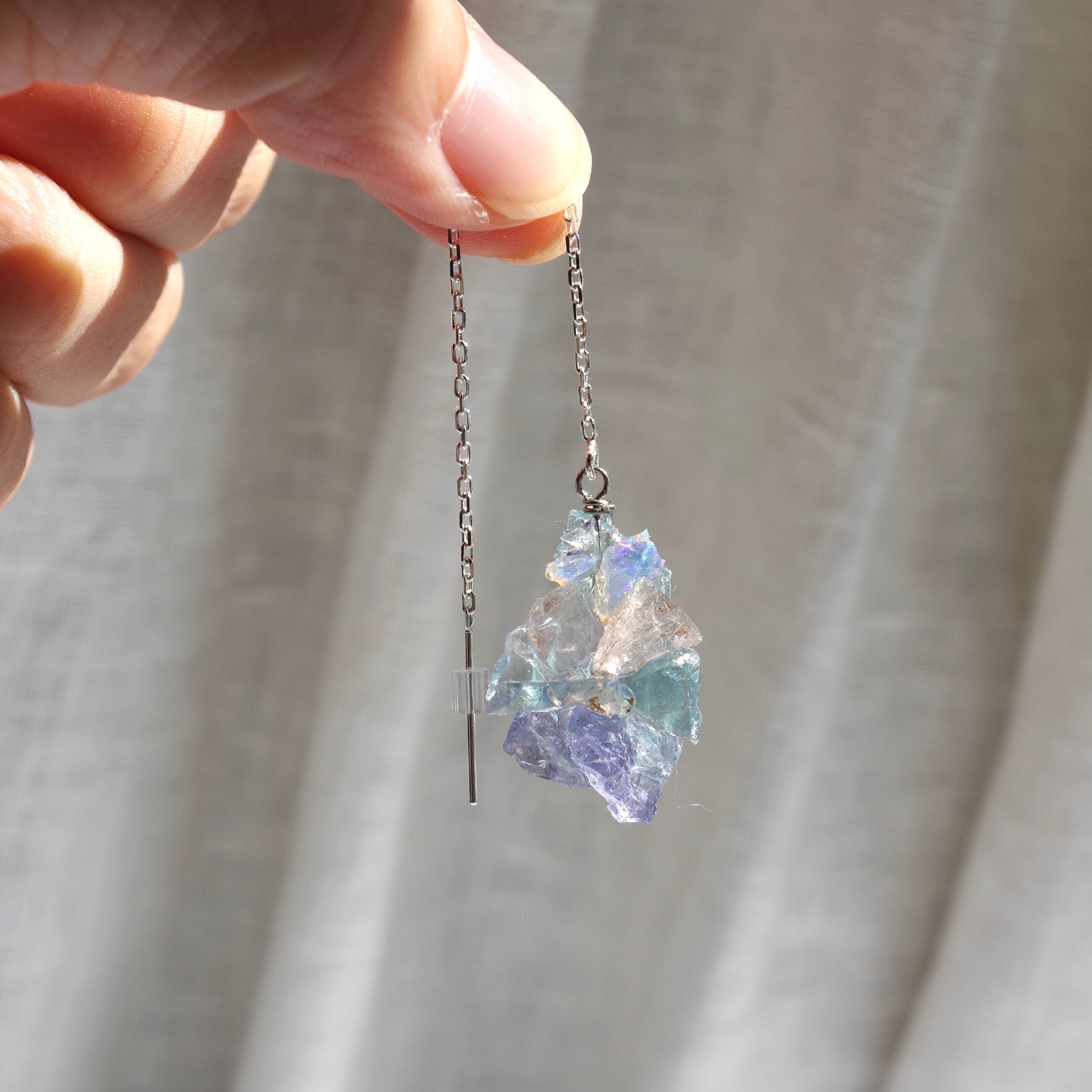アクアマリン × タンザナイト × フローライト × オパール の原石を使用したシルバー925のチェーンピアスです。