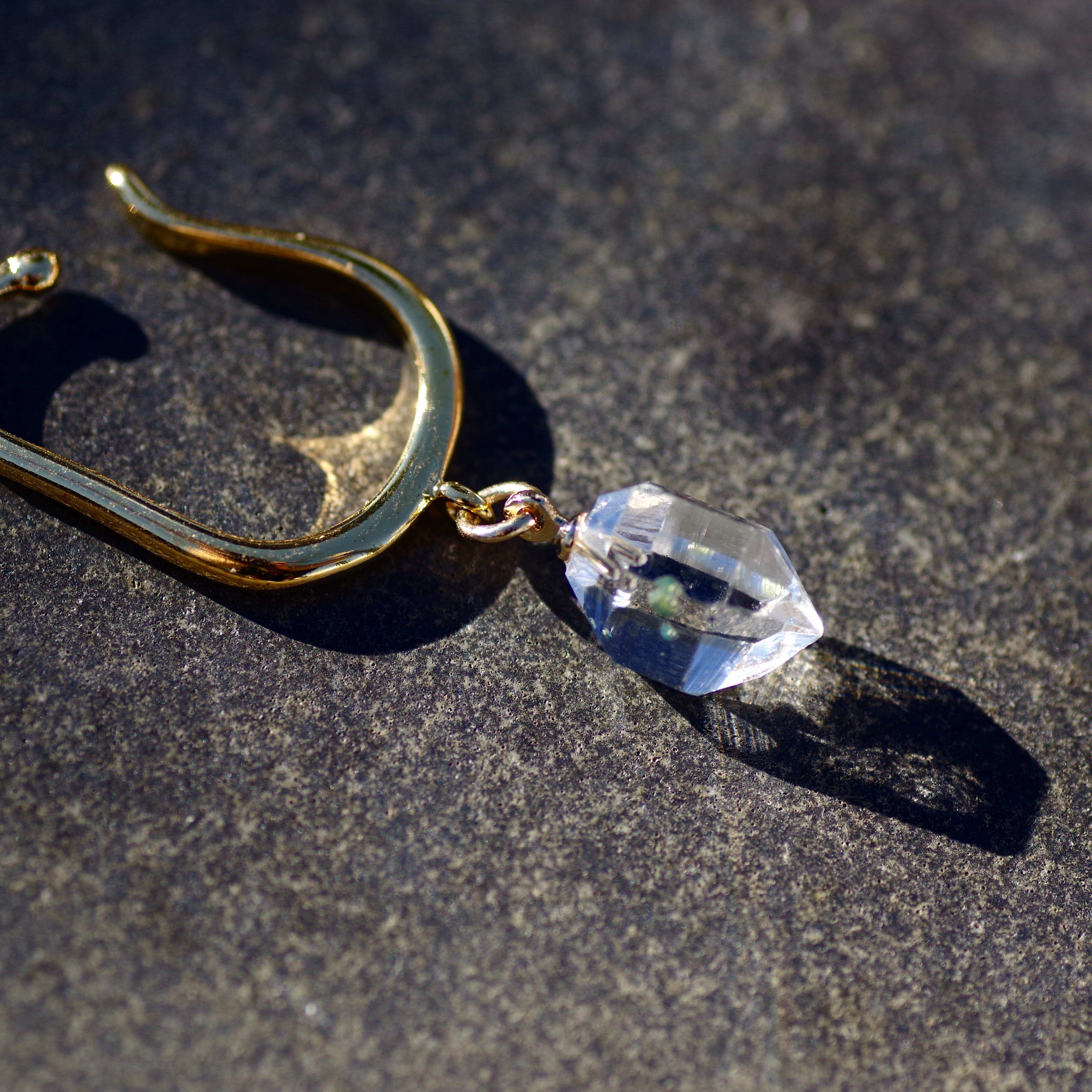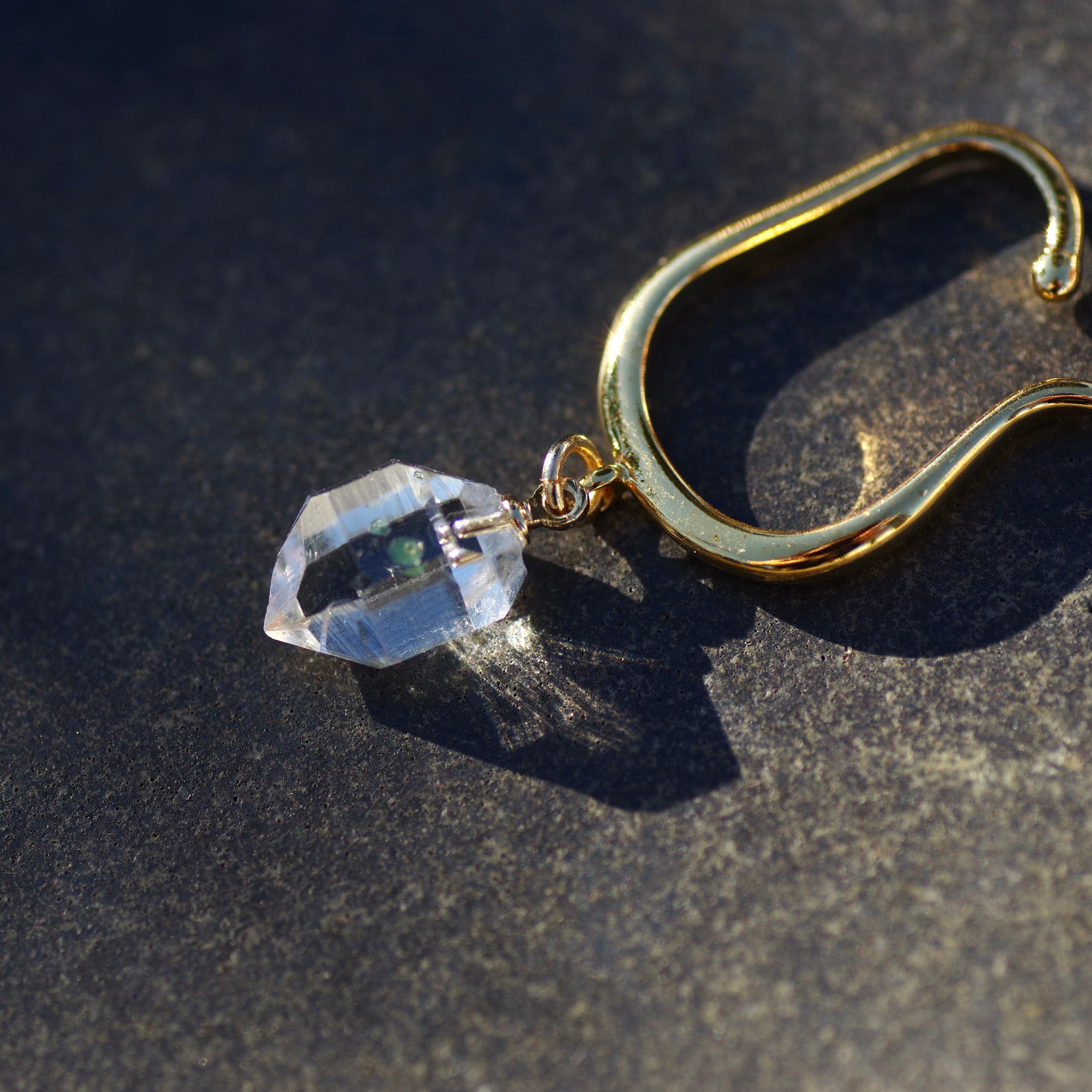 オイルインクォーツの原石を使用した揺れるタイプのイヤーカフです。