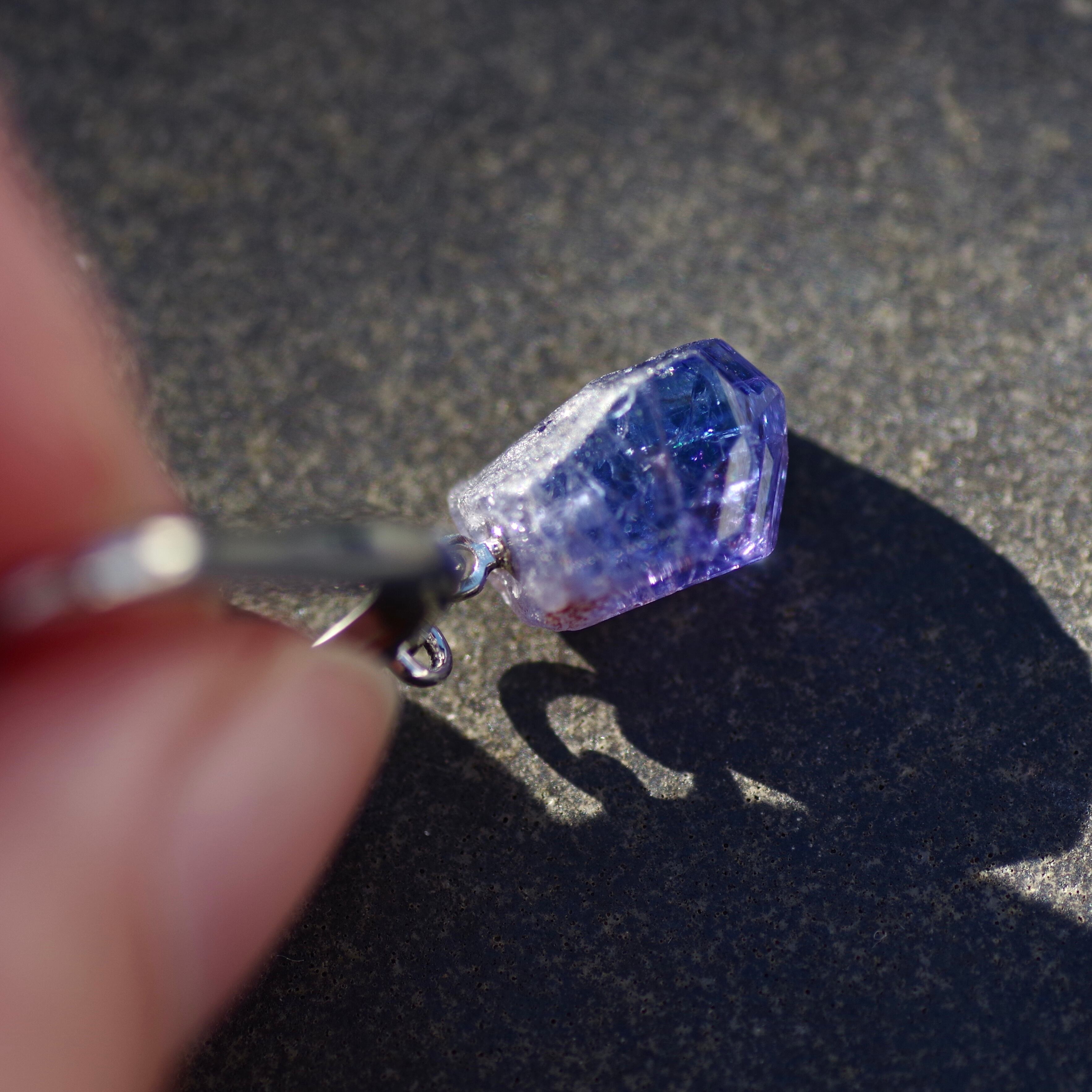 多色性があり見る角度により青みが強く見えたり紫が強く見えたりします。