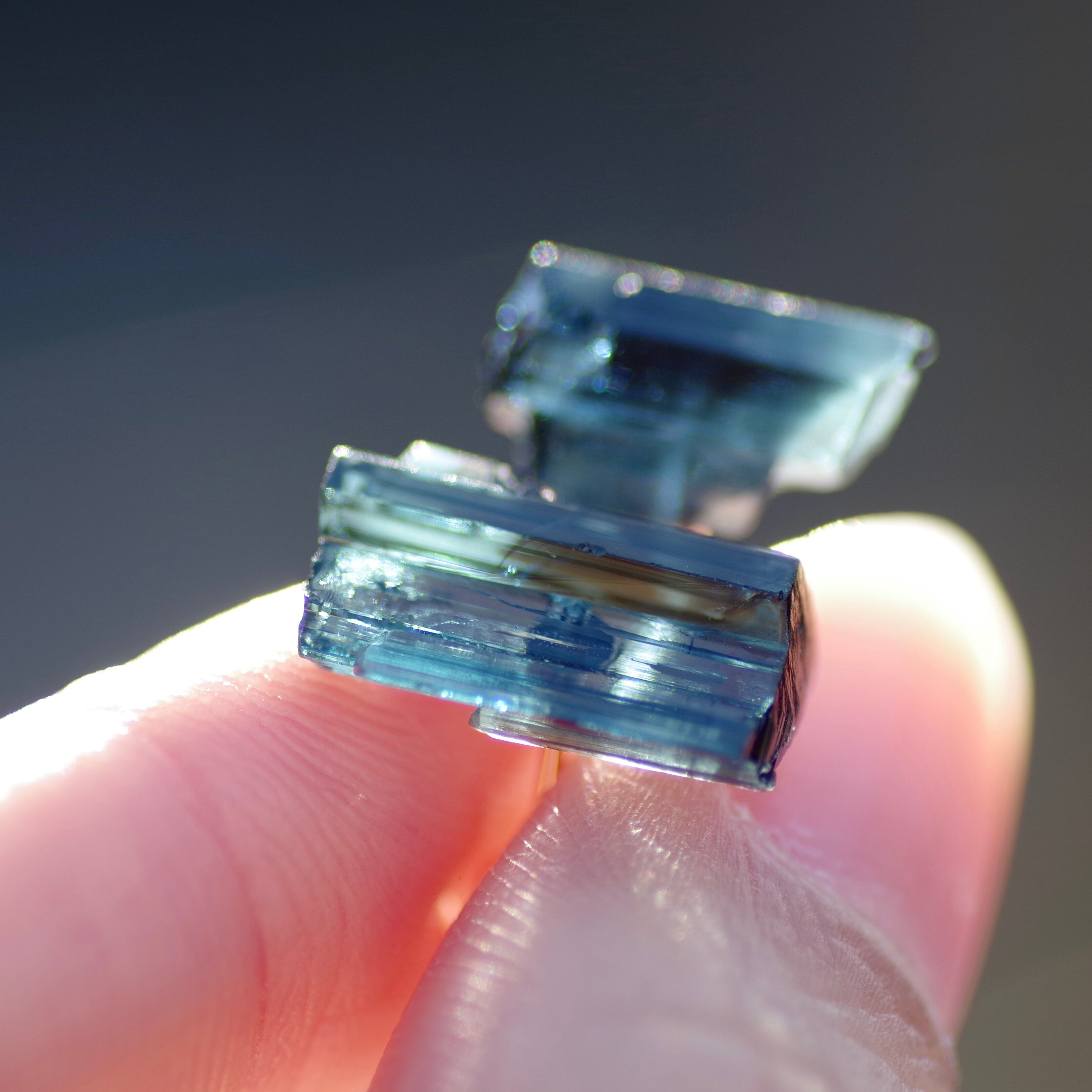 美しいインディゴライトトルマリンで、片方は透明度が高くブルーグリーンが非常に美しいです。