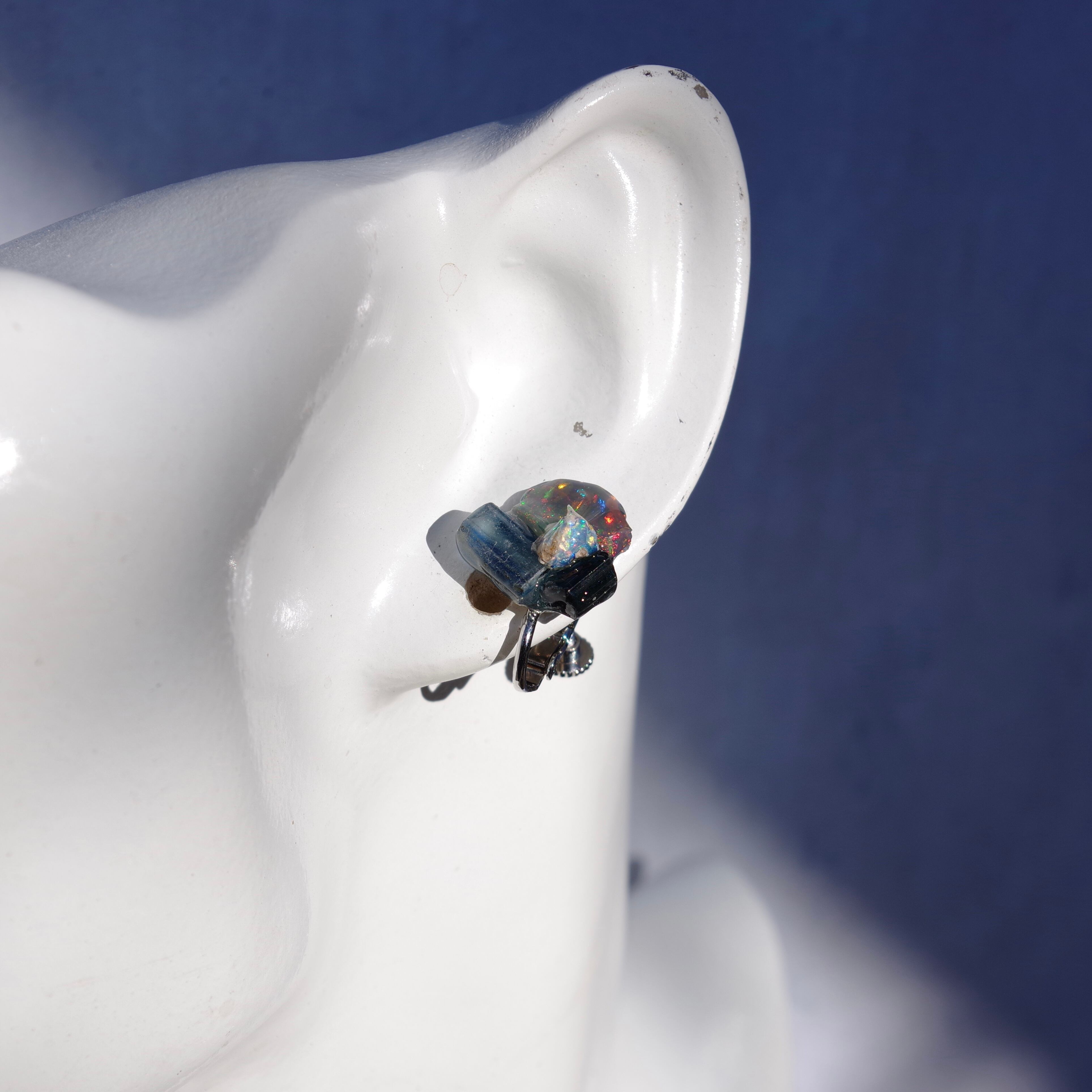【034 Midnight Collection】 Integration Earring オパール × カイヤナイト × トルマリン 鉱物原石 イヤリング 天然石 アクセサリー