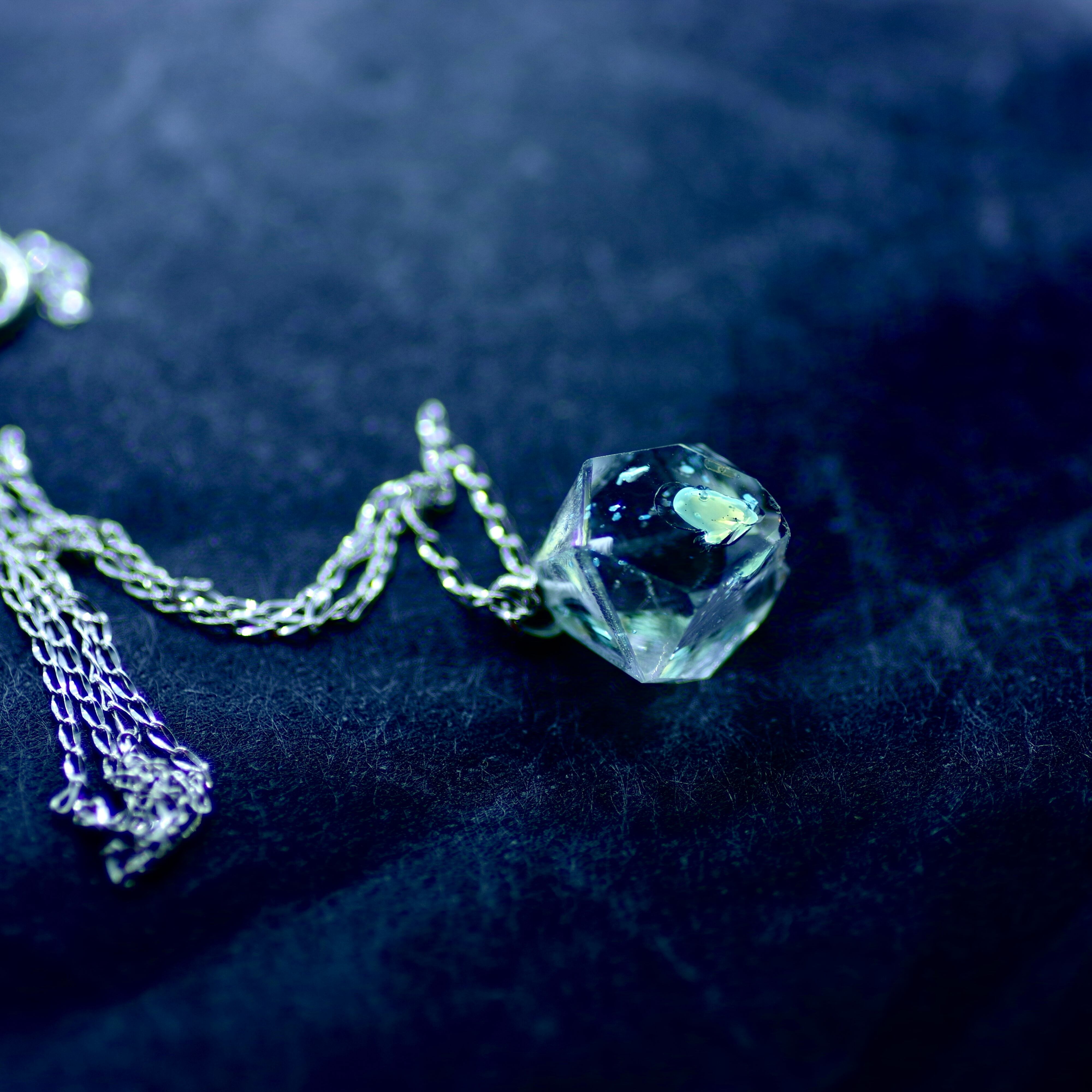 透明度が非常に高いクォーツの中に、とても美しい蛍光オイルが内包されています。