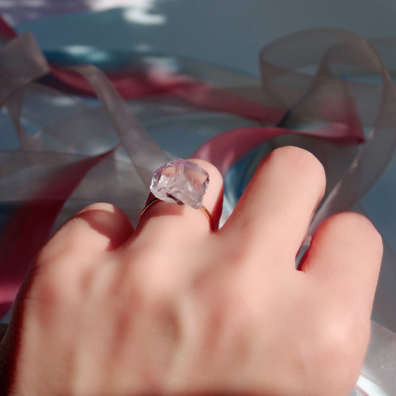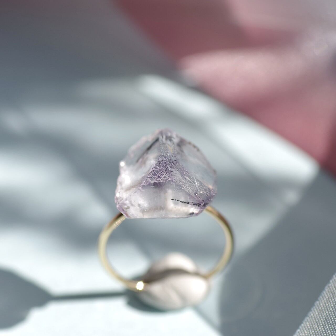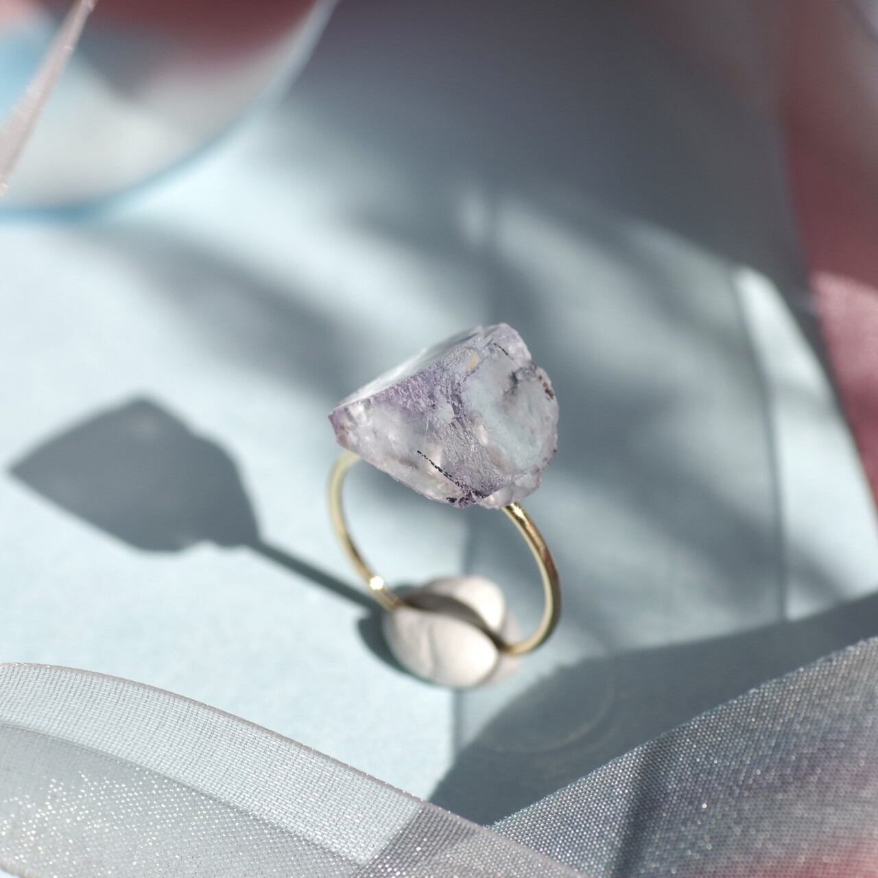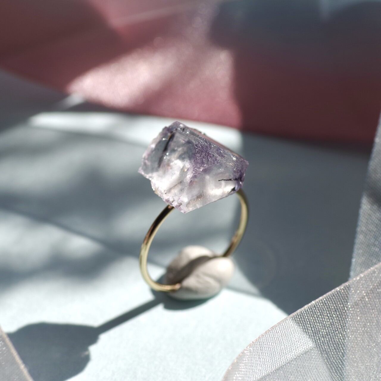 フローライトの原石を使用した14kgf もしくは シルバー925(オプションで選択)のリングです。