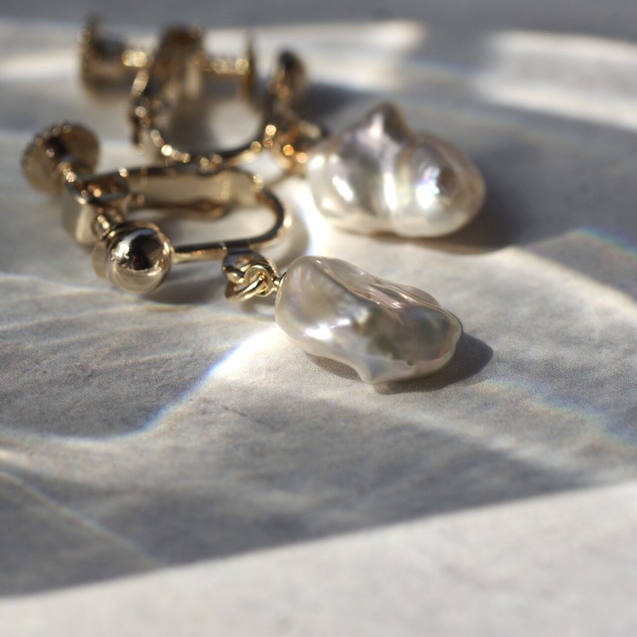 パールの原石を使用した揺れるタイプのイヤーカフです。